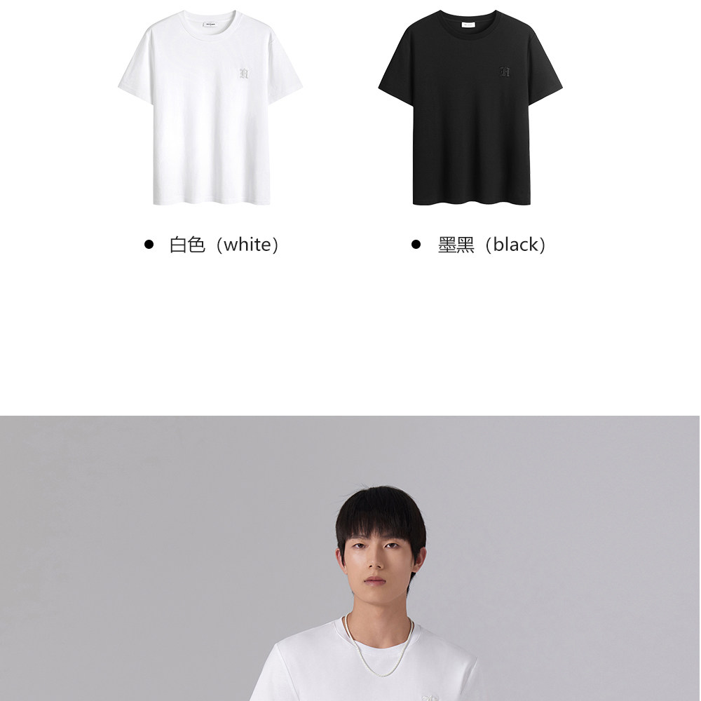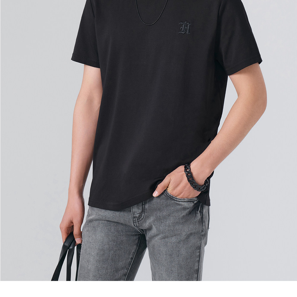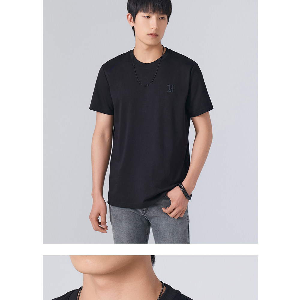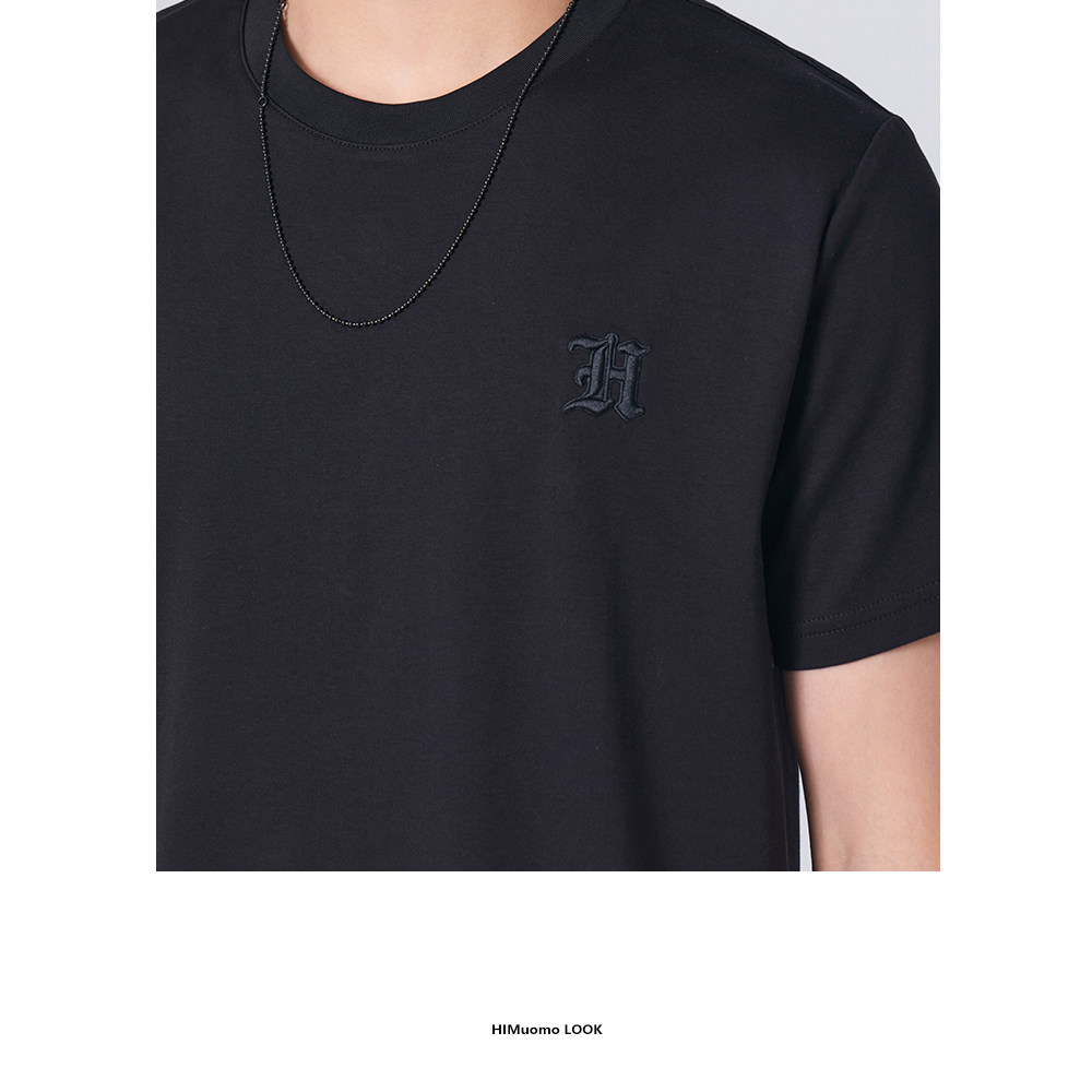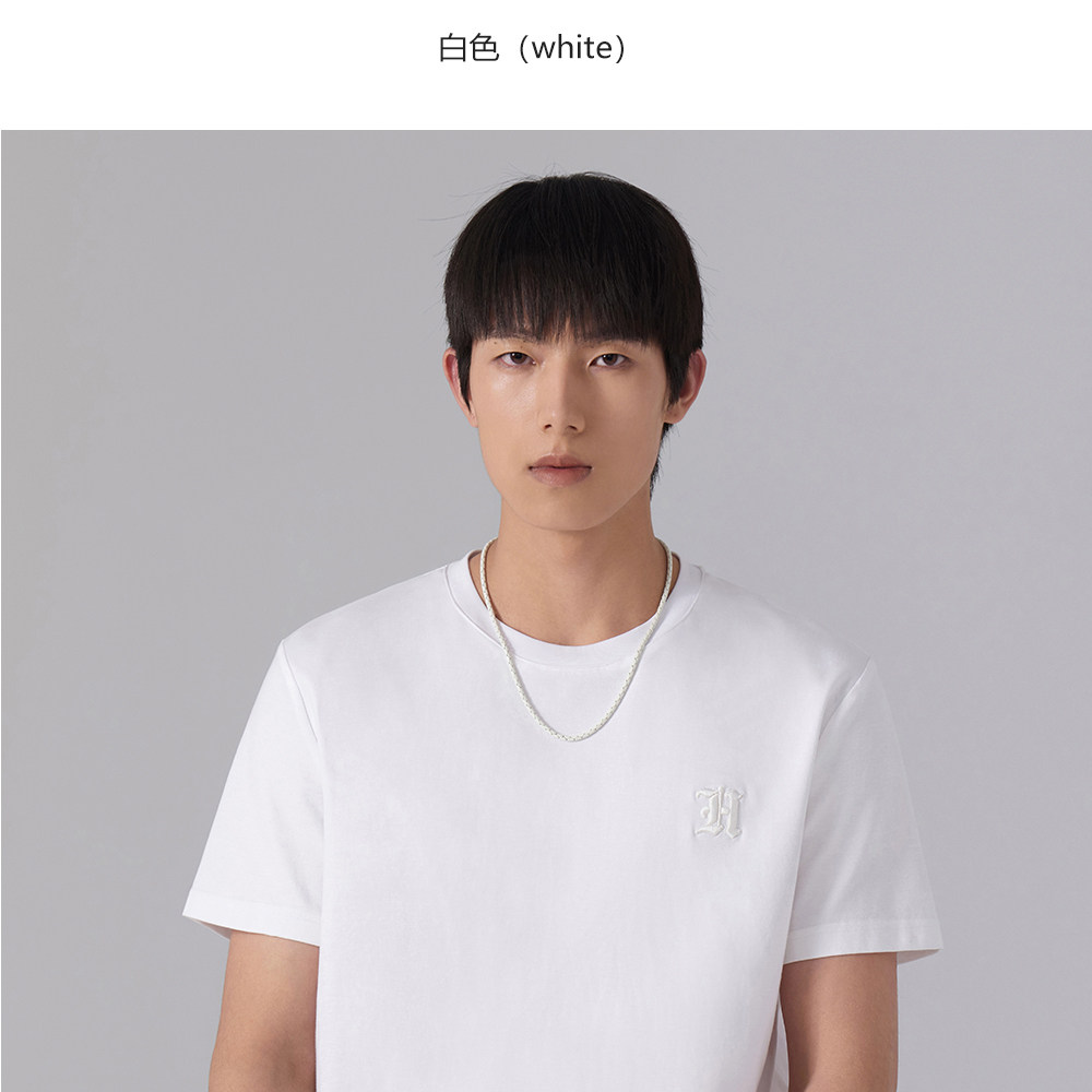 HIM漢崇 舒适休闲短袖T恤男潮流刺绣logo套头圆领打底衫 2026夏季