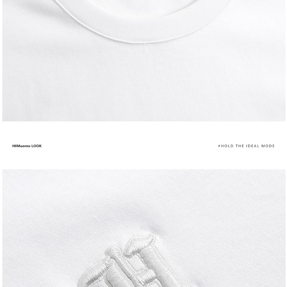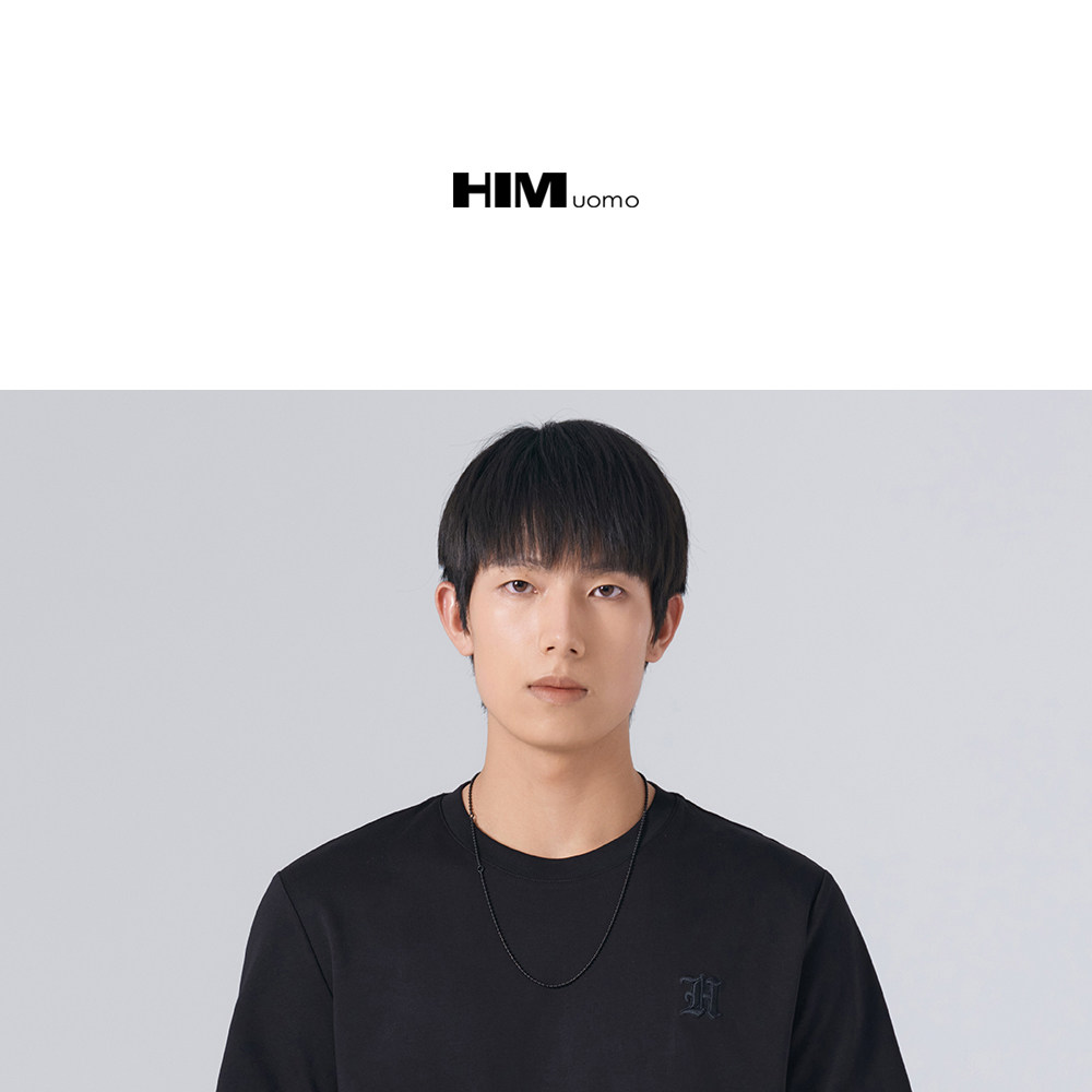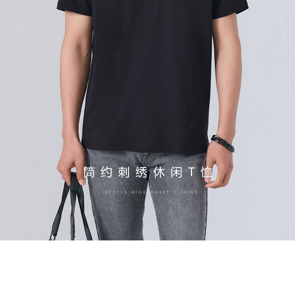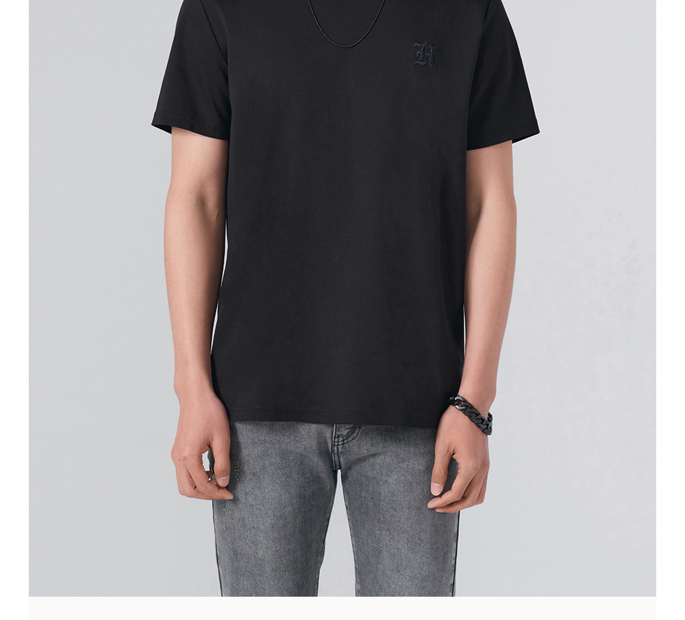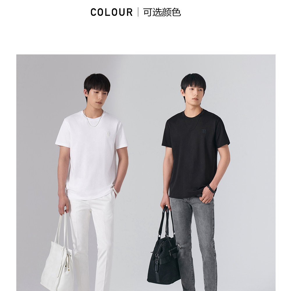 HIM漢崇 舒适休闲短袖T恤男潮流刺绣logo套头圆领打底衫 2026夏季