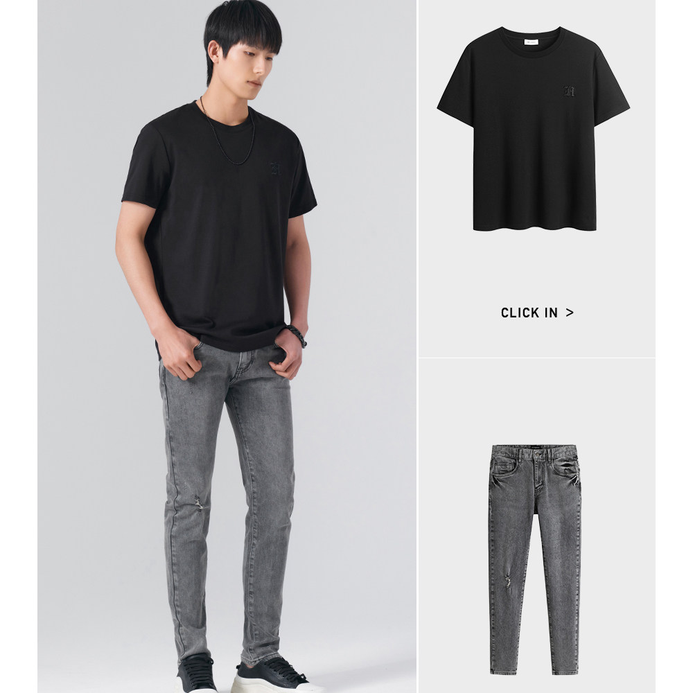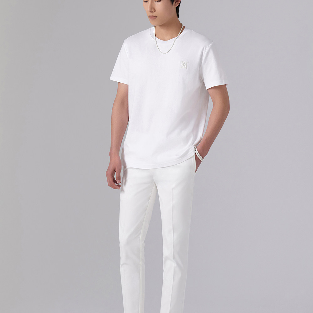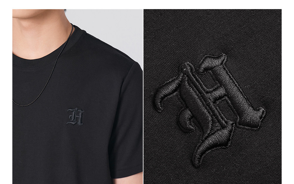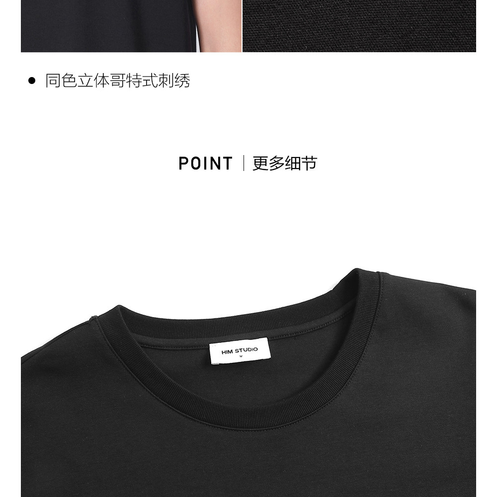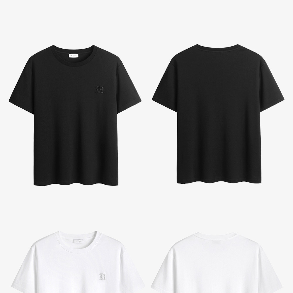 HIM漢崇 舒适休闲短袖T恤男潮流刺绣logo套头圆领打底衫 2026夏季