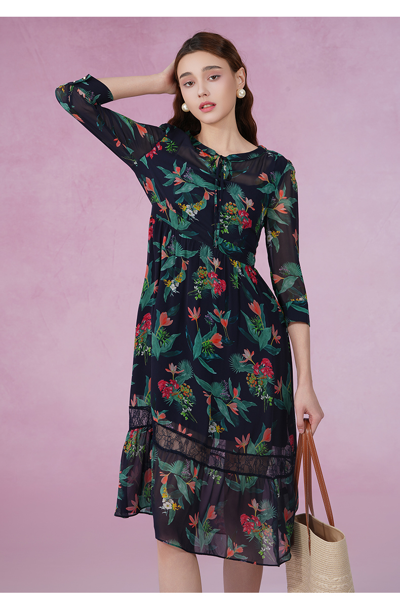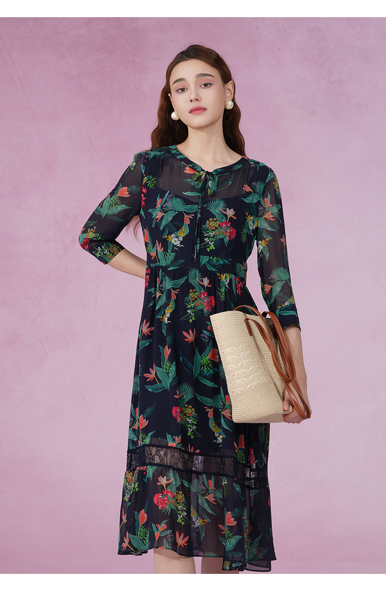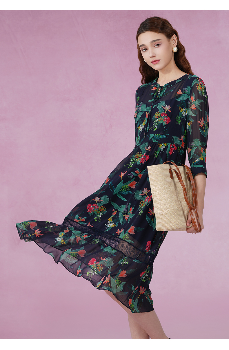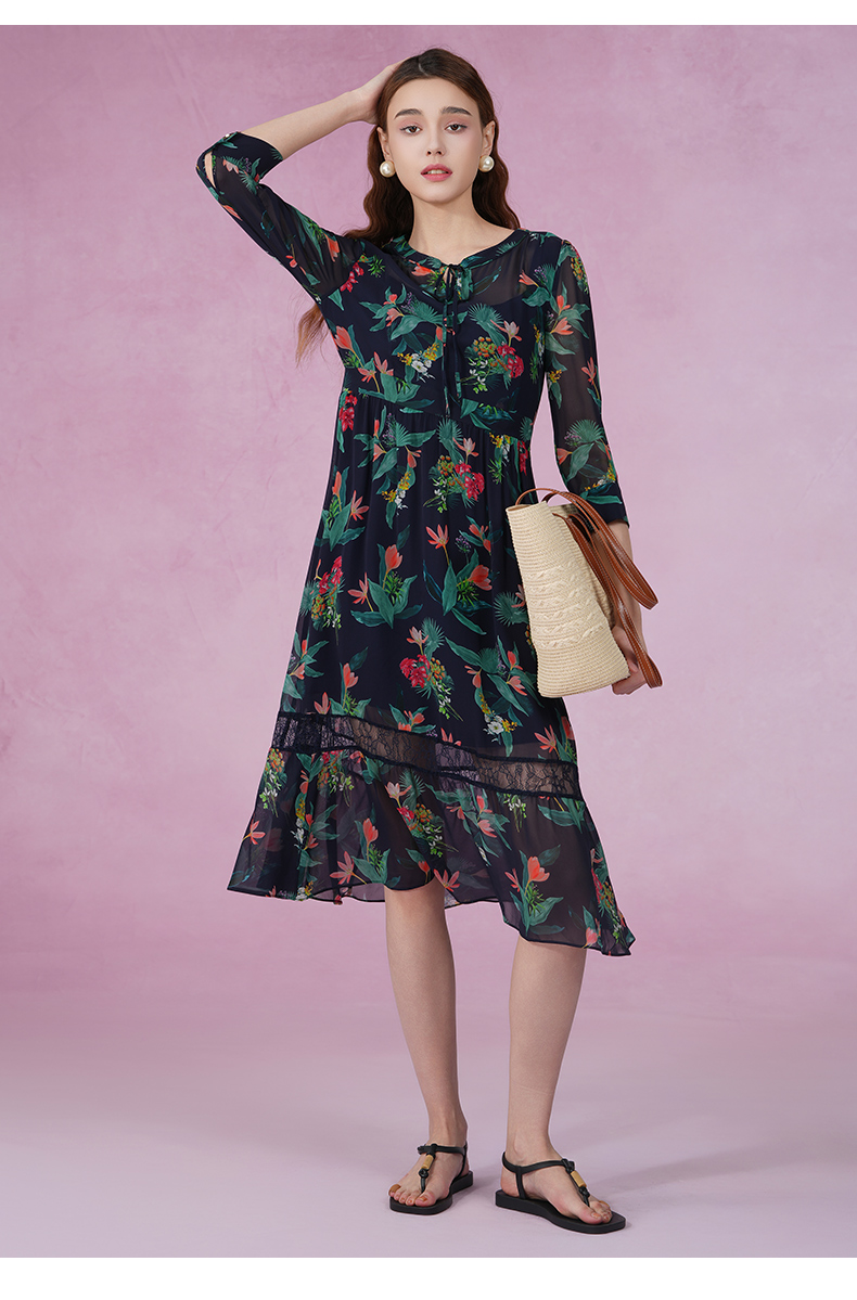 乔万尼新款真丝连衣裙系带拼接设计感优雅EI2E803