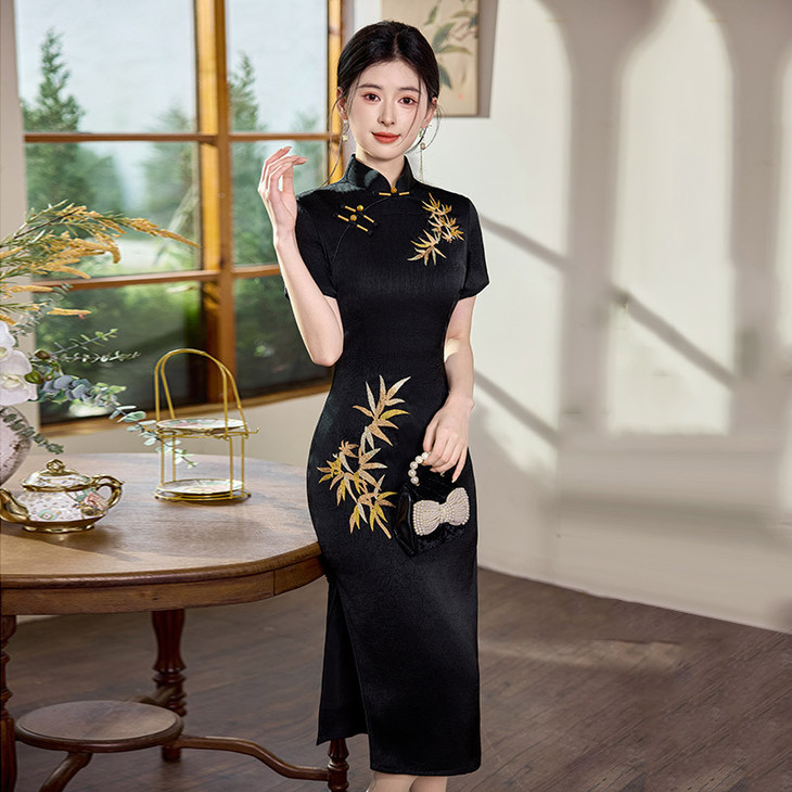 绝美竹叶绣花新中式改良旗袍 SC20726