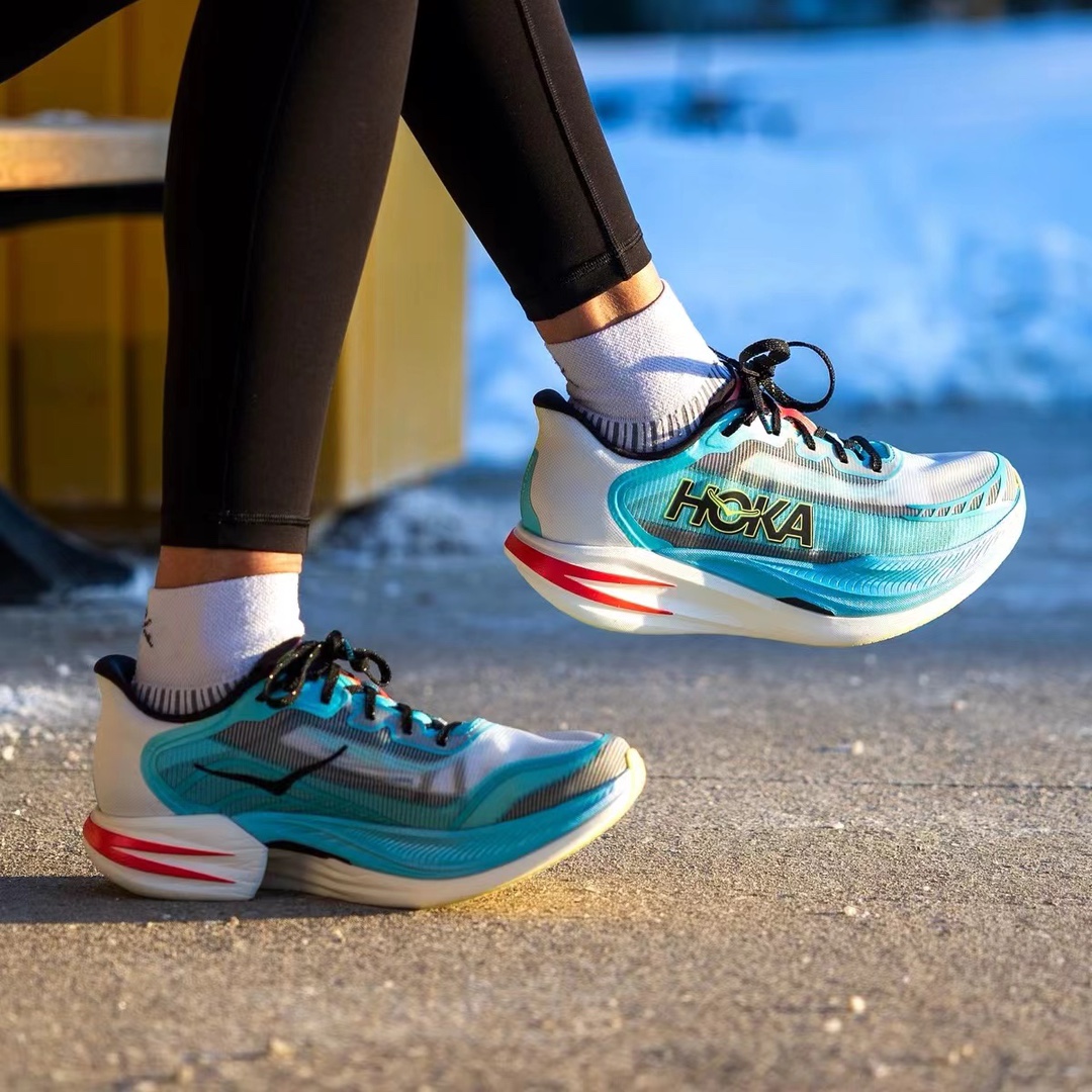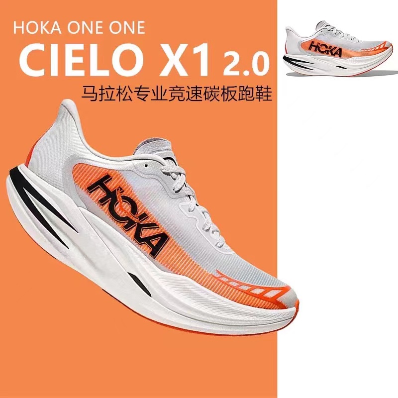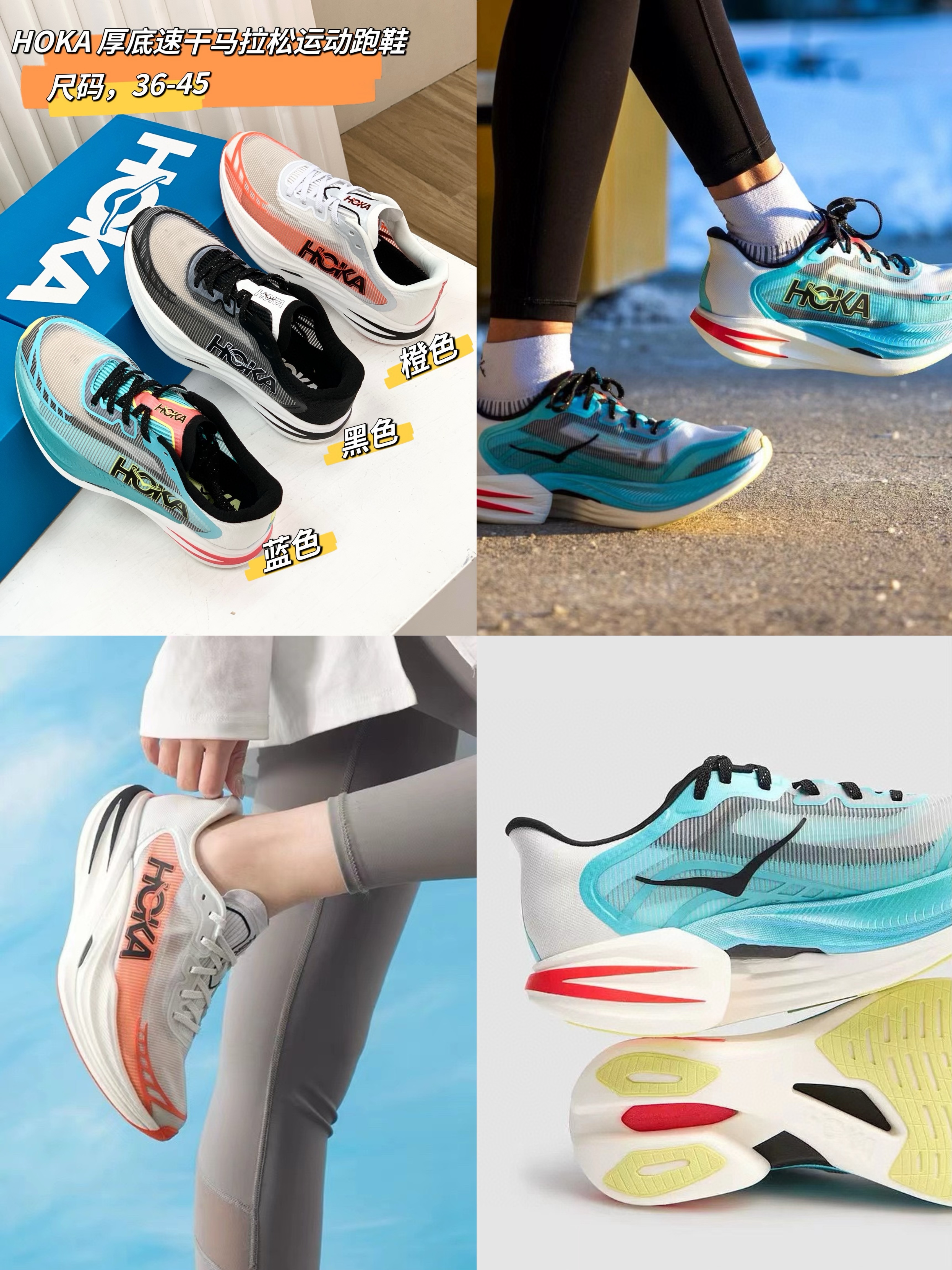 莞产纯原HO&KA ONE ONE CIE&LO X1 2.0 轻盈舒适防滑耐磨低帮 体闲跑步鞋,专为追求极致速度的跑者打造,马拉松休闲运动跑鞋‼️这双鞋堪称 HOKA 迄今最快的长距离路跑竞速利器。其“摇摇乐”弧形大底极具特色,静态放置时仅中足触地,前倾滚动感强烈,为跑步带来独特推进力!
