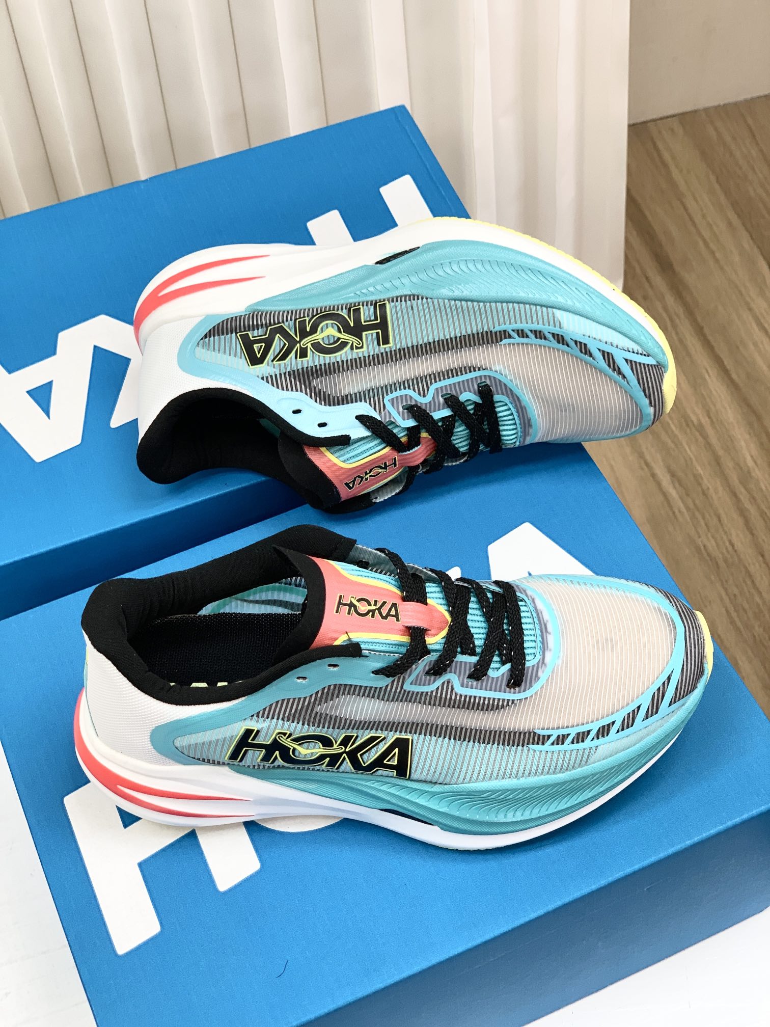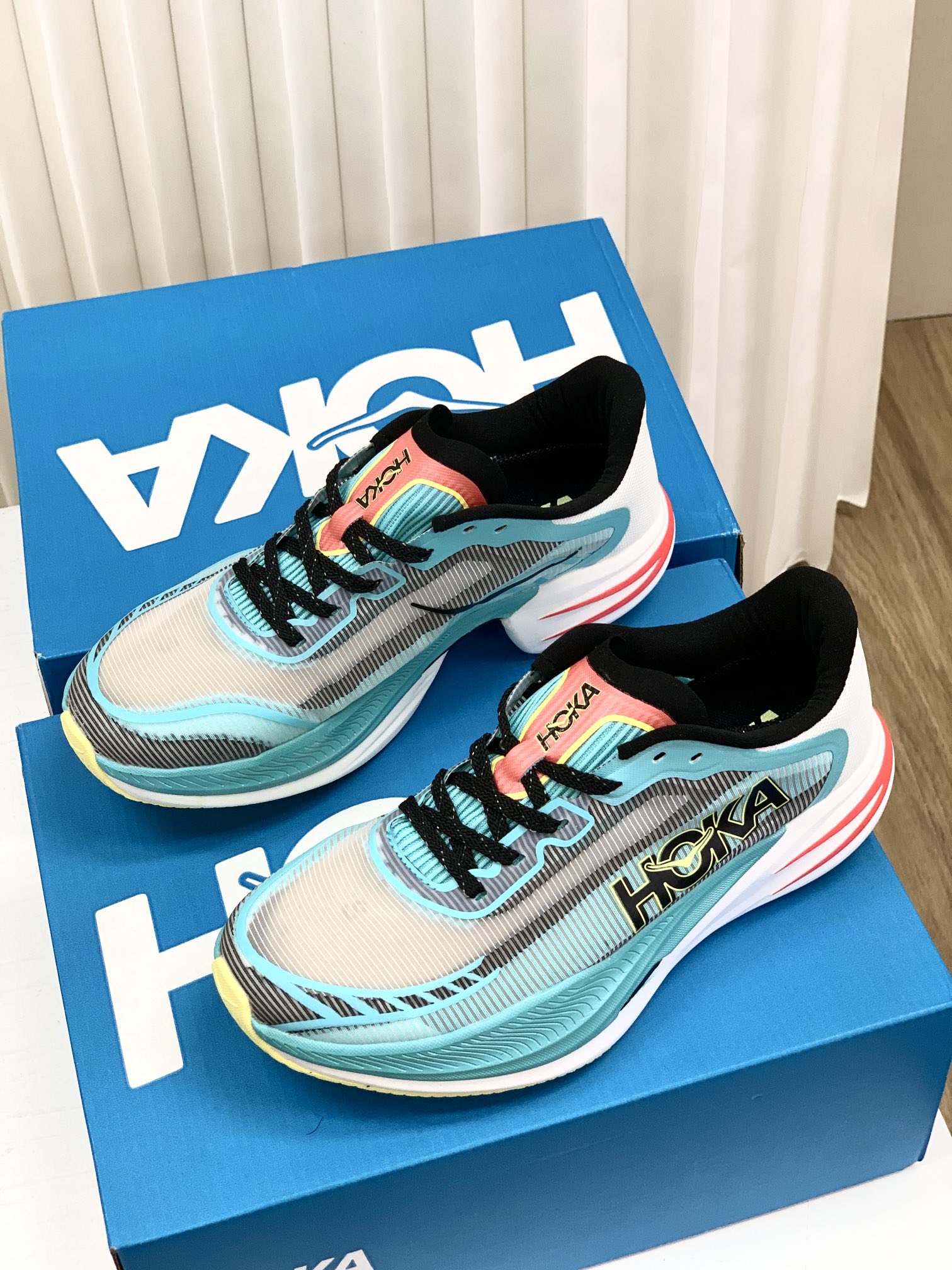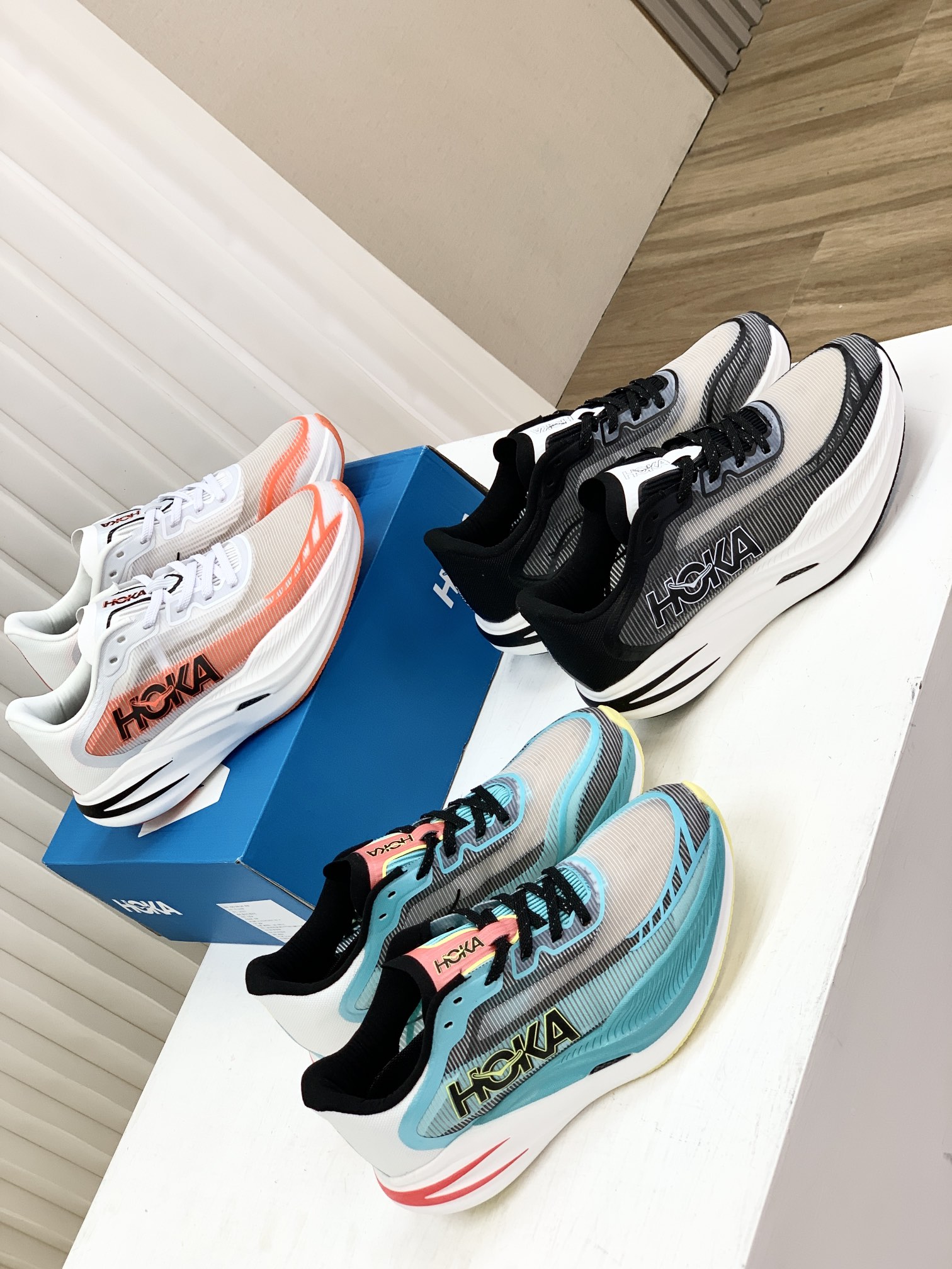 莞产纯原HO&KA ONE ONE CIE&LO X1 2.0 轻盈舒适防滑耐磨低帮 体闲跑步鞋,专为追求极致速度的跑者打造,马拉松休闲运动跑鞋‼️这双鞋堪称 HOKA 迄今最快的长距离路跑竞速利器。其“摇摇乐”弧形大底极具特色,静态放置时仅中足触地,前倾滚动感强烈,为跑步带来独特推进力!
