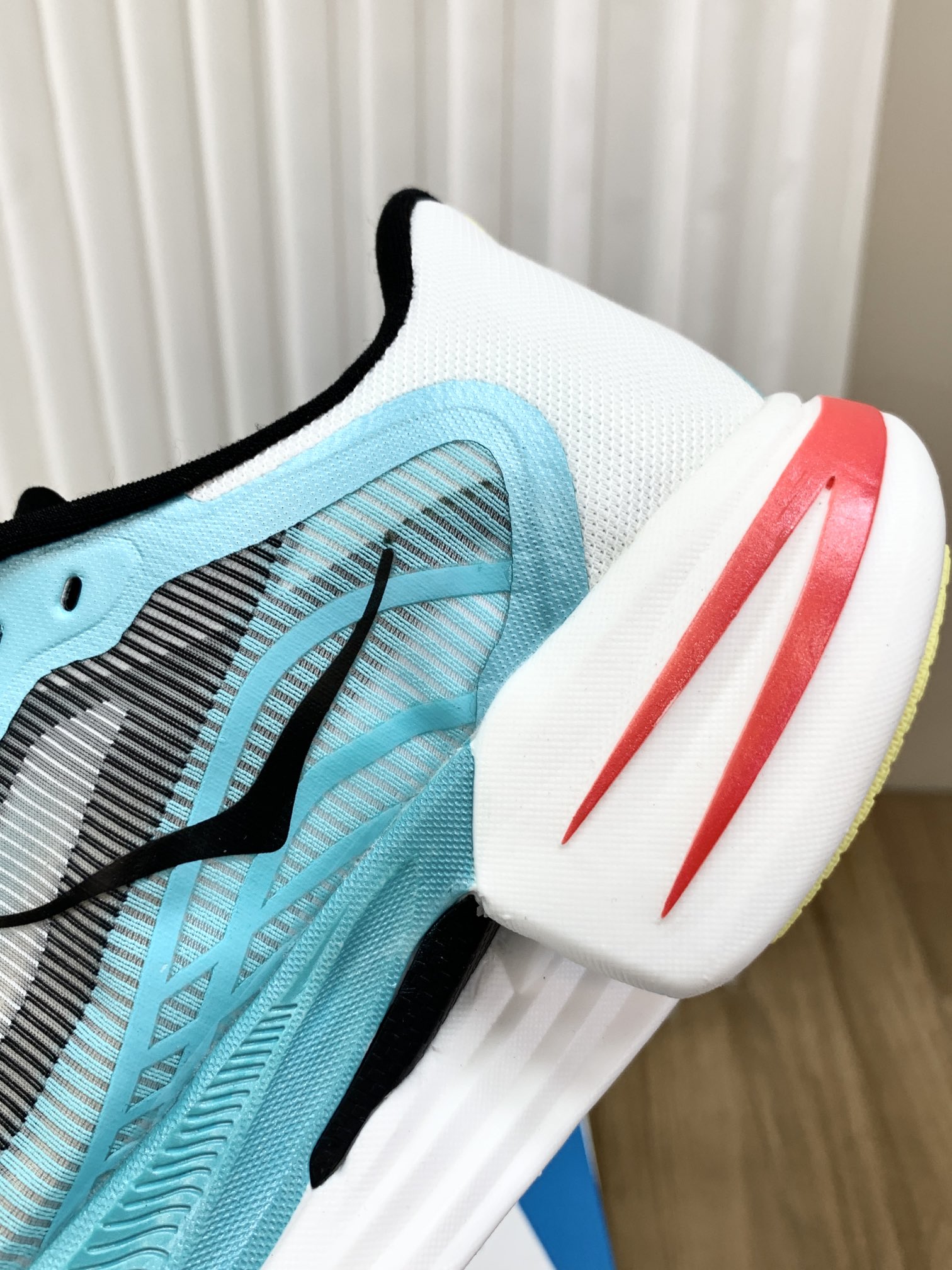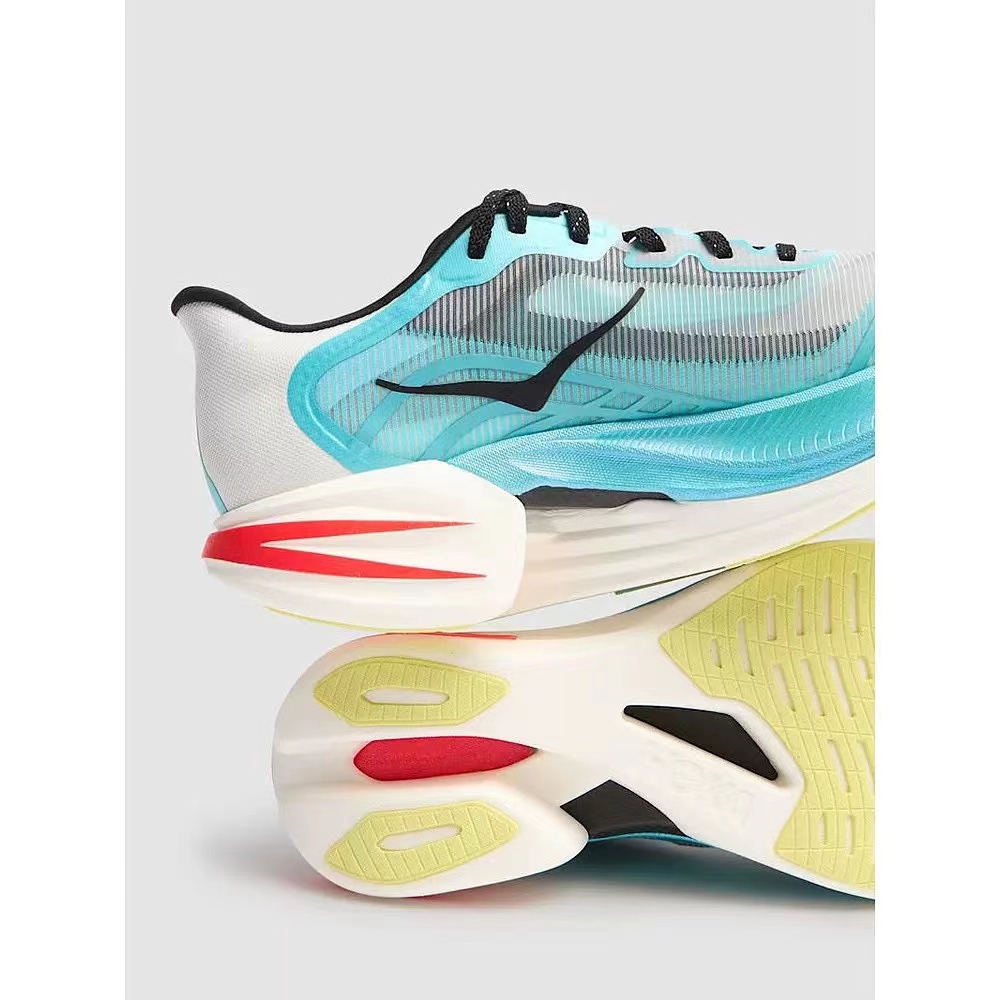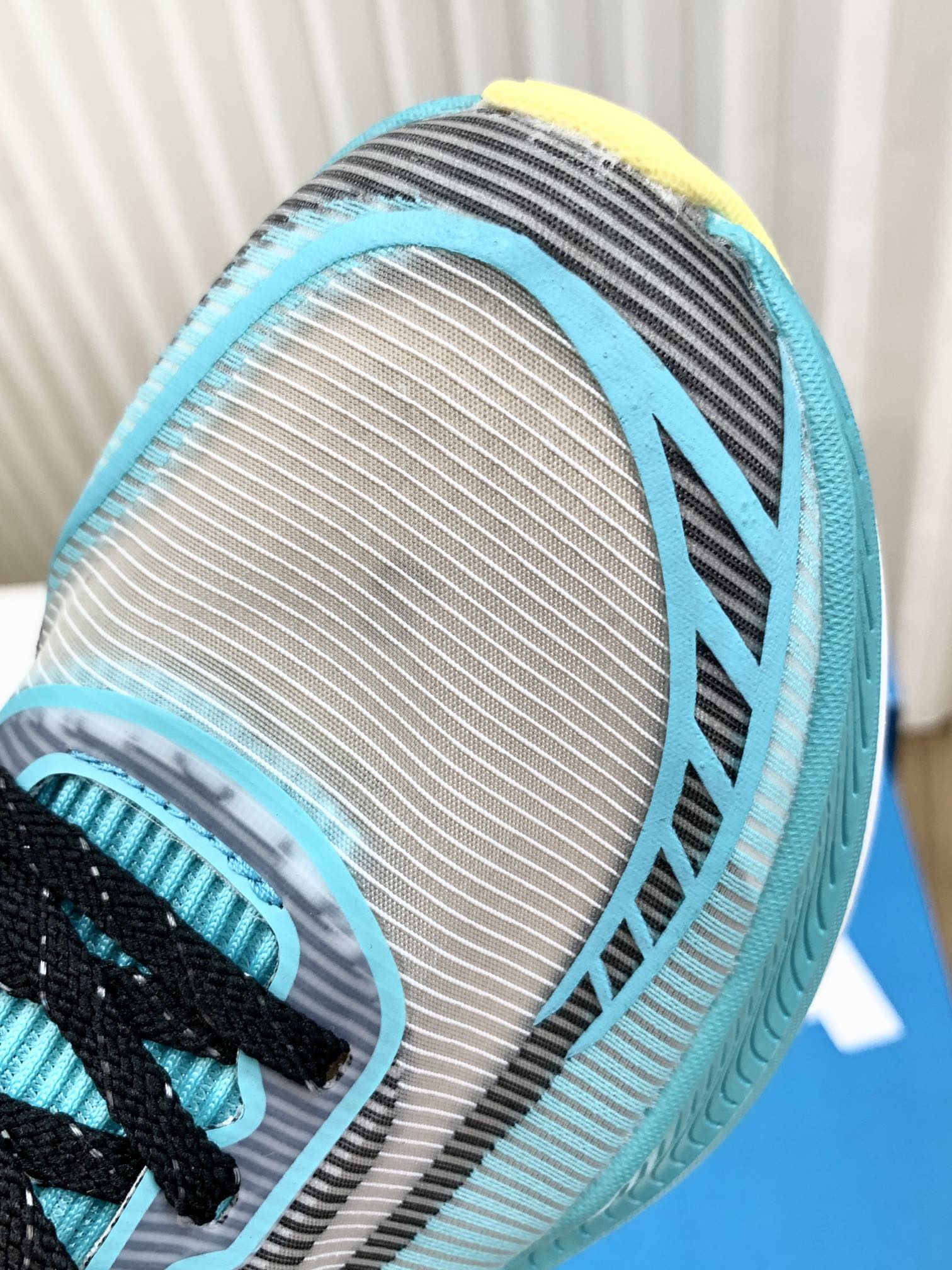 中底采用双密度PEBA中底,提供更为强韧能量回弹和缓冲保护,配合进化后的翼型碳纤维板,带来了平稳和强力的推进力,采用轻薄的JACQUARD贾卡鞋面,透气性和包裹性提升明显,鞋面轻量化升级为鞋身的减重贡献不小。