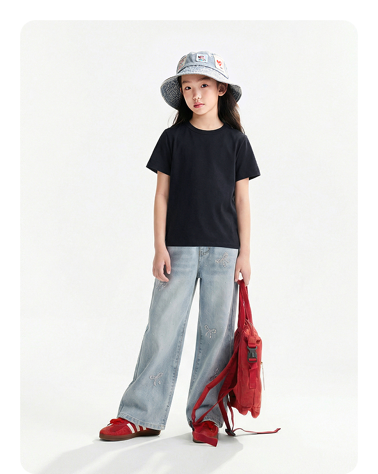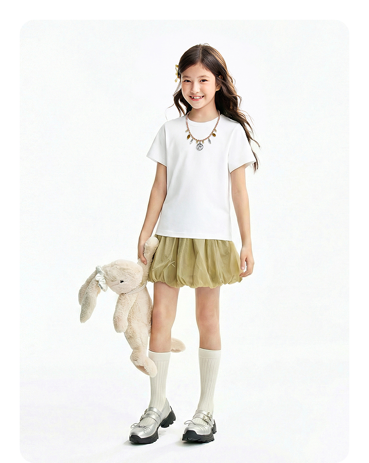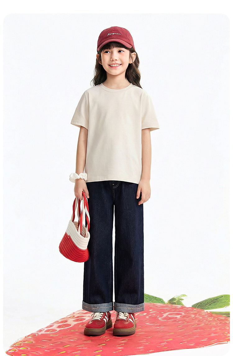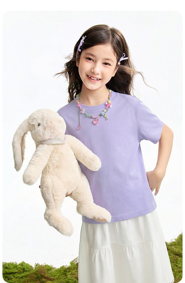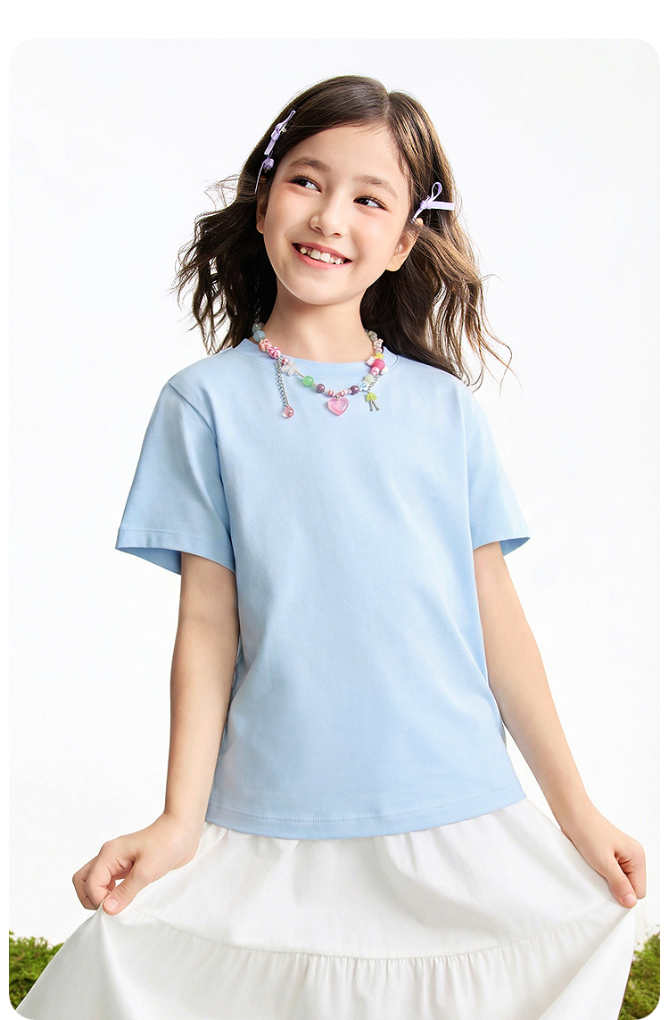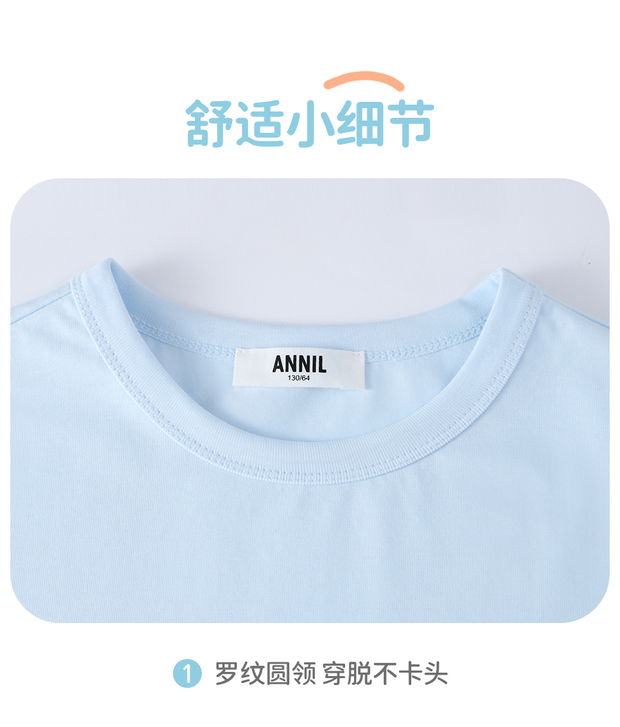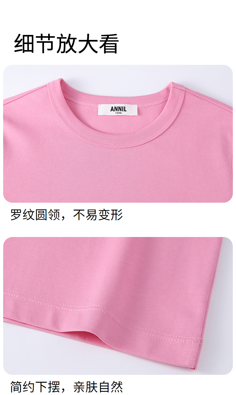 【多巴胺全能亲子T-正肩版型】男女童简约百搭净色亲子T恤短T圆领短袖针织衫夏季新款安奈儿童装EM621731