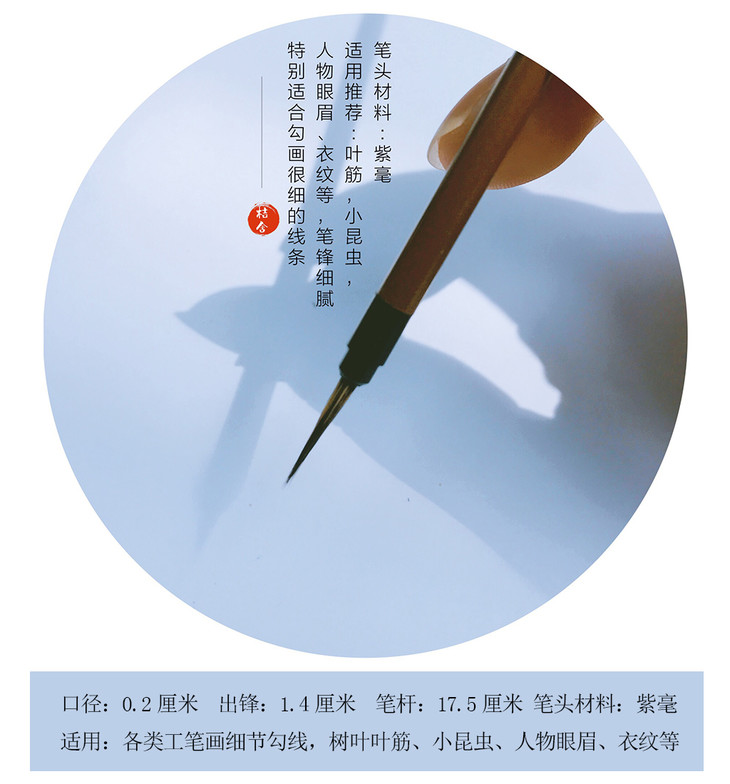 【桔舍】紫尖叶筋狼毫毛笔(用于叶筋、昆虫、眼眉等细节勾勒)