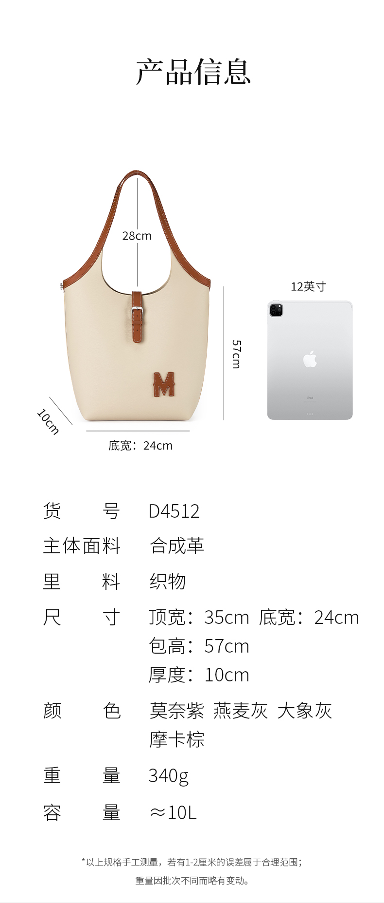 【王楚然同款】独白X卡拉羊新款女士托特包大容量通勤手提包D4512