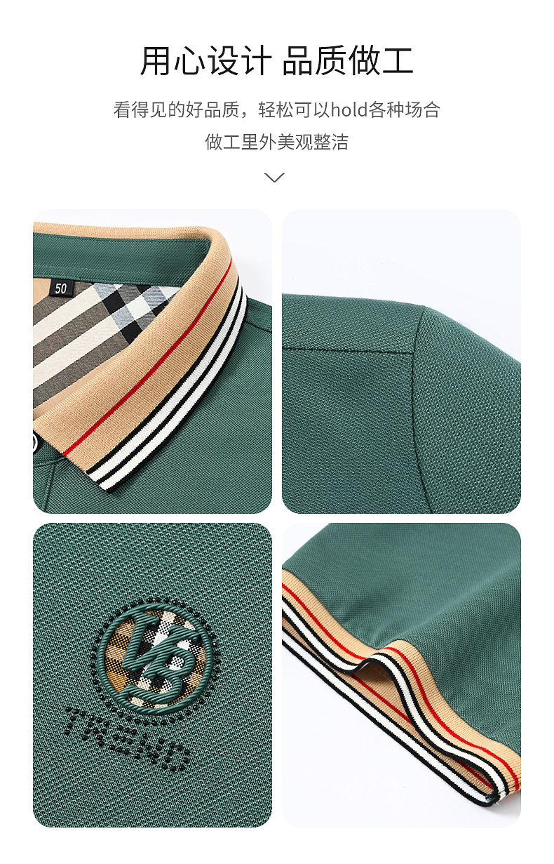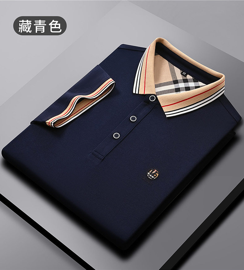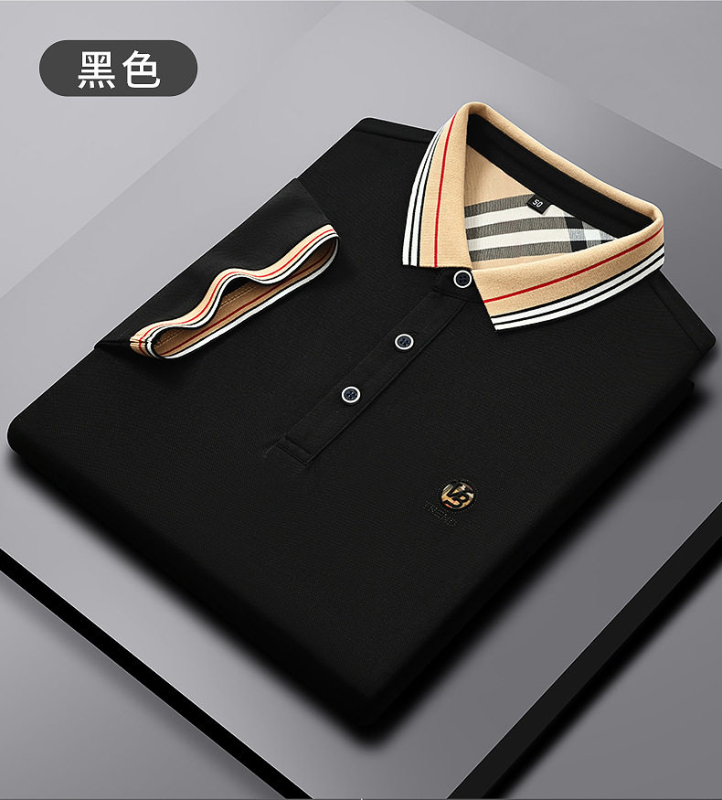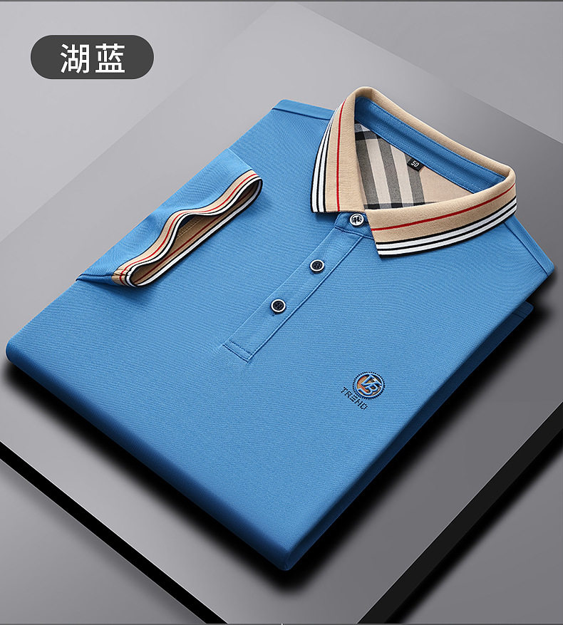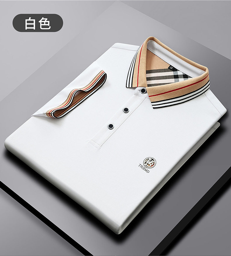 新款桑蚕丝男士短袖t恤POLO衫格子电脑领刺绣男POLO衫 PSL-832