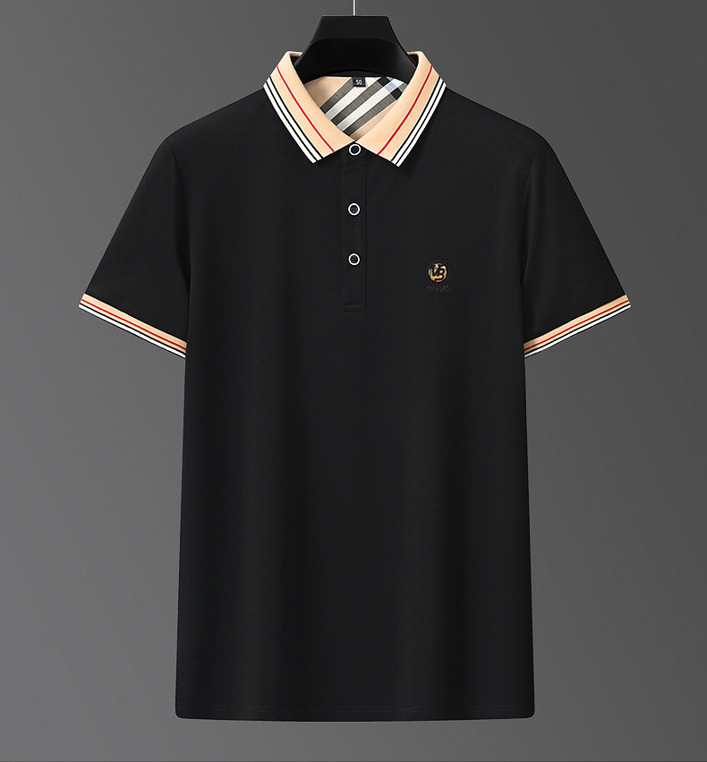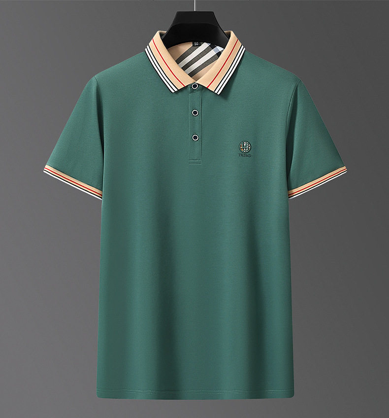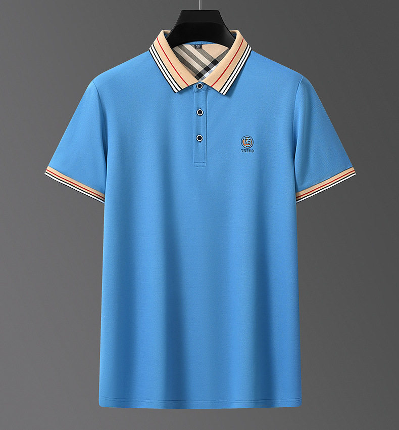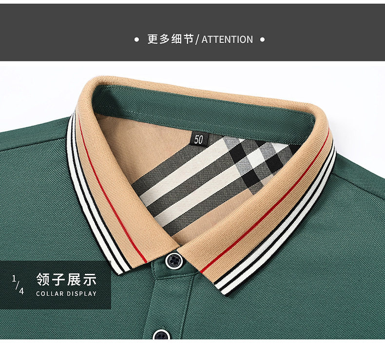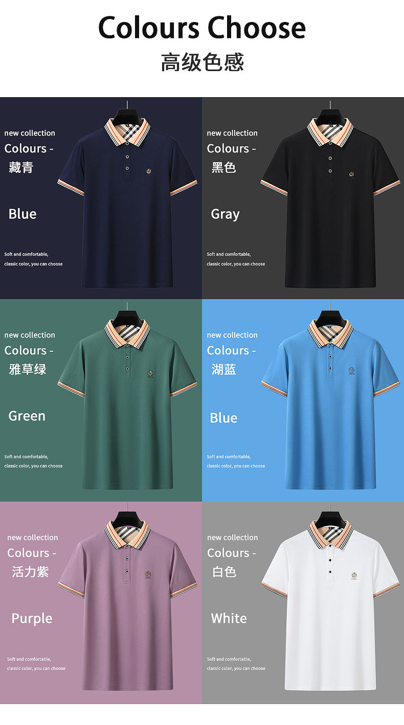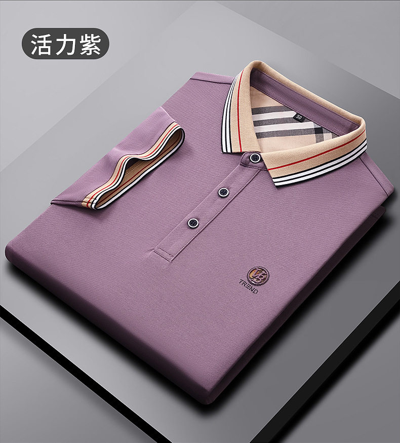 新款桑蚕丝男士短袖t恤POLO衫格子电脑领刺绣男POLO衫 PSL-832