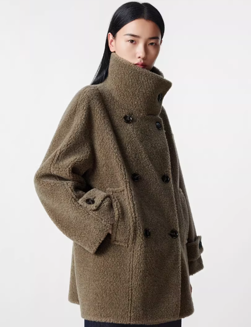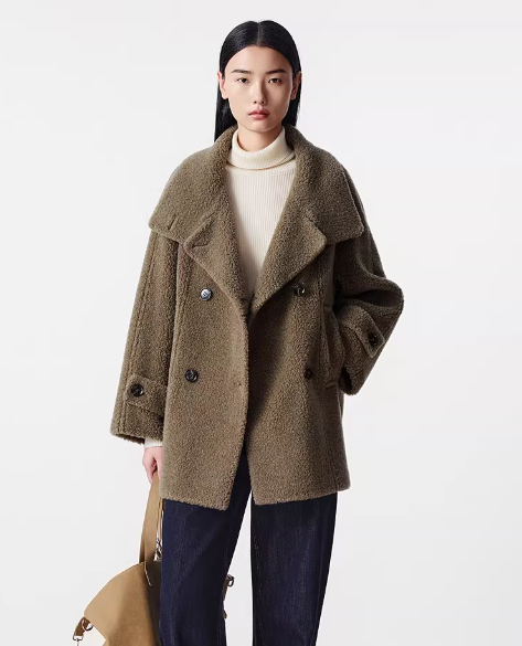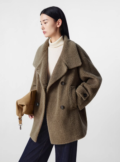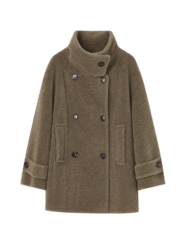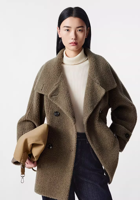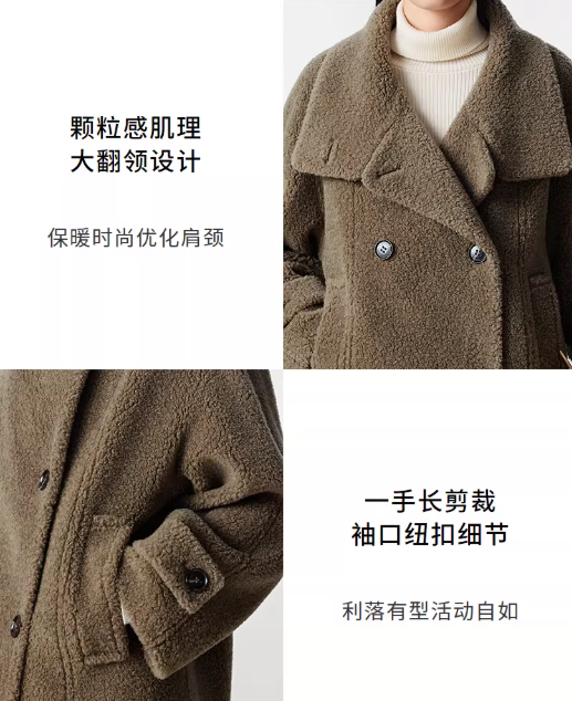 朗姿 气质高领双排扣羊剪绒大衣外套LCGD98TYC001