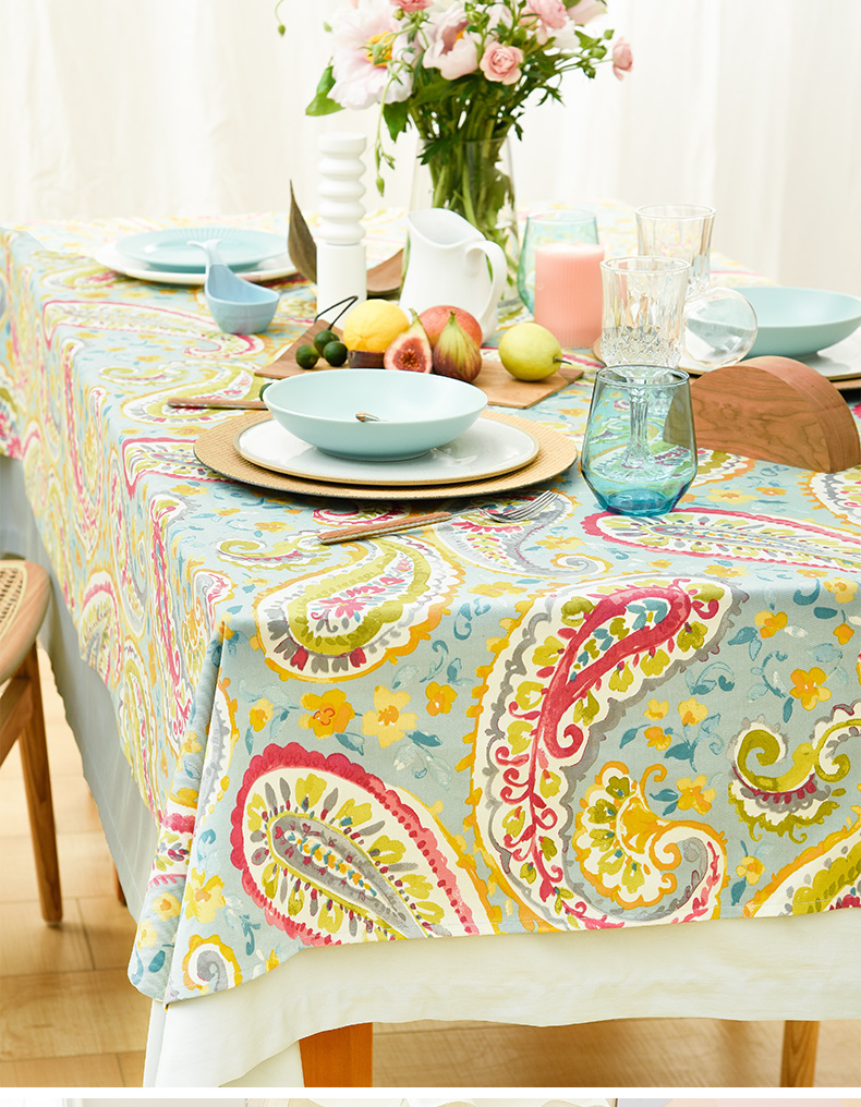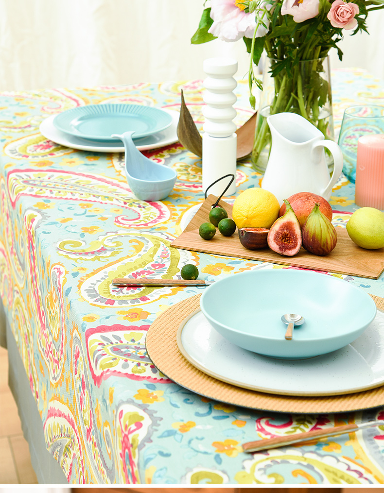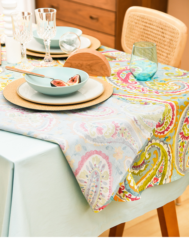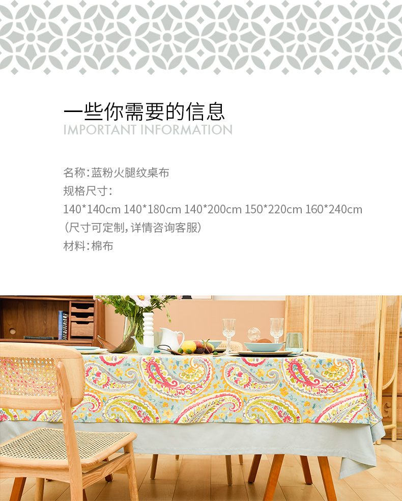 蓝粉火腿纹美式田园法式桌布
