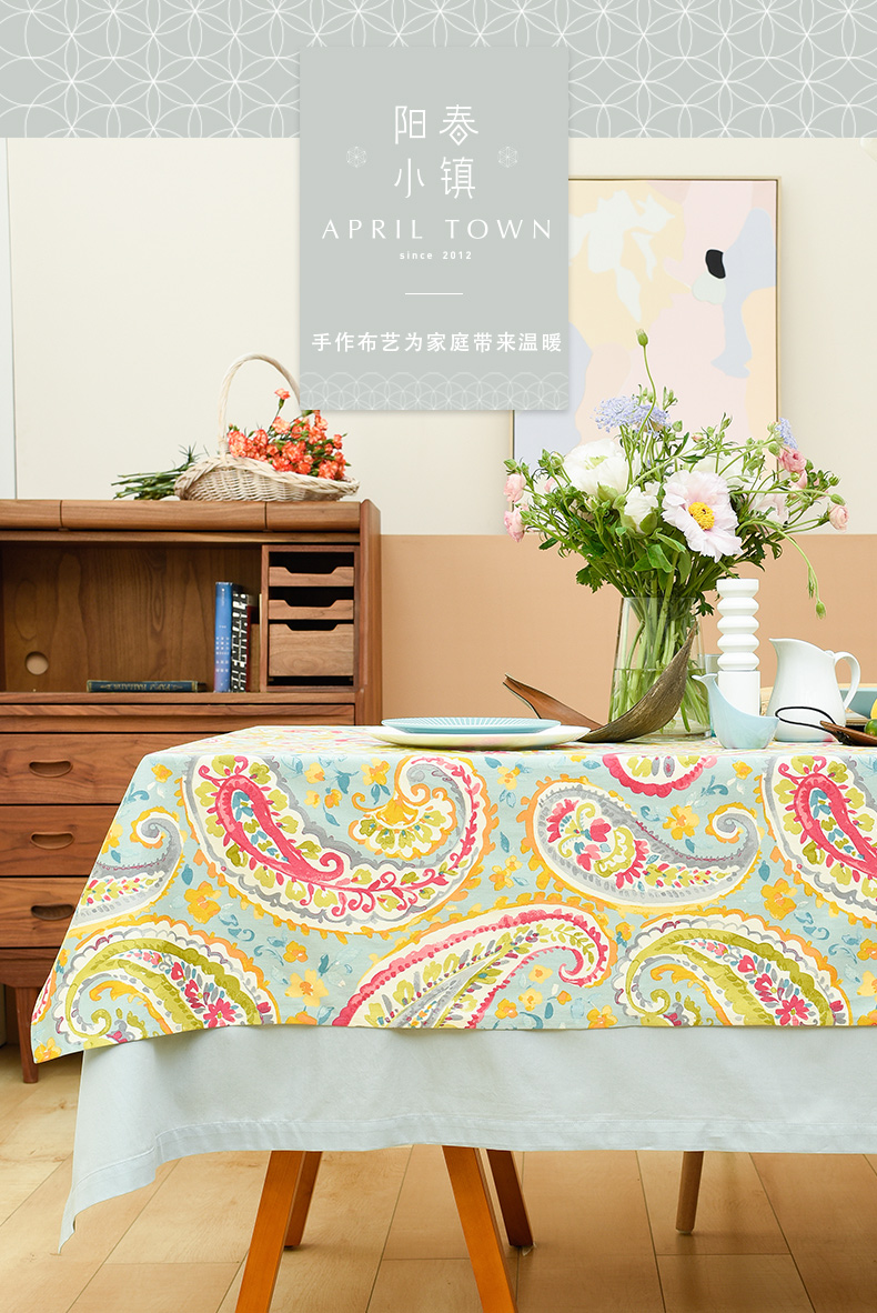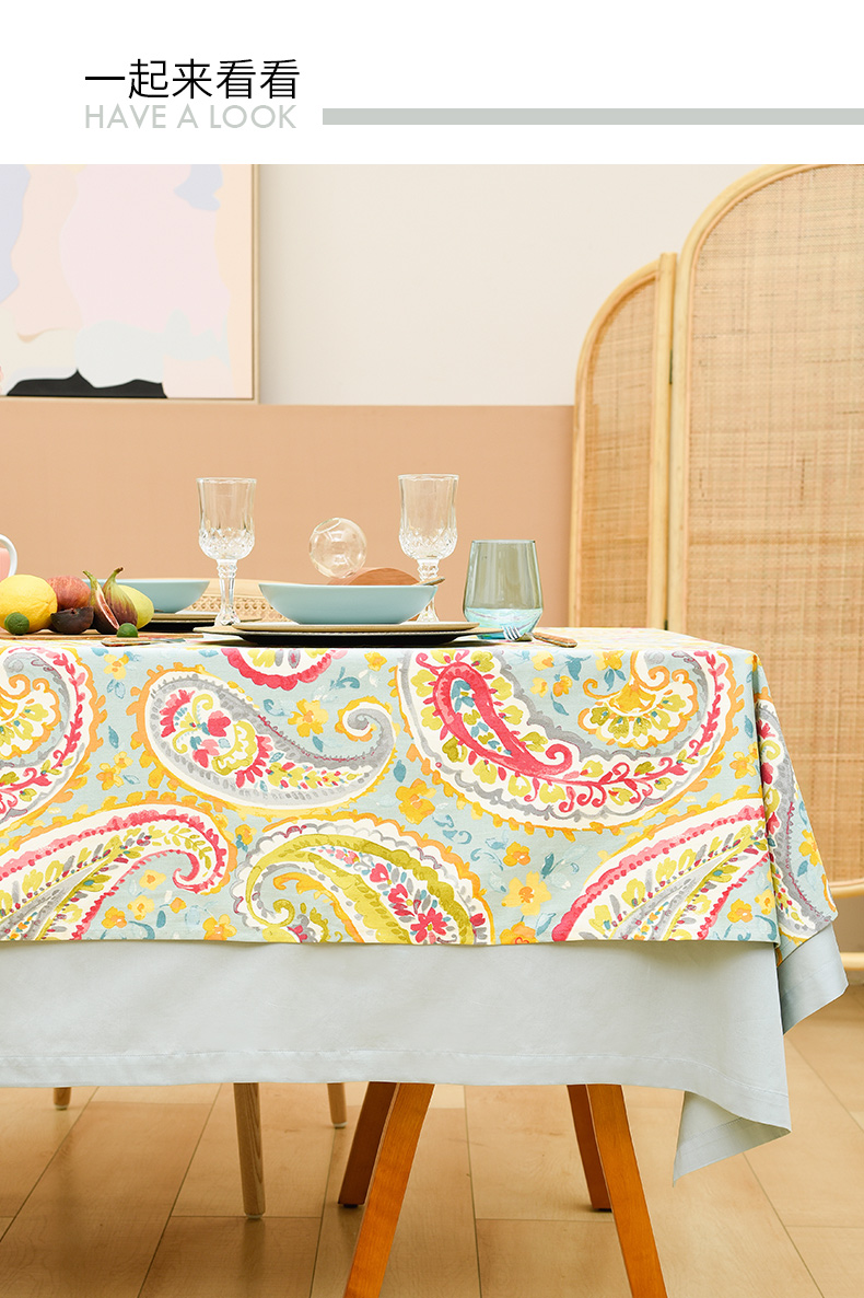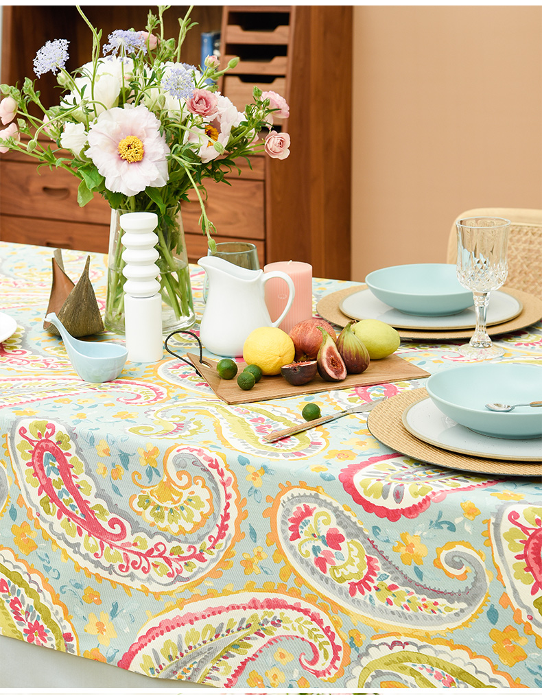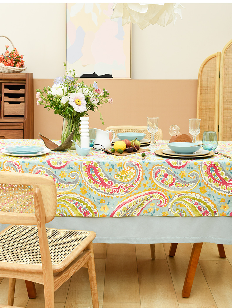 蓝粉火腿纹美式田园法式桌布