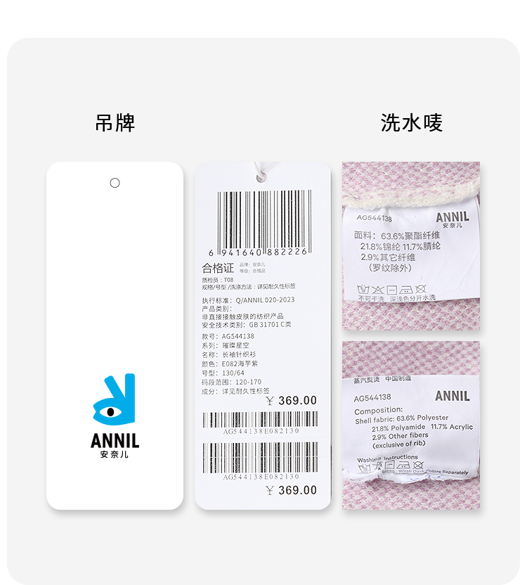 【实体店同款】女童长袖针织衫冬季新款安奈儿童装AG544138