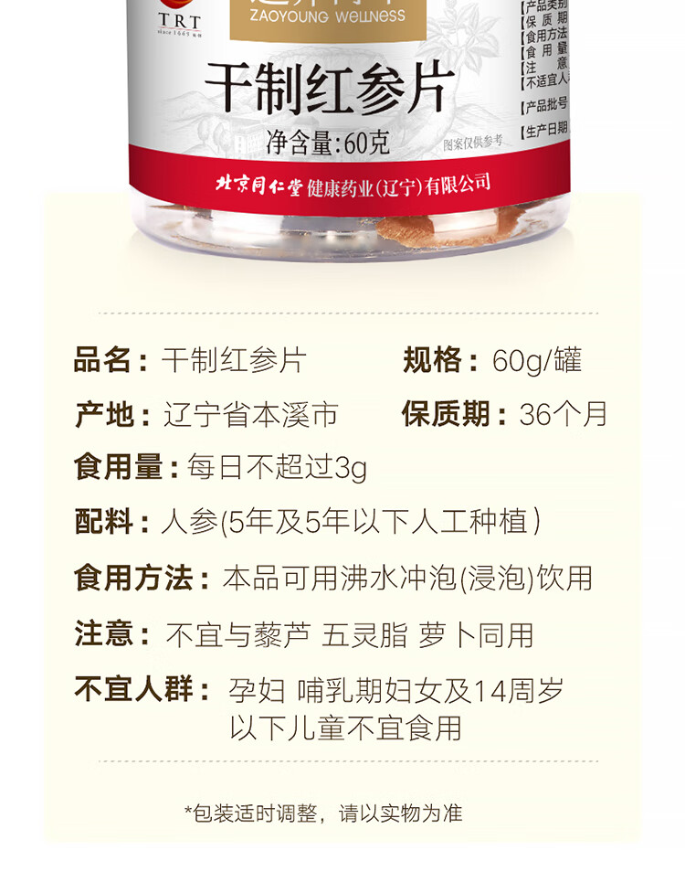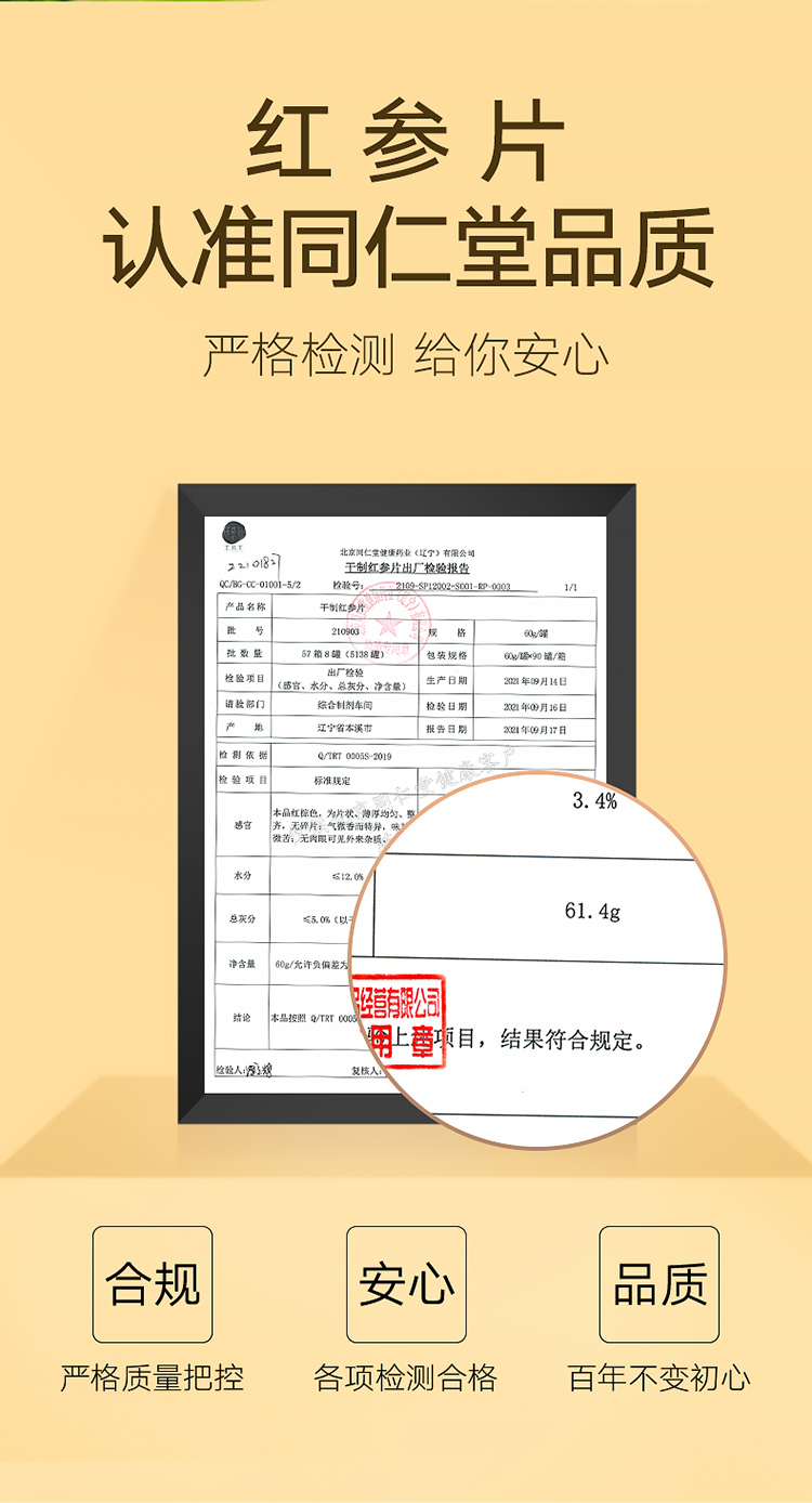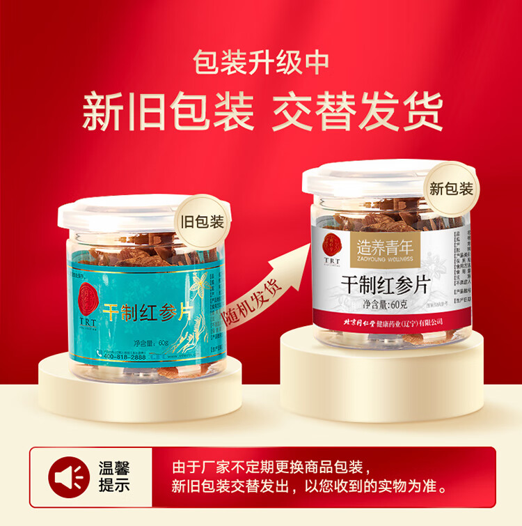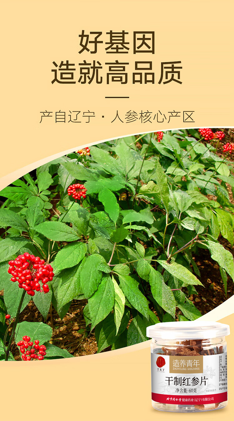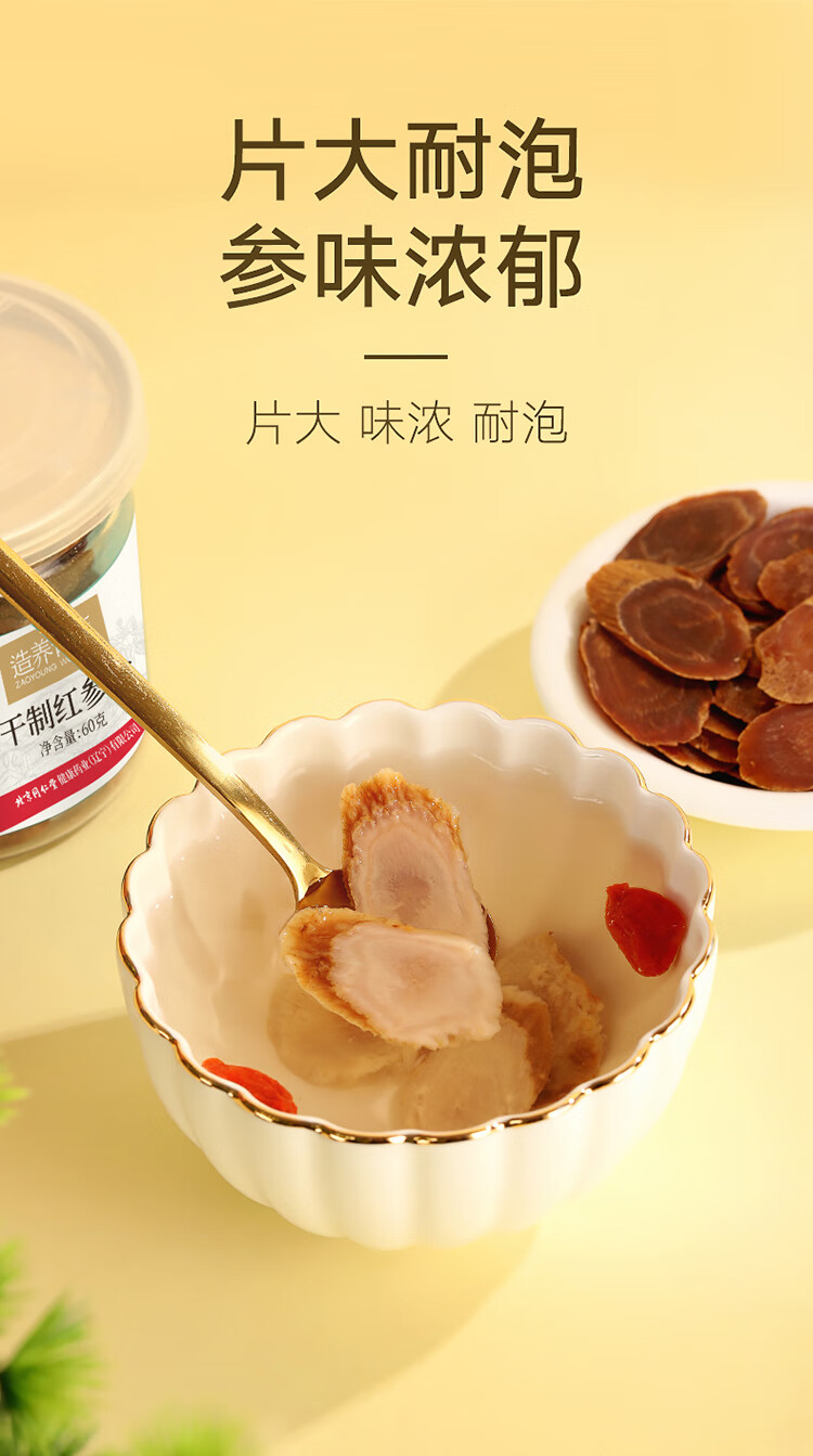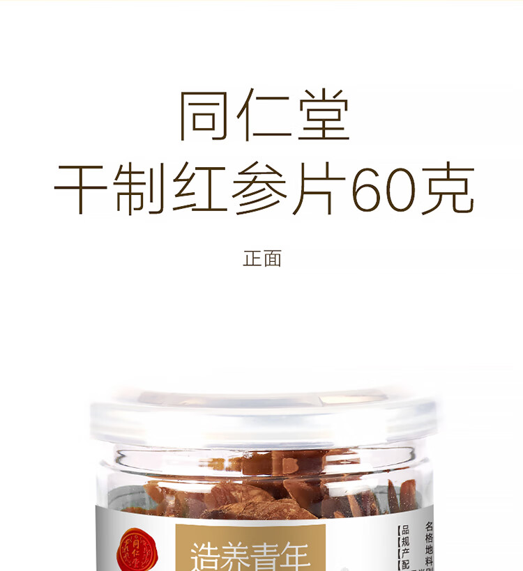 【正宗同仁堂品牌】北京同仁堂 红参片60g 干制参片 片大耐泡SY