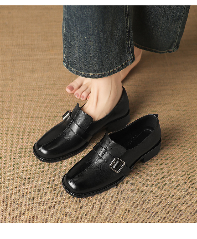 【预售7天】春季中跟百搭头层水洗牛皮乐福鞋皮带扣小皮鞋NGMZR&72-8059