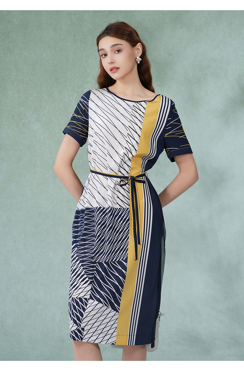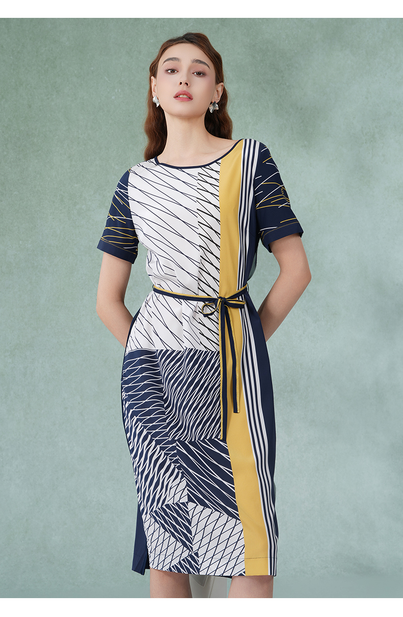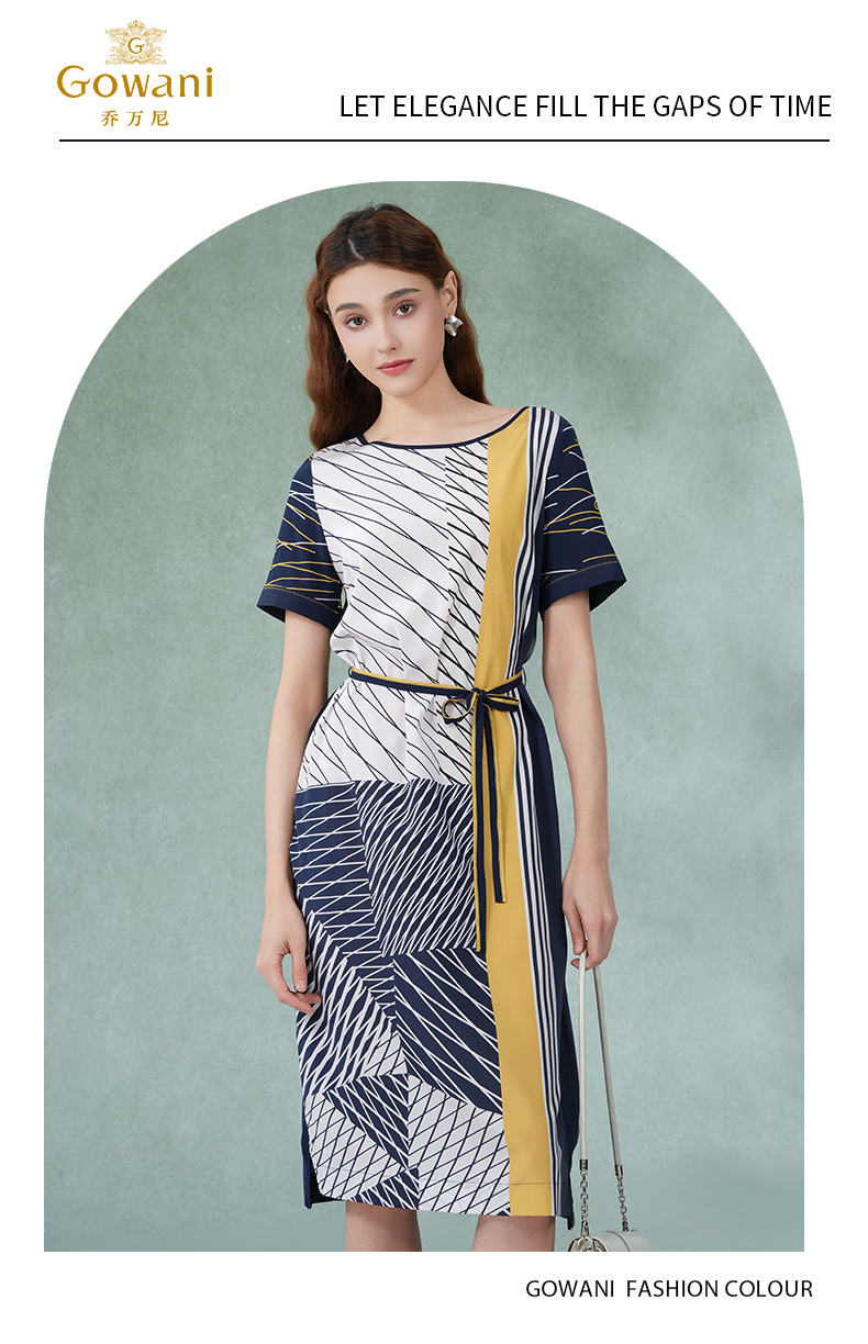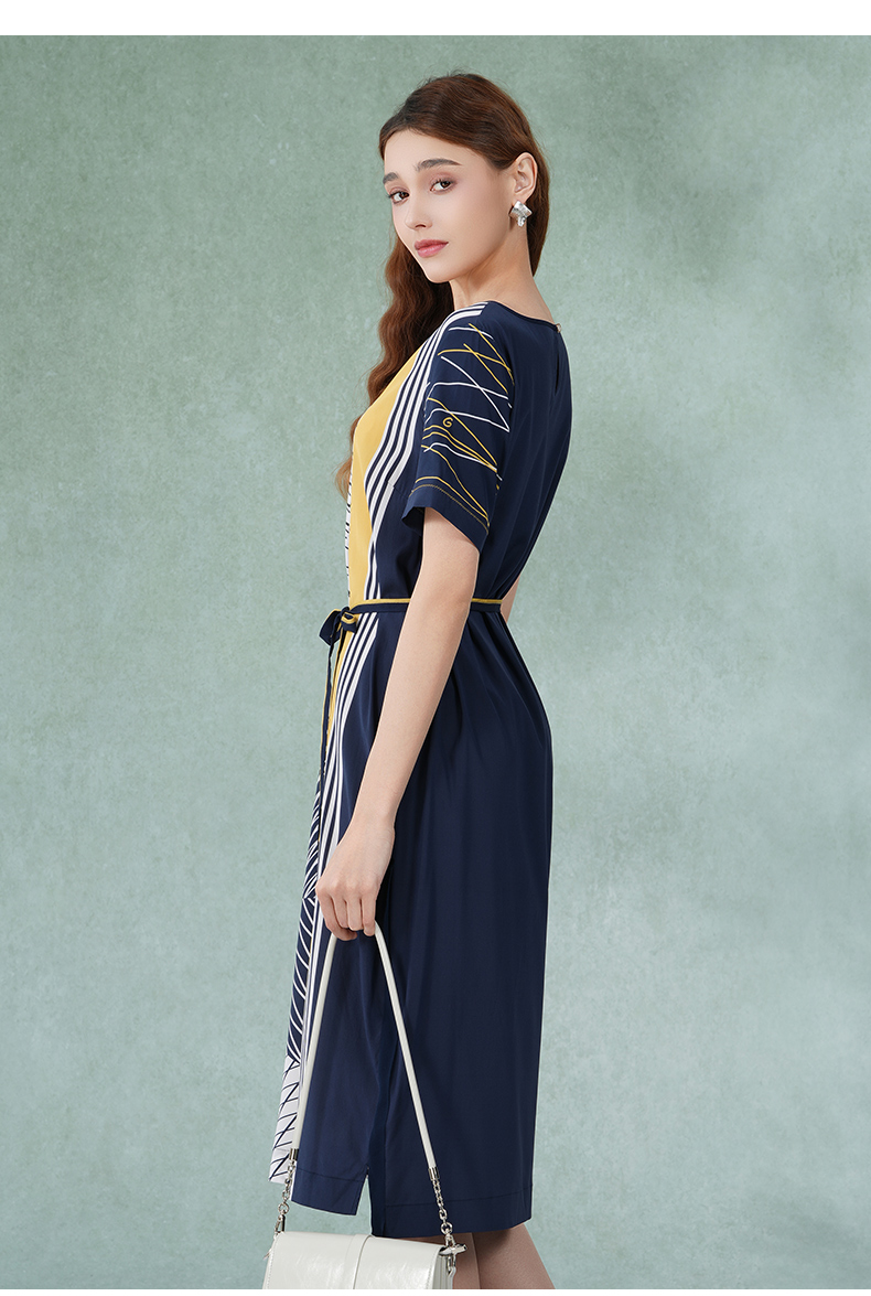 乔万尼高级感真丝连衣裙撞色拼接宽松EI2E865
