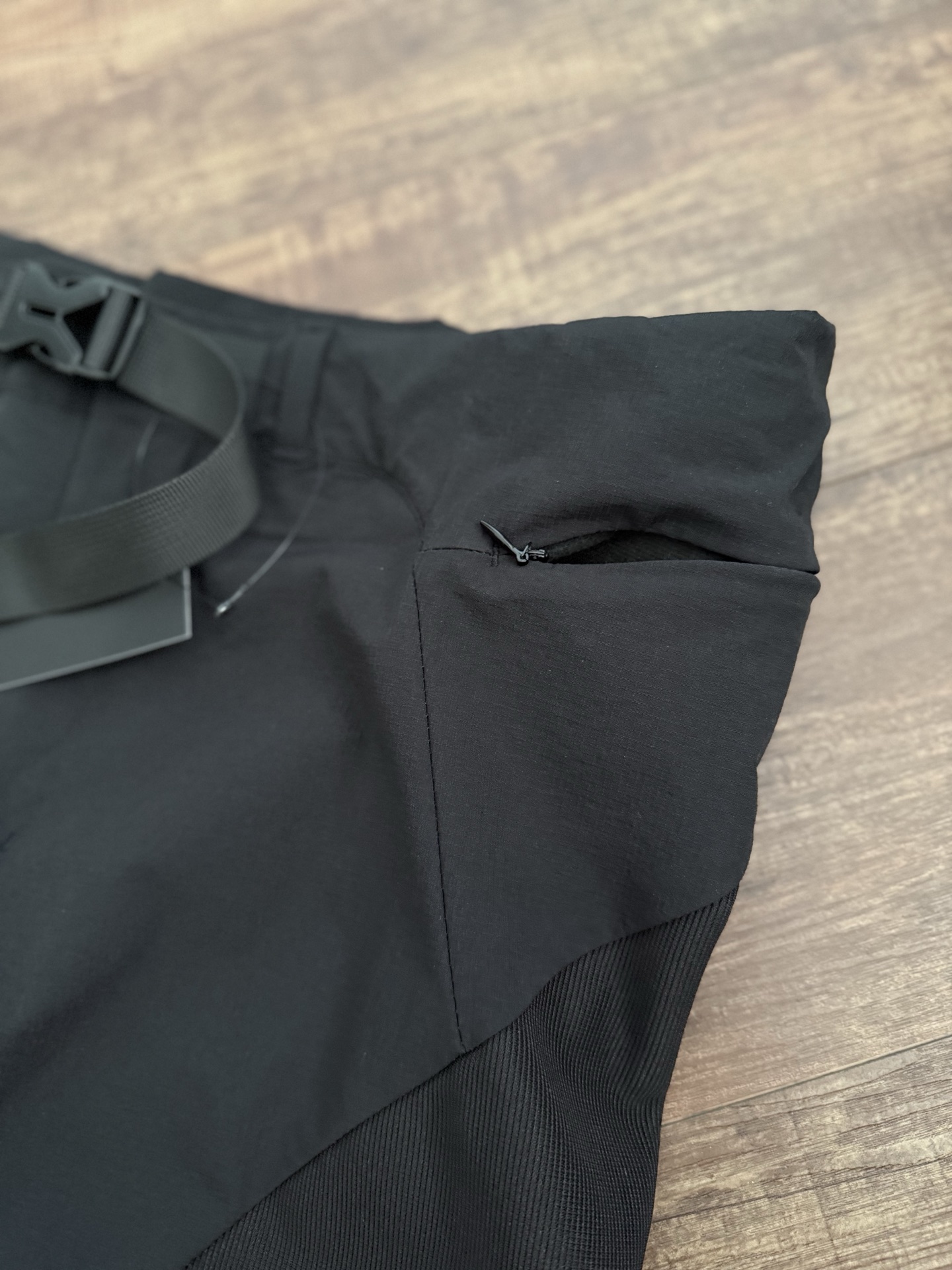 户外弹力面料拼接弹力螺纹布!86%尼龙,14%氨纶锦氨混纺的面料,使裤子在保有立体感的同时有更大的弹性,提高穿着舒适感