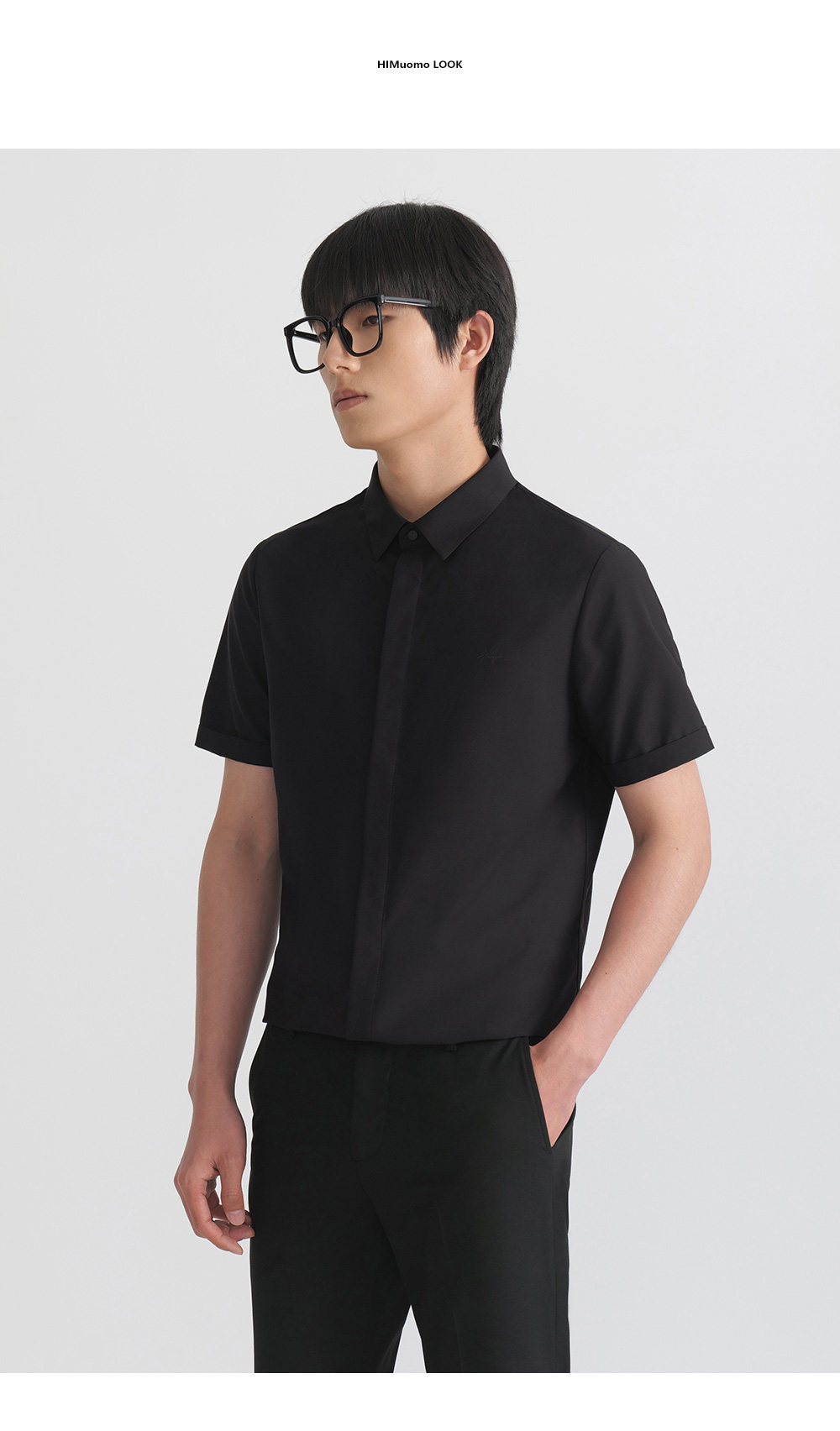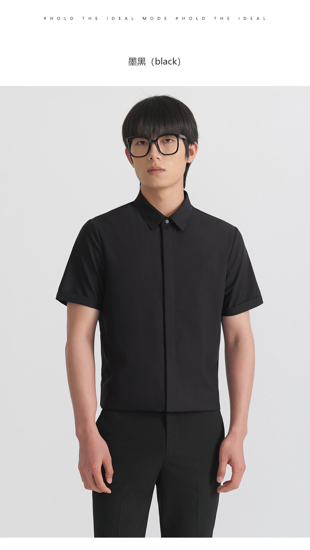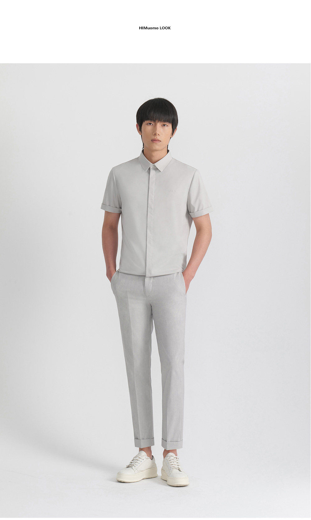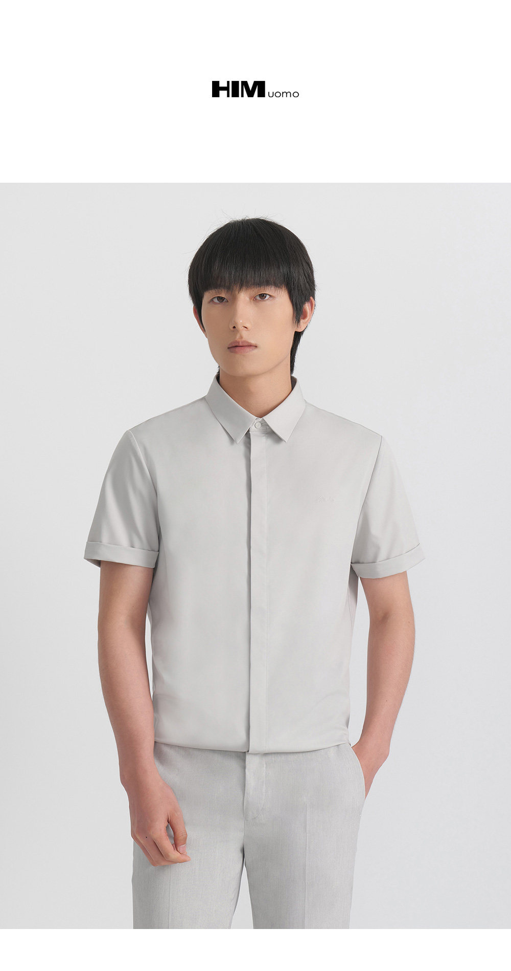 HIM漢崇 通勤商务短袖衬衫男舒适透气正装修身白色衬衣 2026夏季