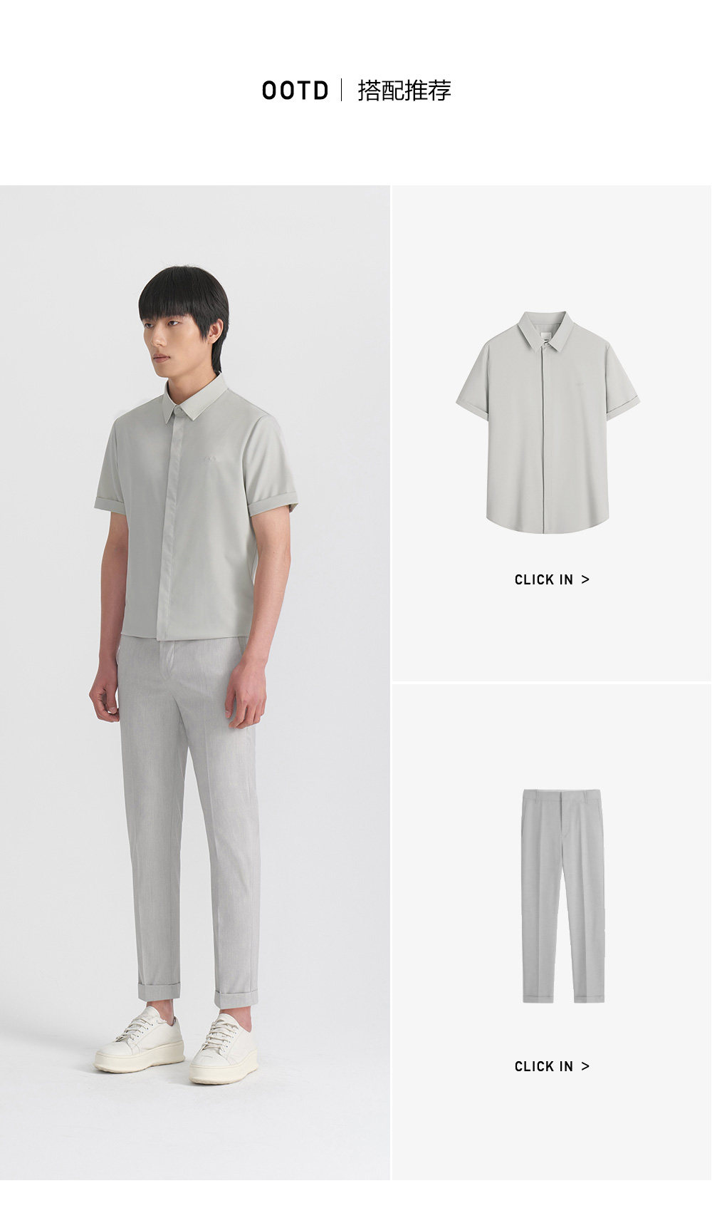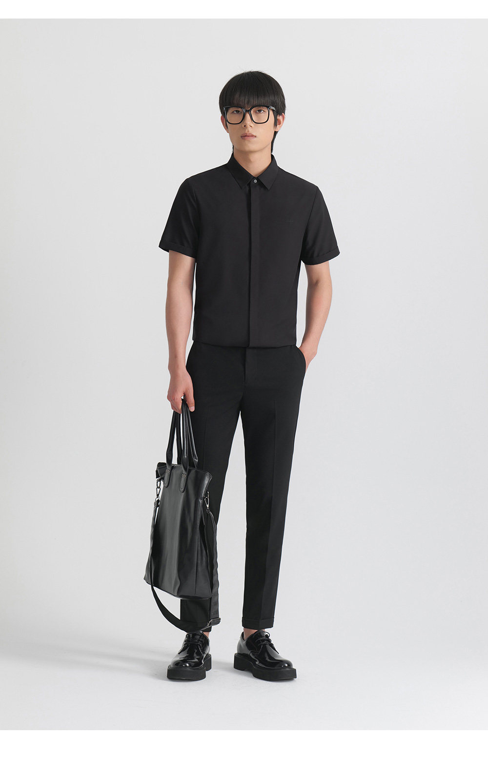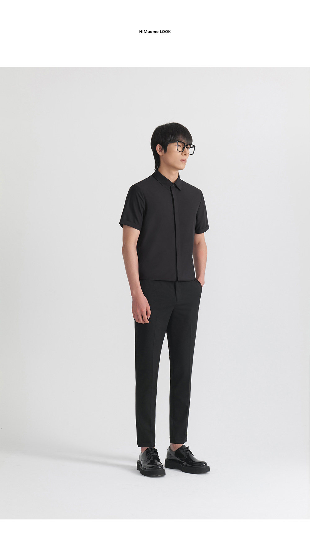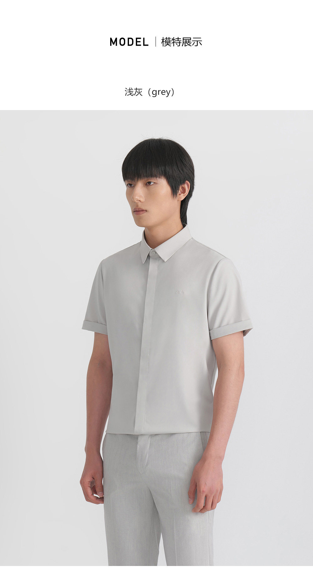 HIM漢崇 通勤商务短袖衬衫男舒适透气正装修身白色衬衣 2026夏季