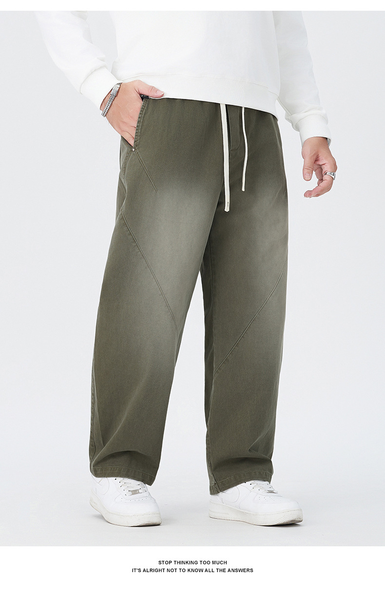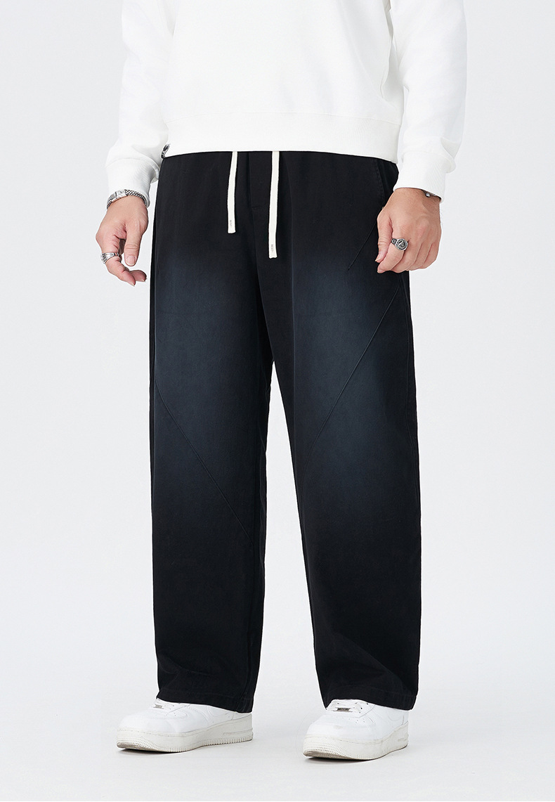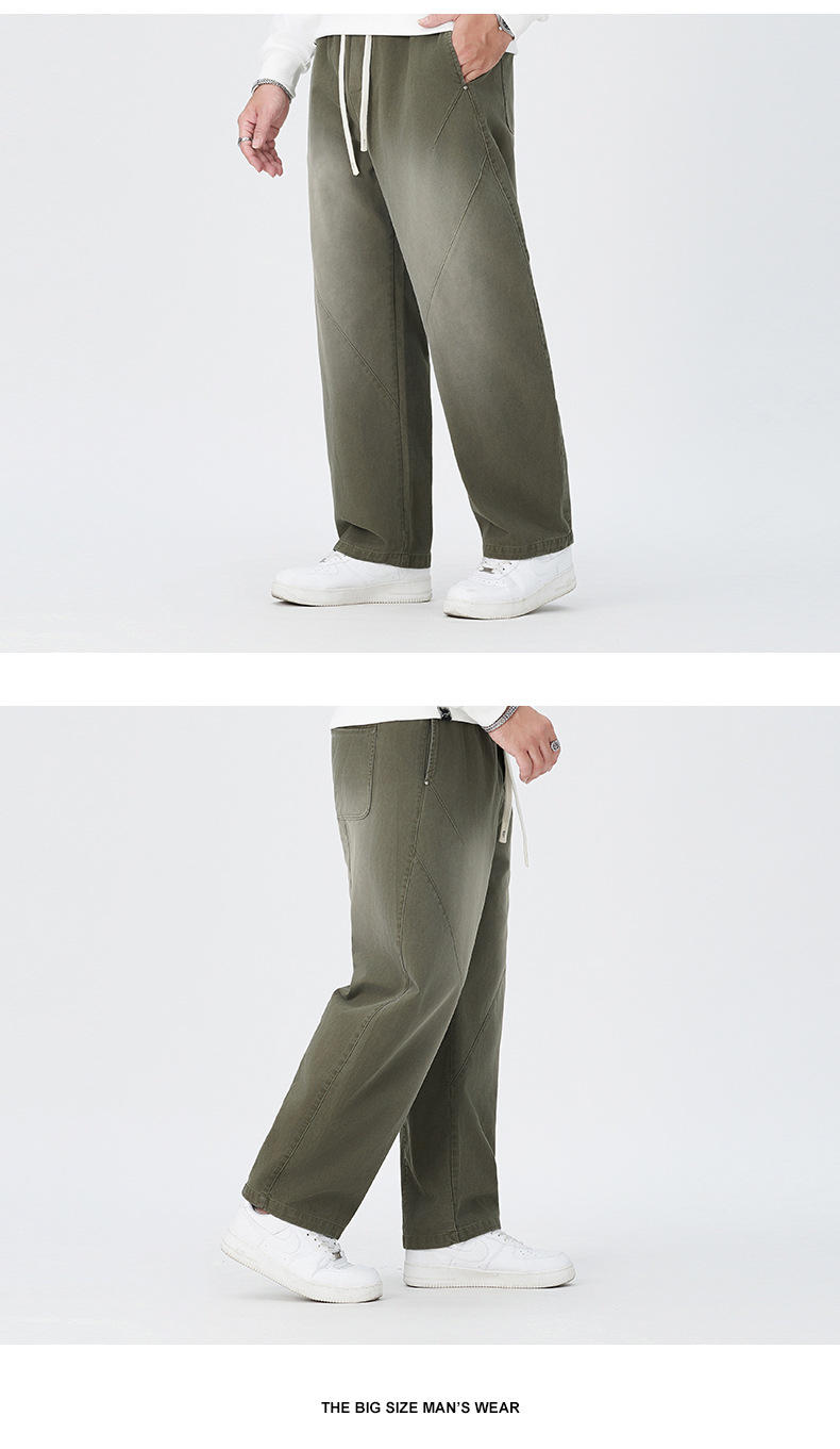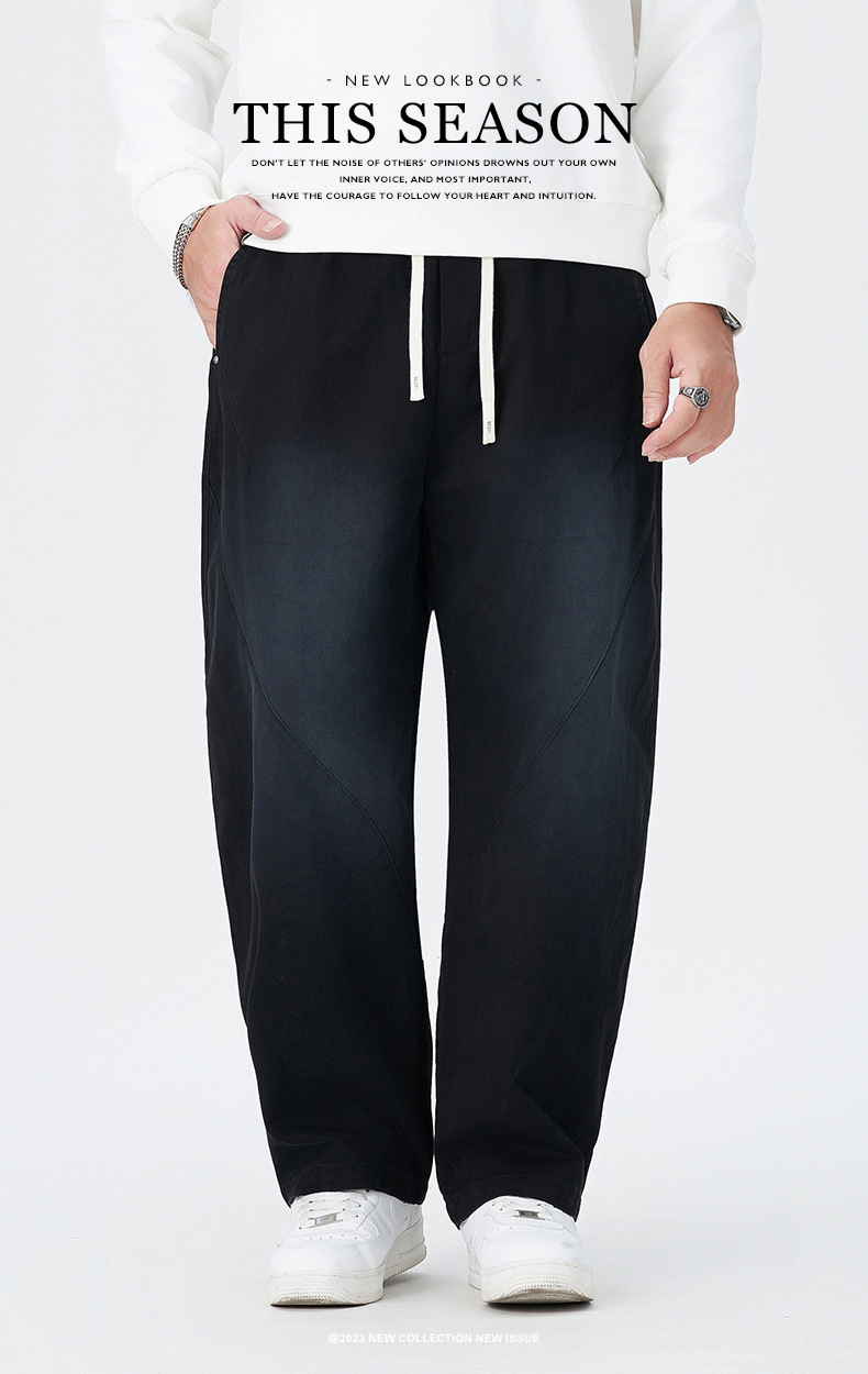 【100%】【DMH】大依优型大码阔腿裤男士休闲裤纯棉卫裤大码美式休闲潮高街渐变宽松男士弯刀裤直筒裤加肥加大300斤