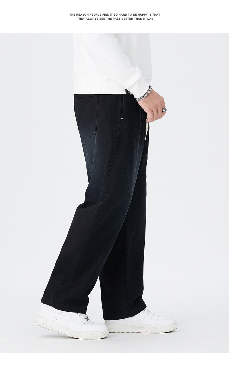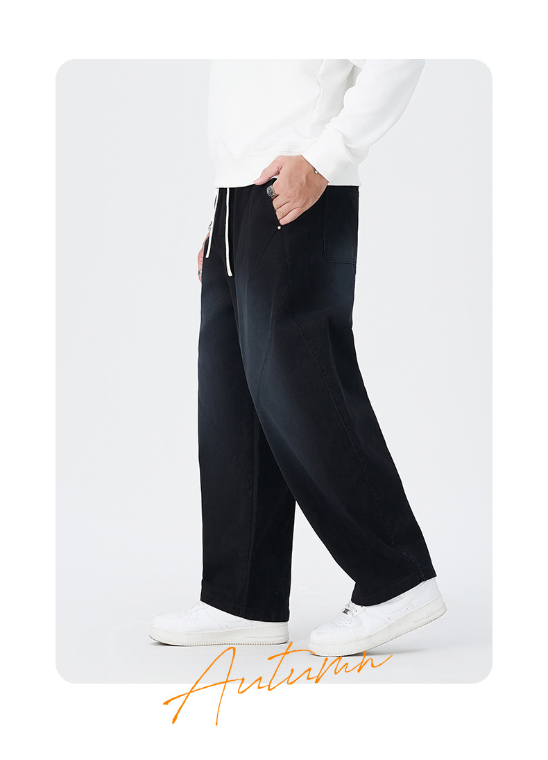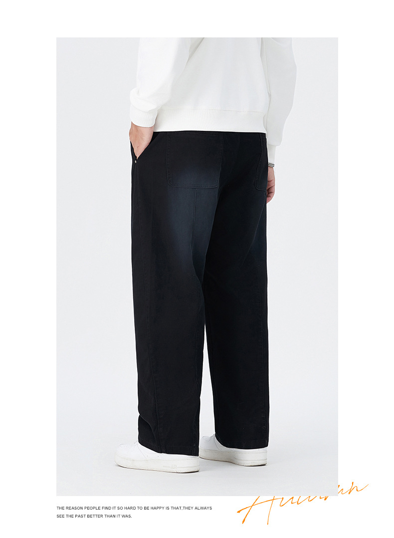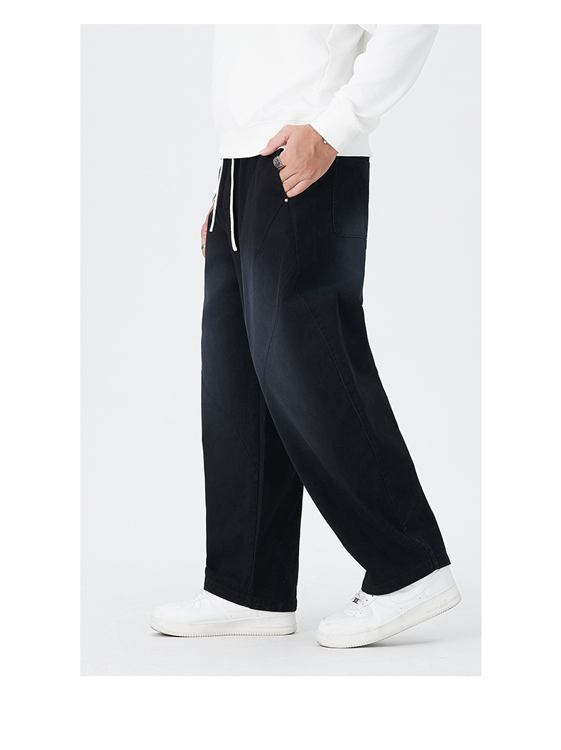 【100%】【DMH】大依优型大码阔腿裤男士休闲裤纯棉卫裤大码美式休闲潮高街渐变宽松男士弯刀裤直筒裤加肥加大300斤