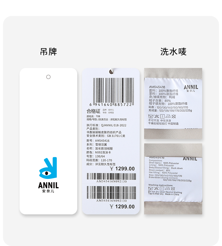 【实体店同款】男女童加长款羽绒服冬季新款安奈儿童装AM545416