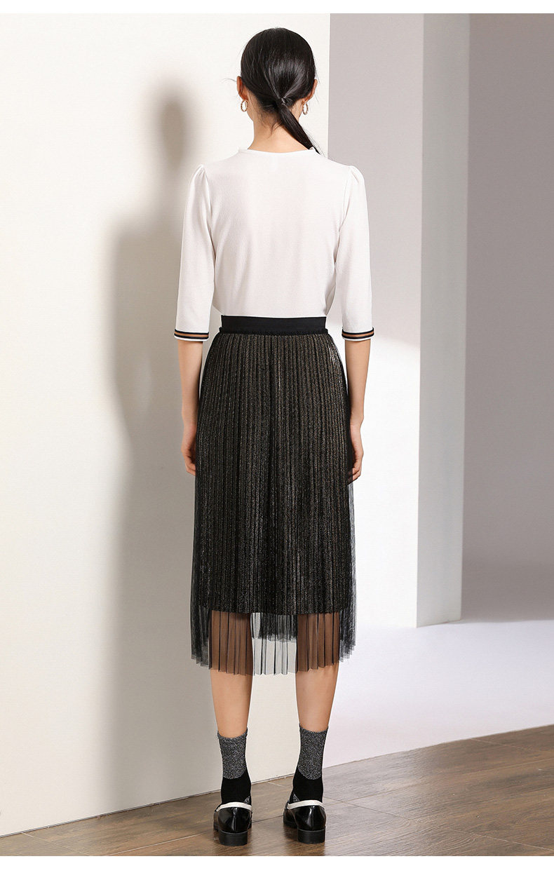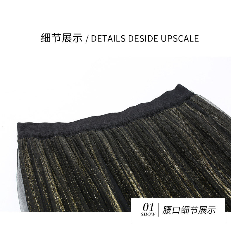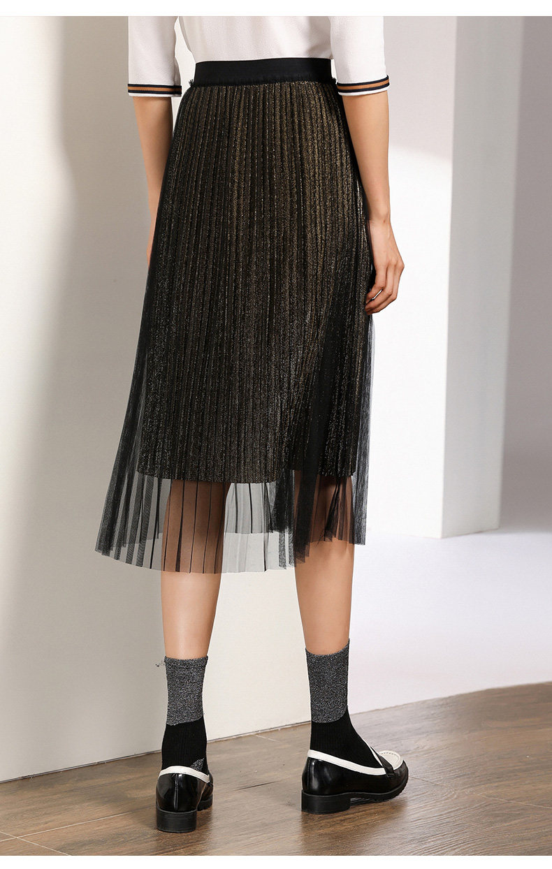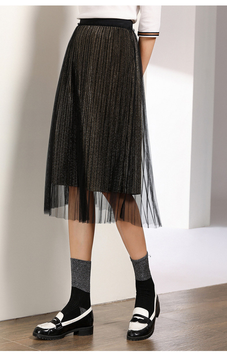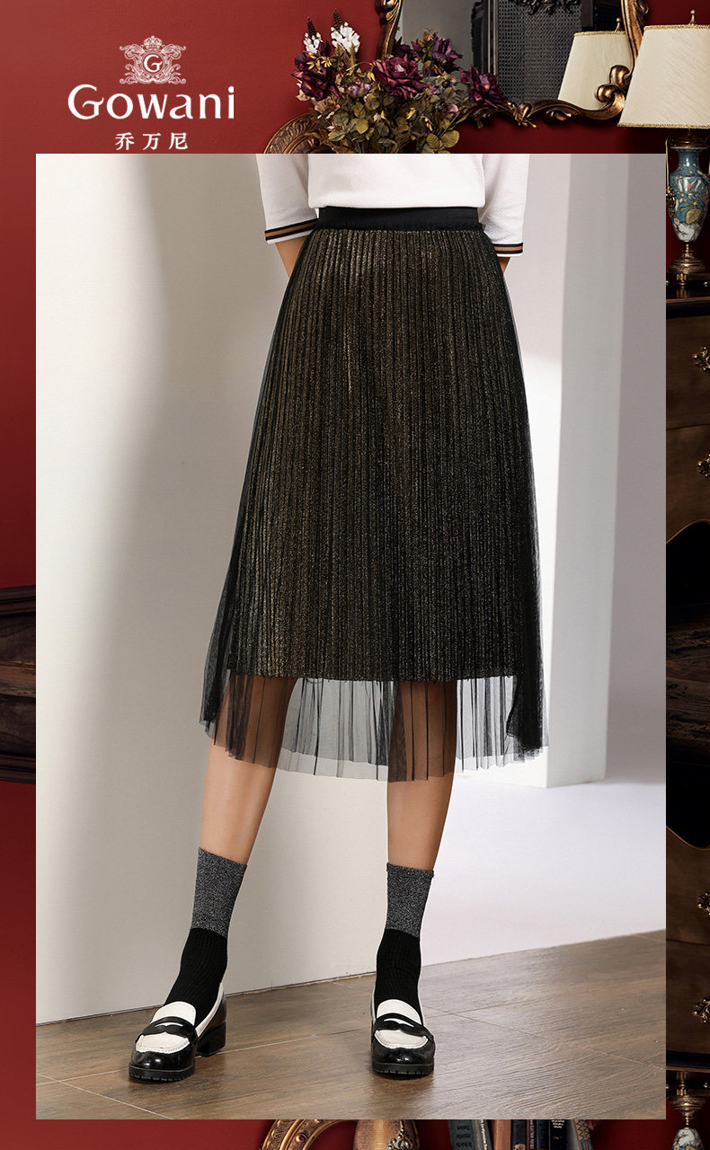 乔万尼百褶半身裙中长款秋季黑色高腰显瘦网纱a字裙EN3D408