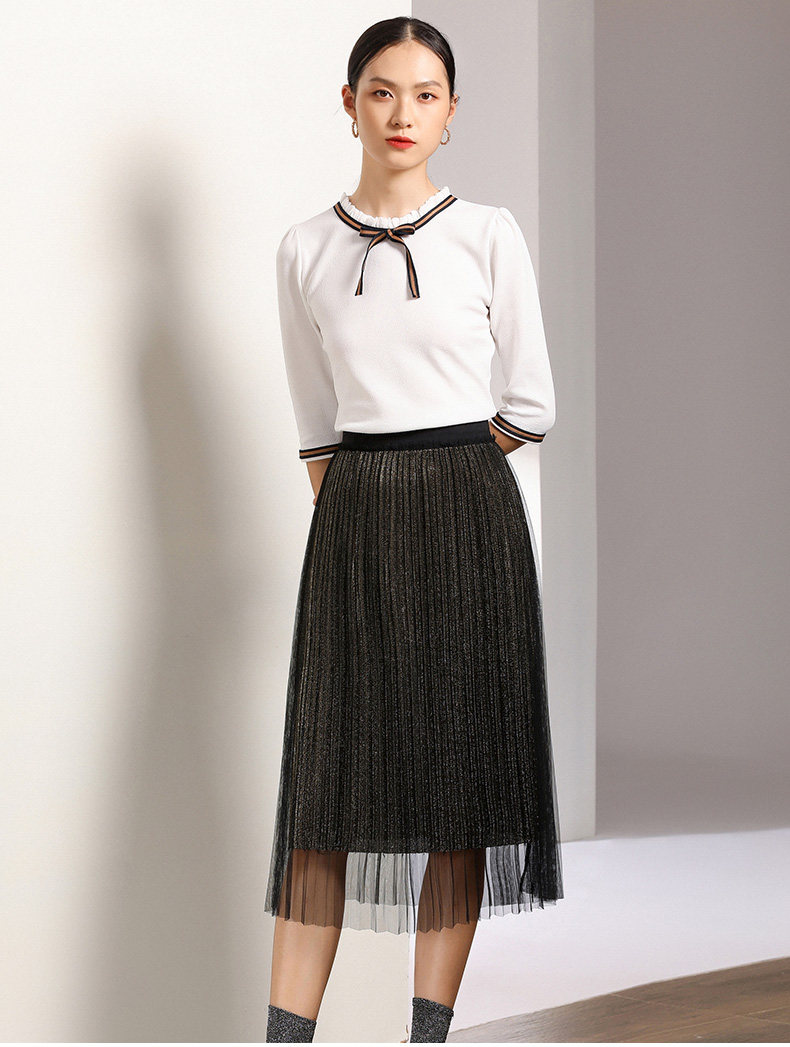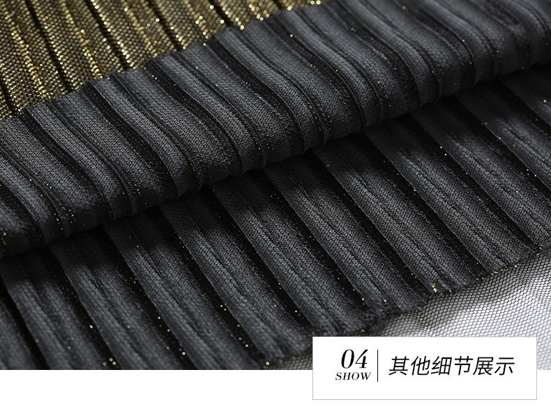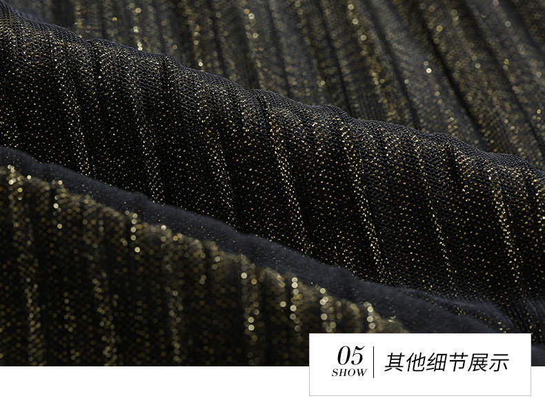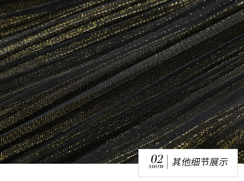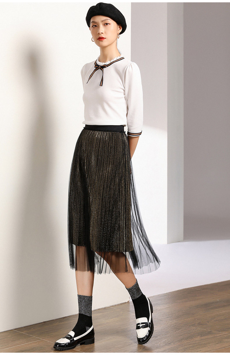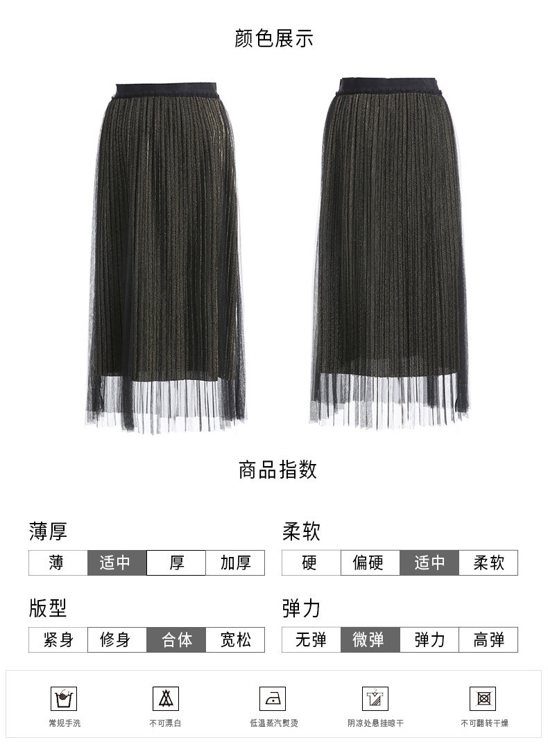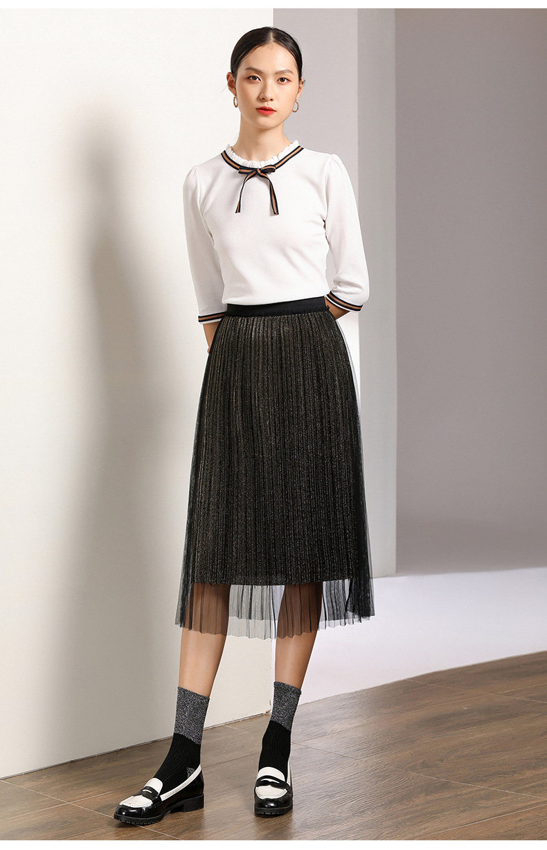 乔万尼百褶半身裙中长款秋季黑色高腰显瘦网纱a字裙EN3D408
