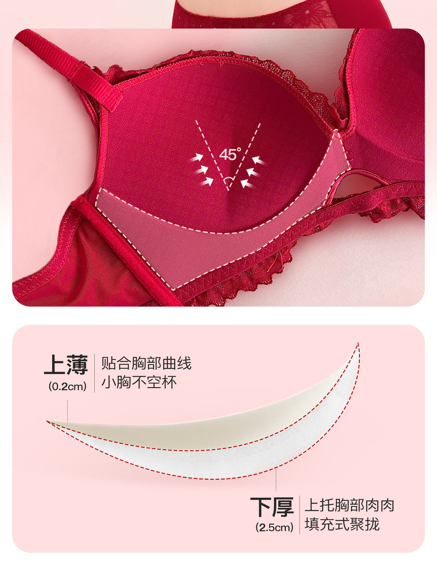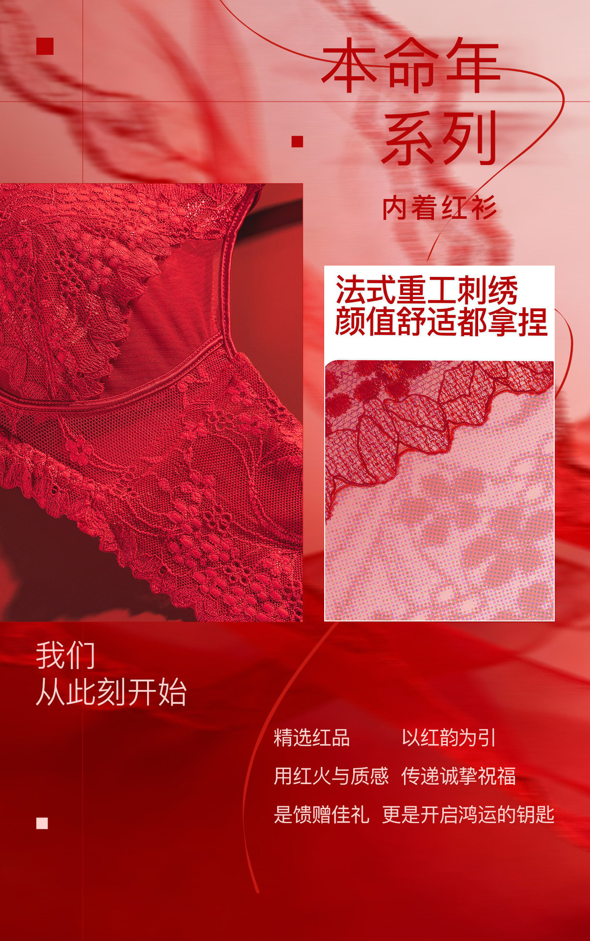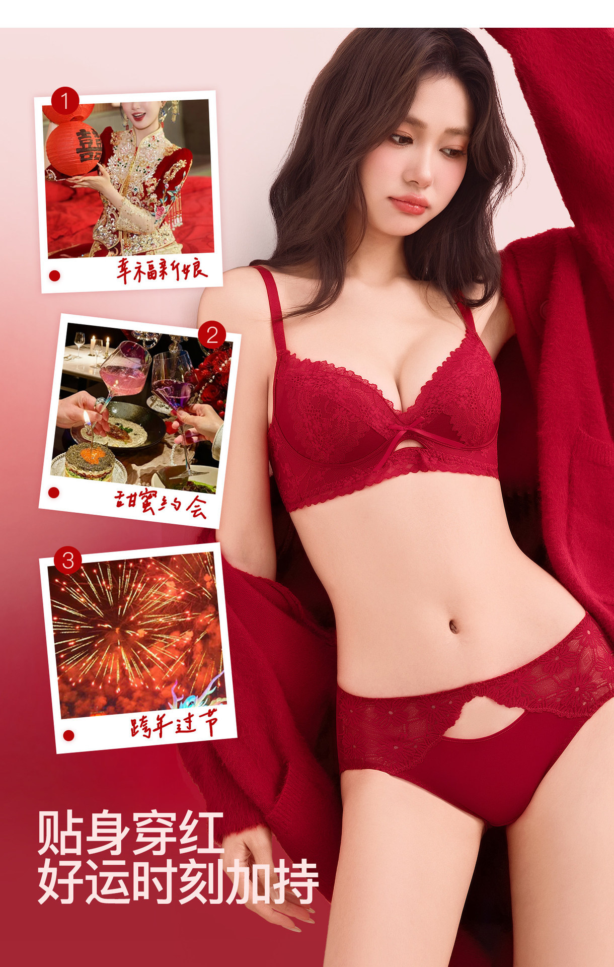 【鸿运系列!好运成套】马年结婚本命年红色内衣三件套 女套装小胸聚拢无钢圈性感蕾丝文胸罩