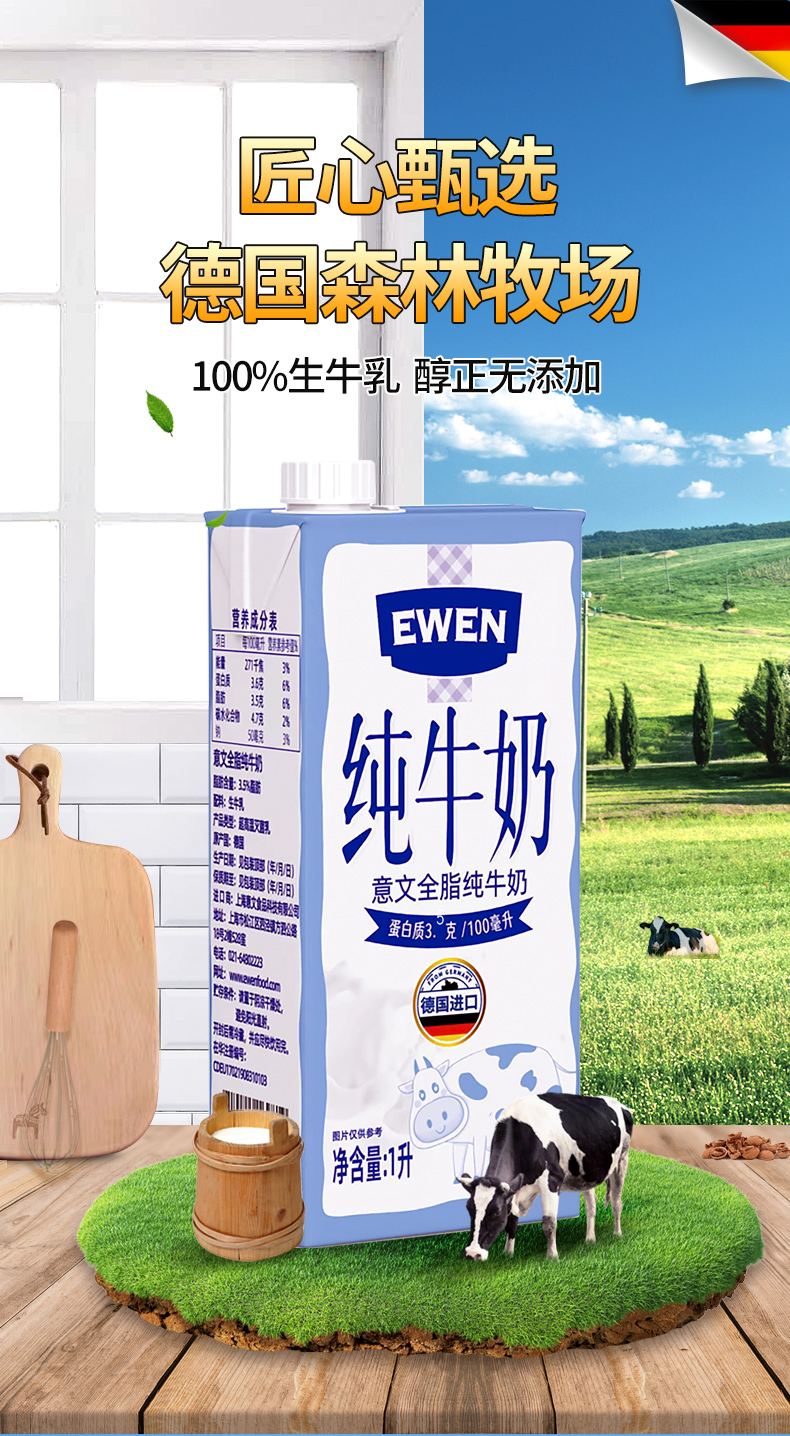 意文 德国进口 全脂纯牛奶 200ml*30盒整箱装