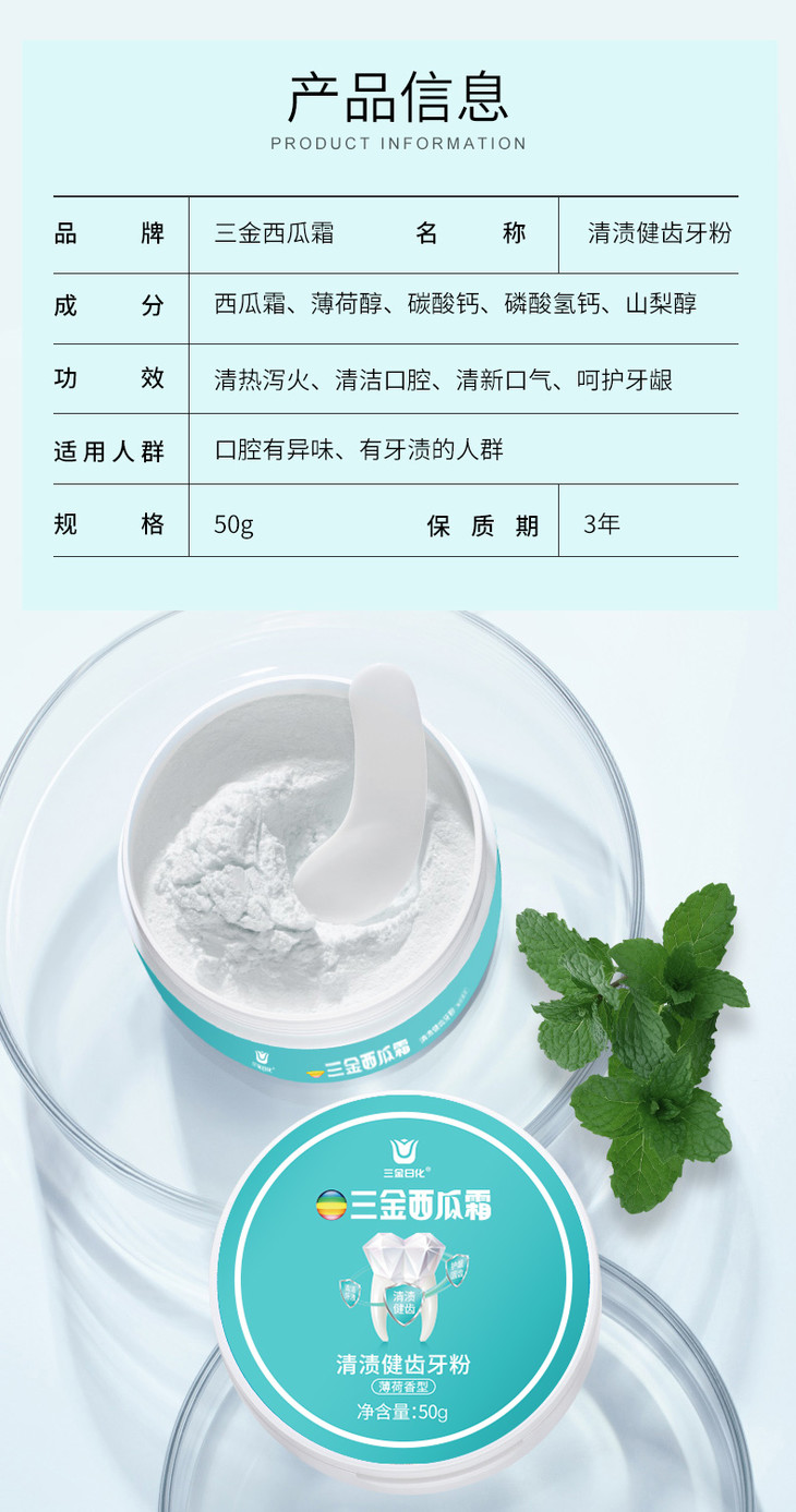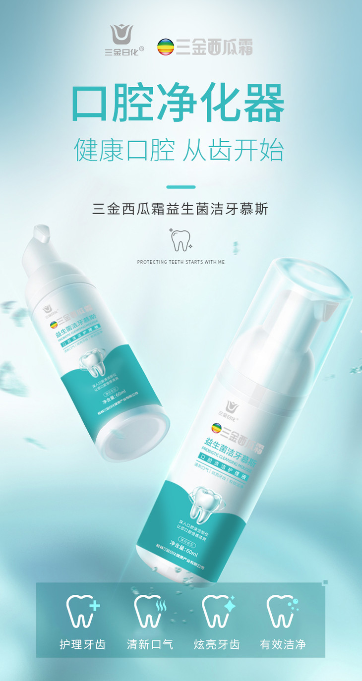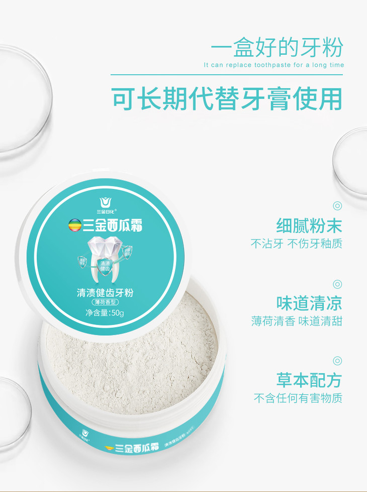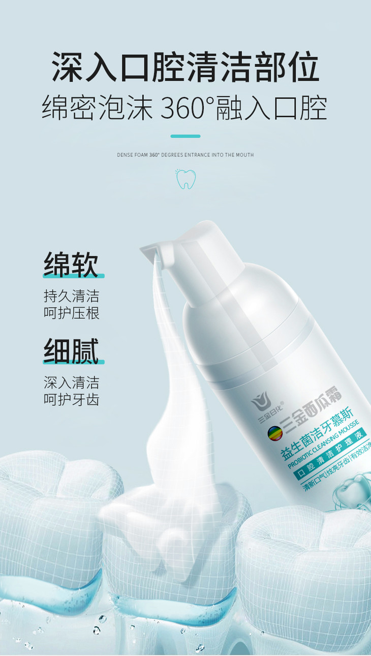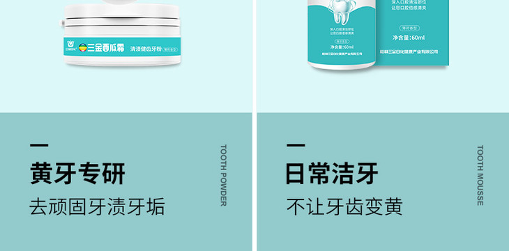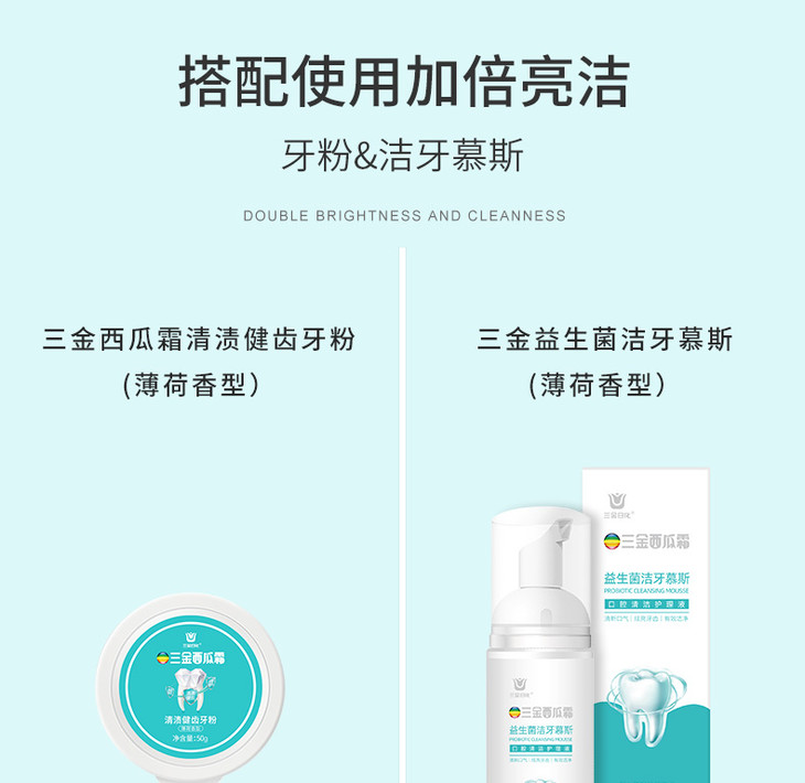 【第2件10元】【三金西瓜霜】清渍健齿牙粉益生菌洁牙慕斯去渍去黄降火清口气