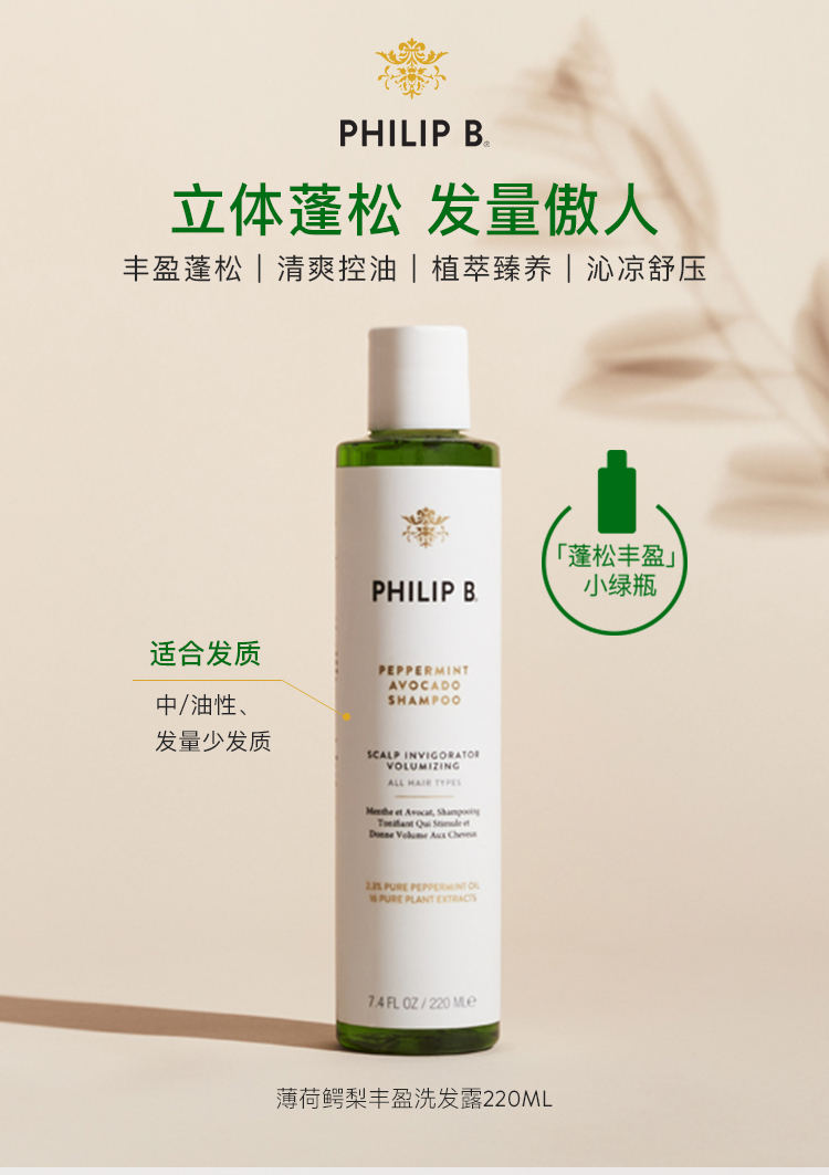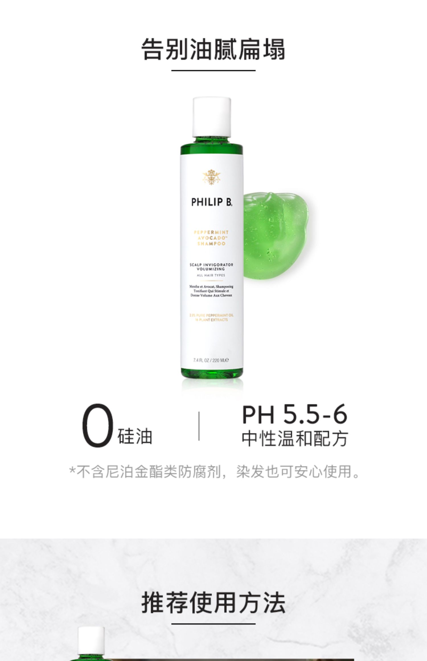 PHILIP B薄荷鳄梨丰盈洗发水 清爽控油蓬松丰盈强韧发根
