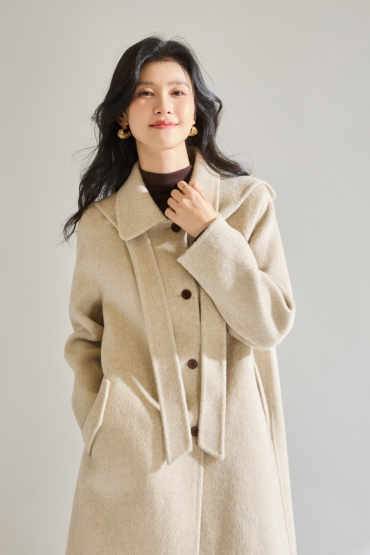 「高货sh」全新升级【铂金会员809/天猫1089/差价280】(00521)洛诗琳可脱卸连帽双面呢大衣2025秋冬中长款两穿羊毛外套