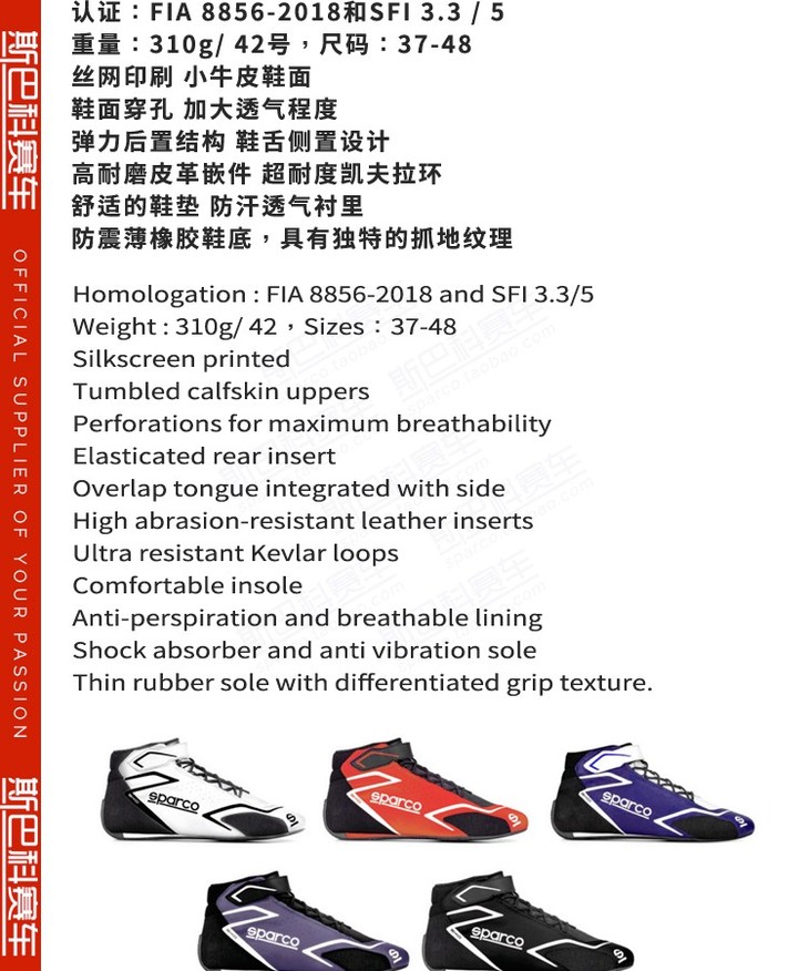 Sparco赛车鞋 FIA认证 防火 真皮 SKID