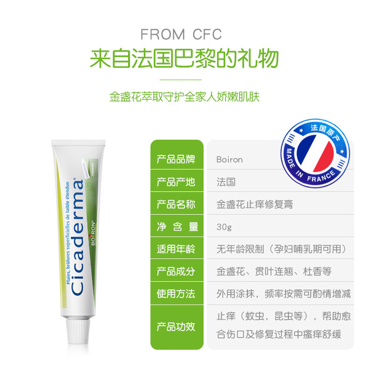 法国Boiron布瓦宏Cicaderma金盏花宝宝蚊虫叮咬修复止痒膏30g
