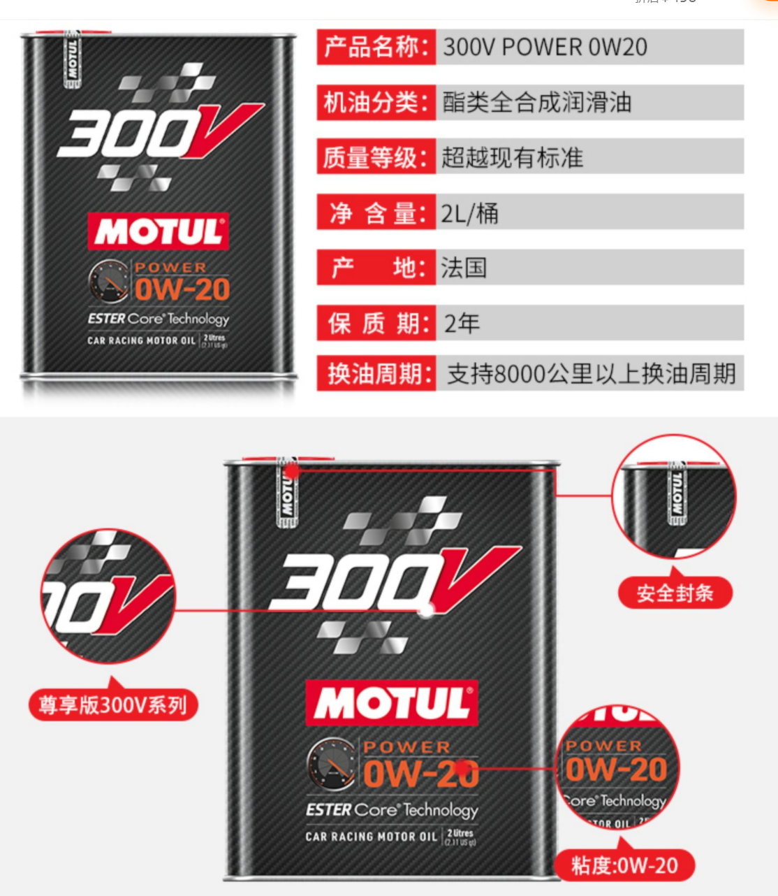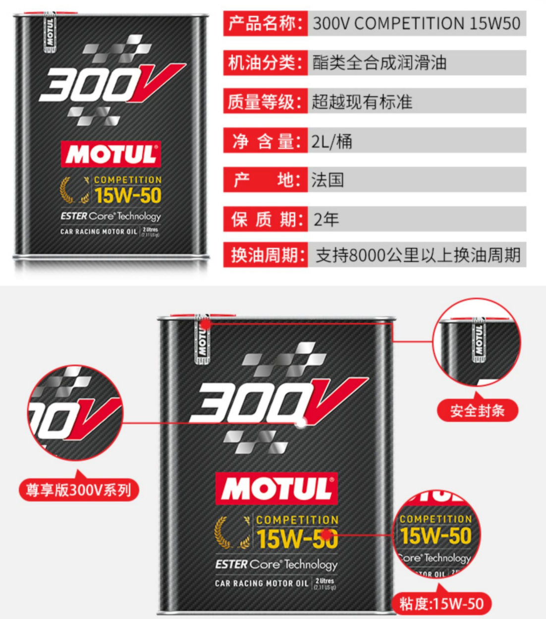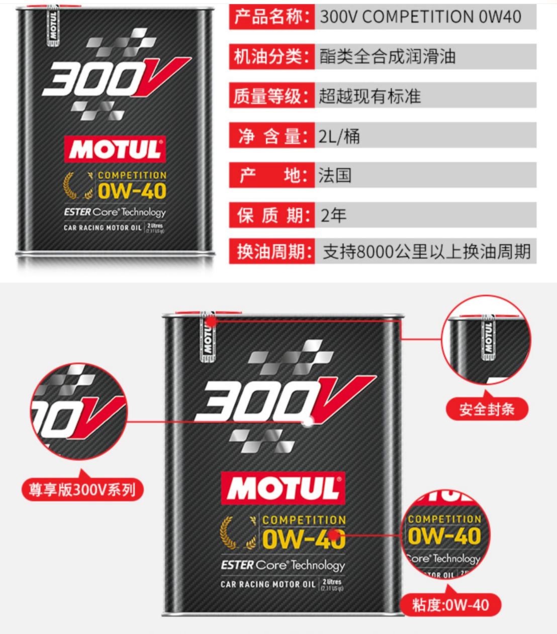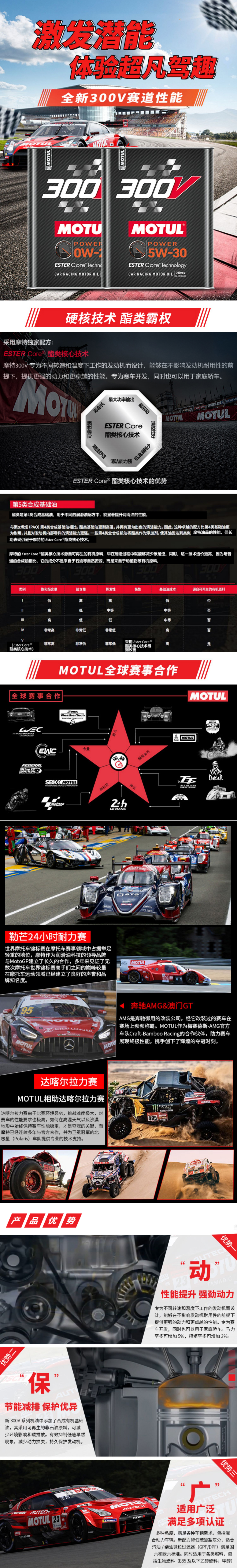 Motul/摩特 300V RSTER Core 脂类 全合成 润滑油 赛用机油 法国进口 正品行货