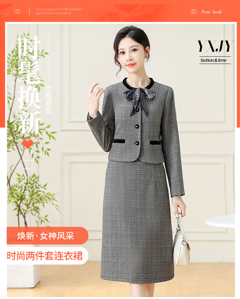 「自」全新升级【铂金会员330/天猫439/差价109】(99943)洛诗琳法式小香风连衣裙两件套2025秋季新款优雅通勤长裙女