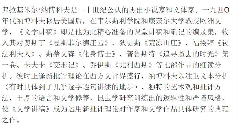 文学讲稿(纳博科夫精选集V)