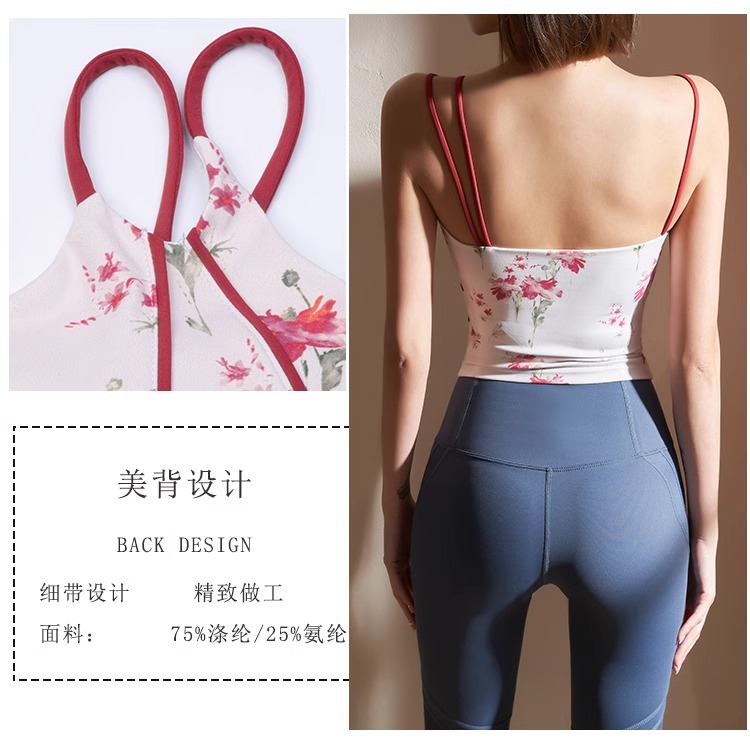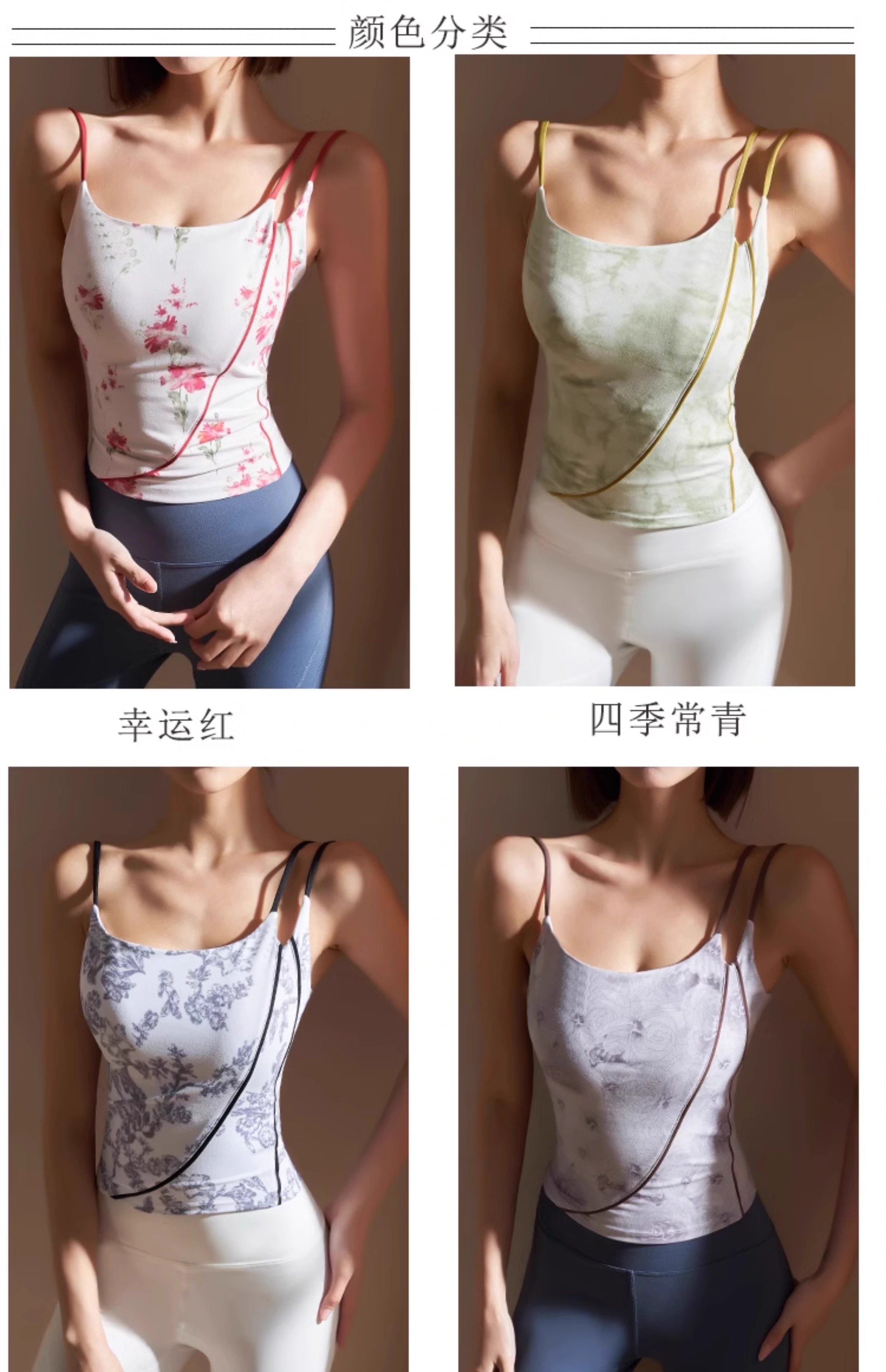 跃牌【洛水之神系列】气质美背运动背心跑步印花瑜伽背心细带性感健身瑜伽服SY742