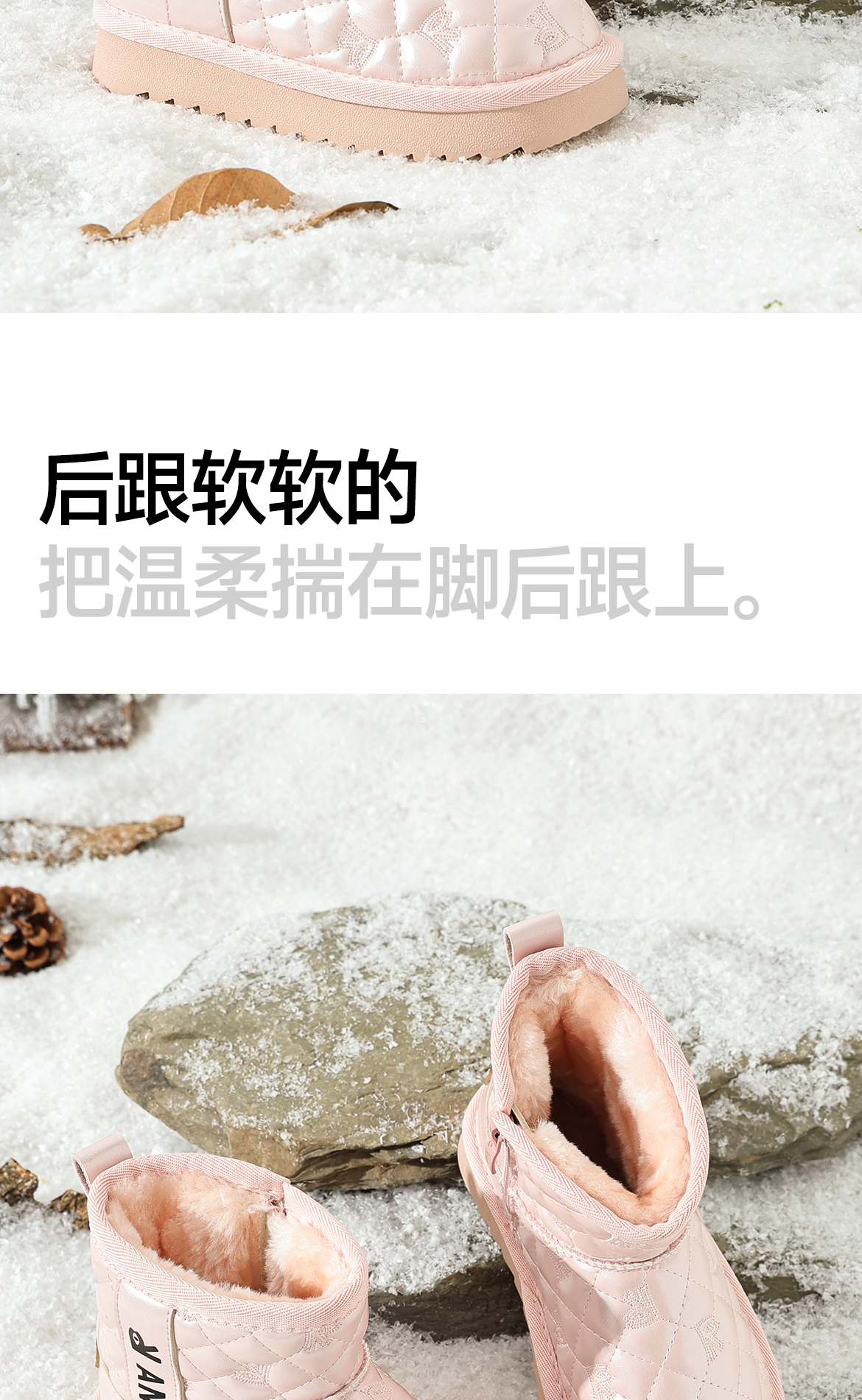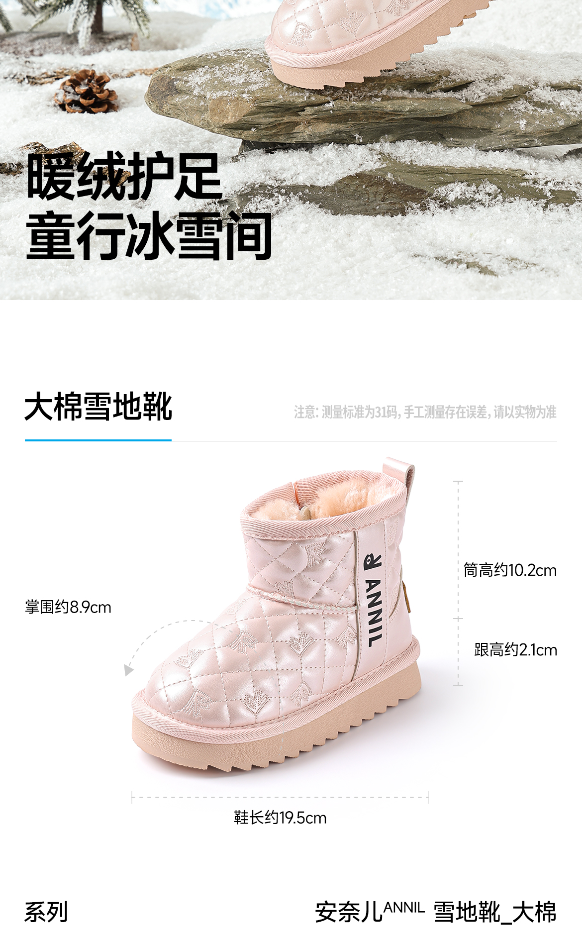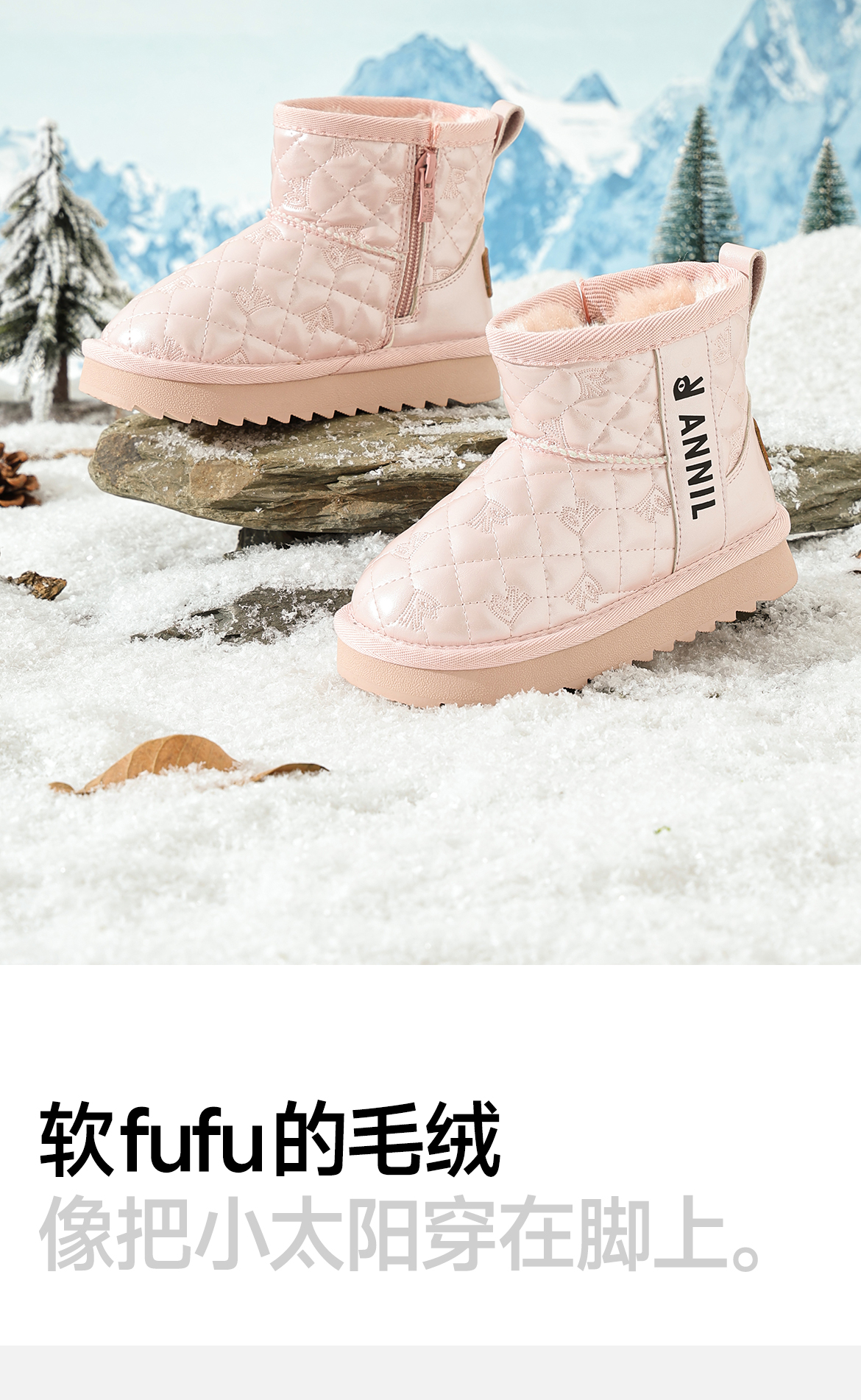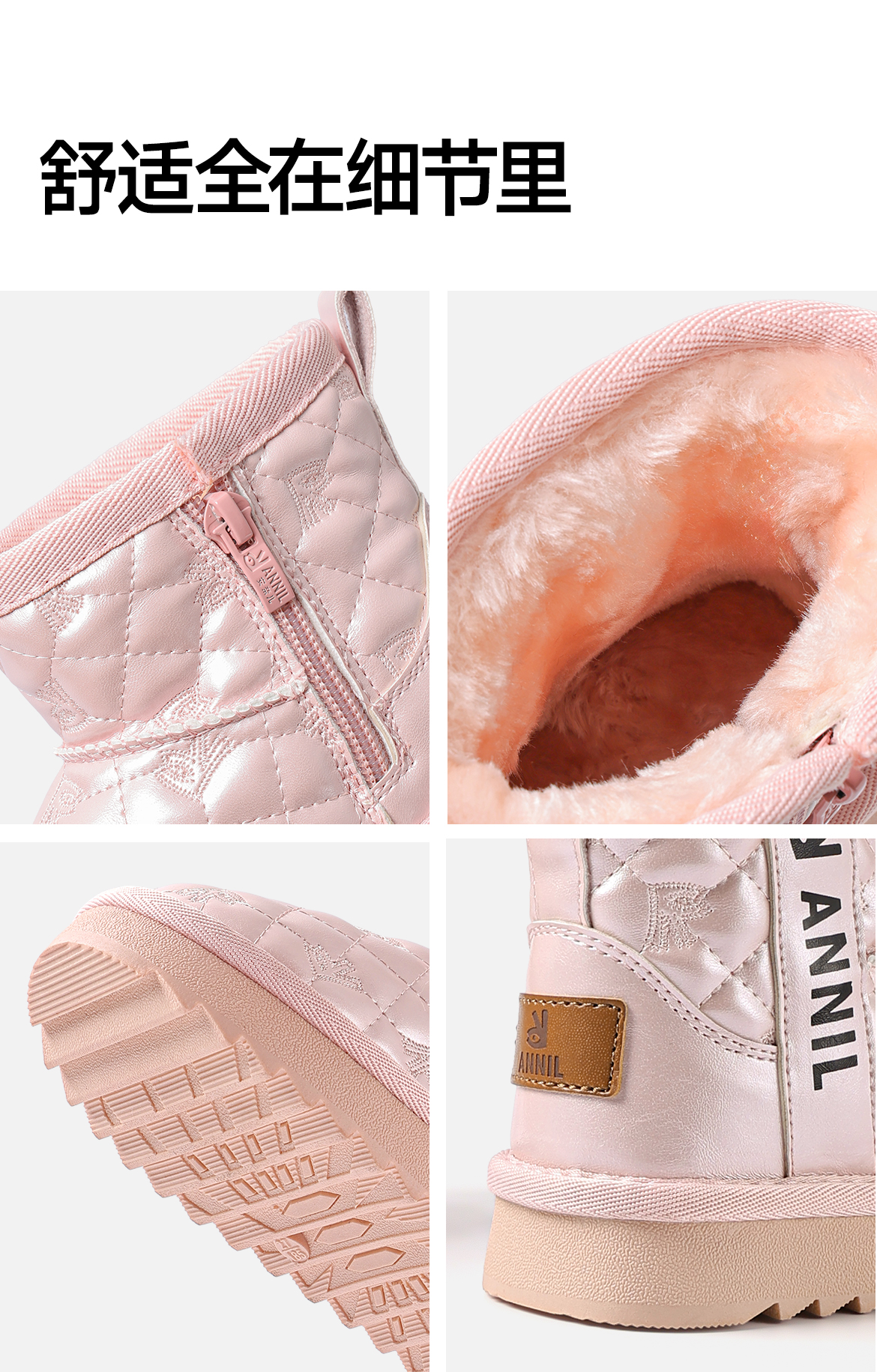 ANNIL/安奈儿童鞋女童冬季套筒休闲厚底雪地靴拉链加绒加厚防水棉鞋HG5411693