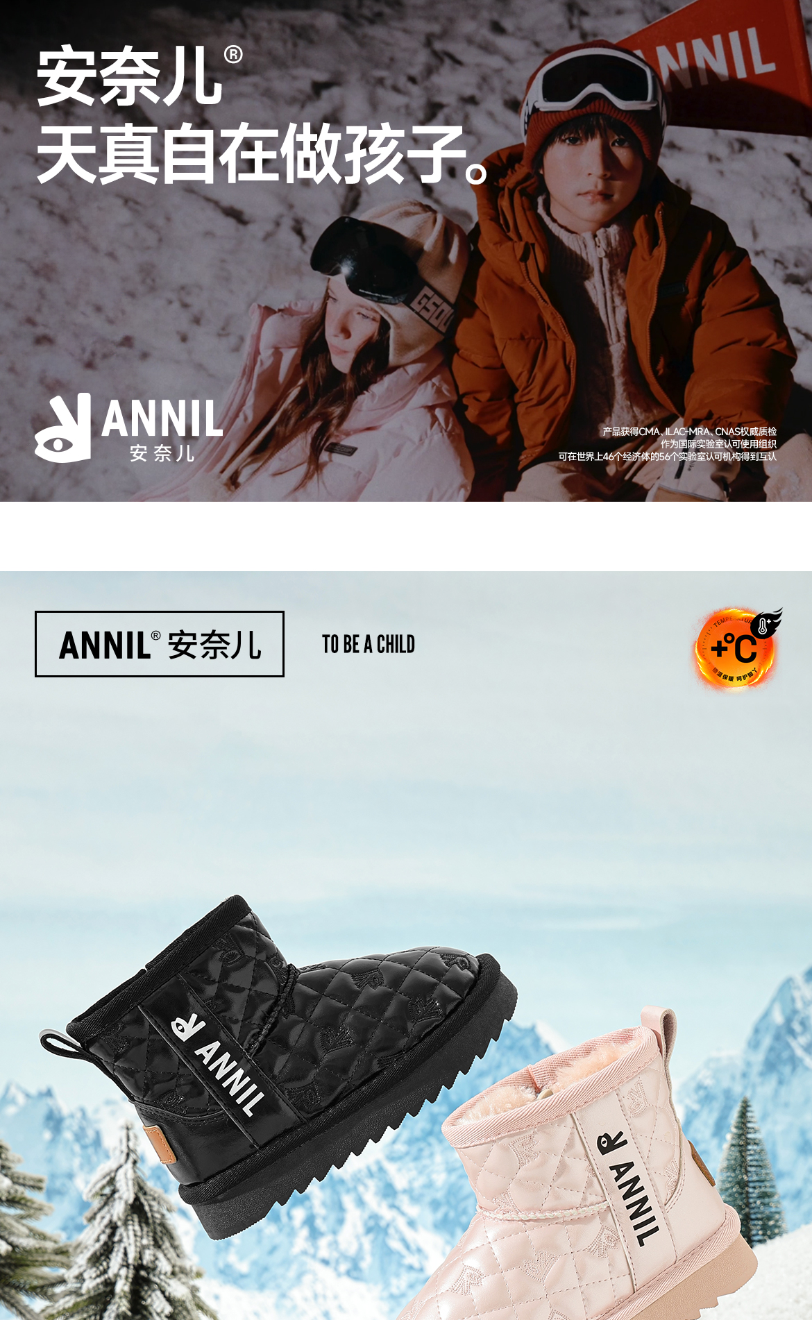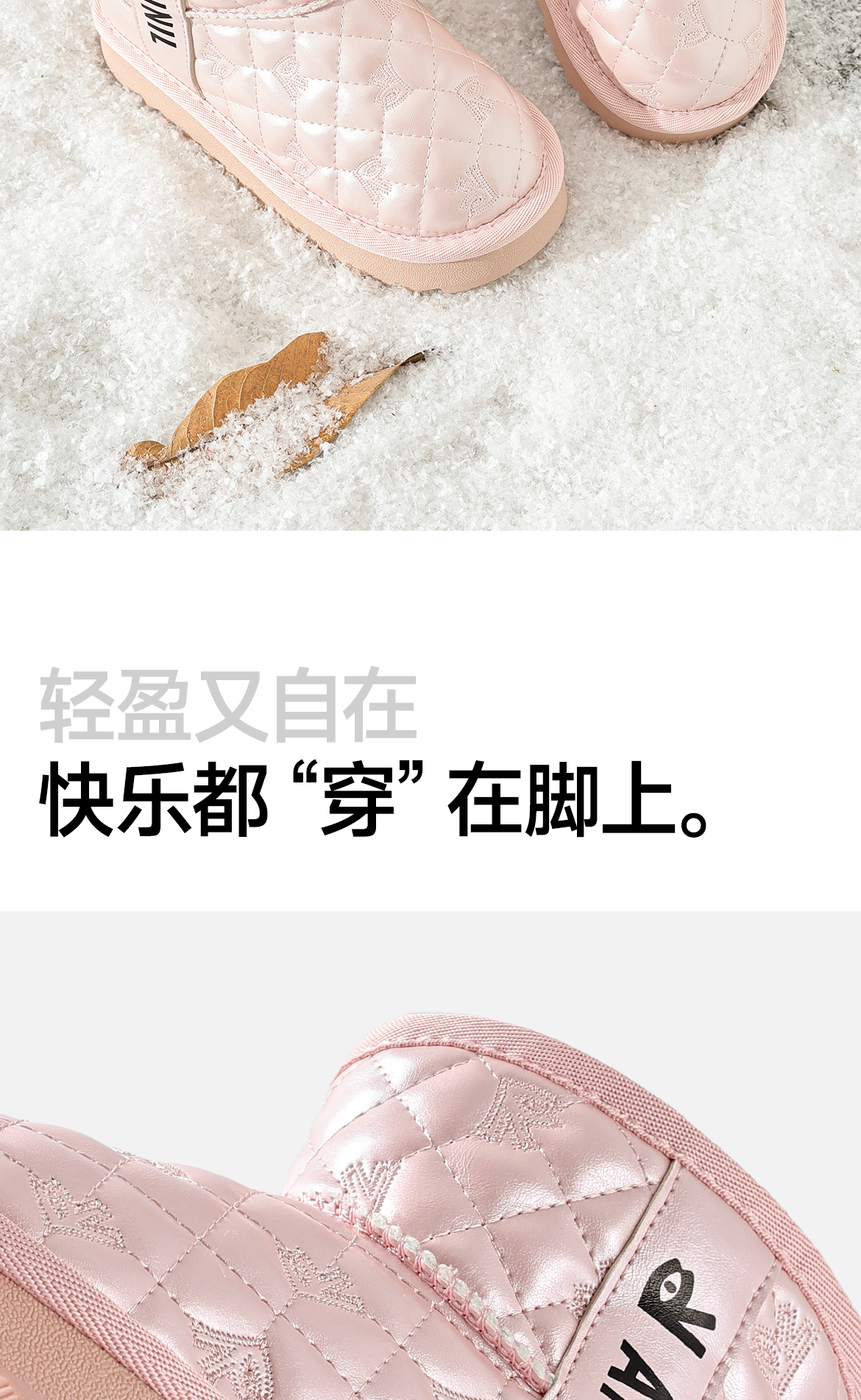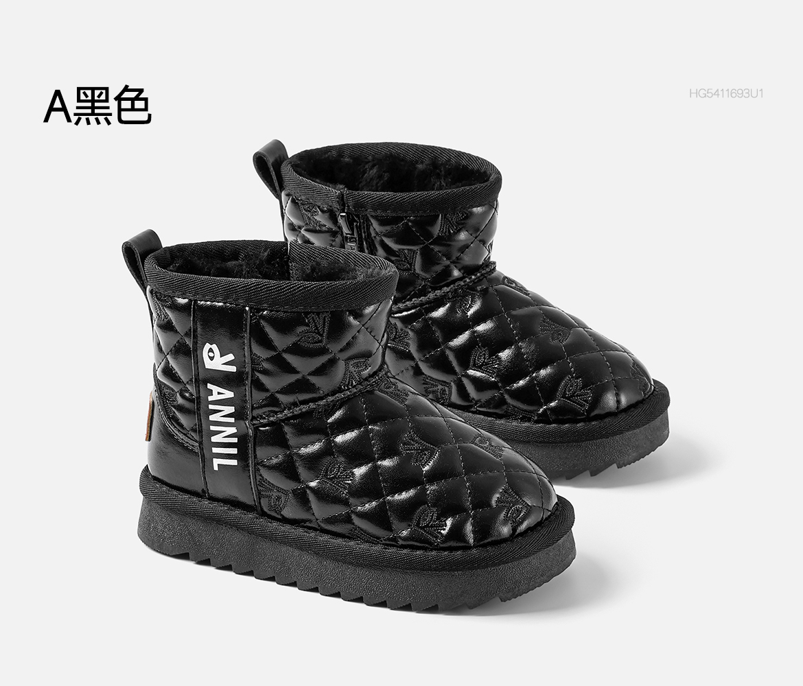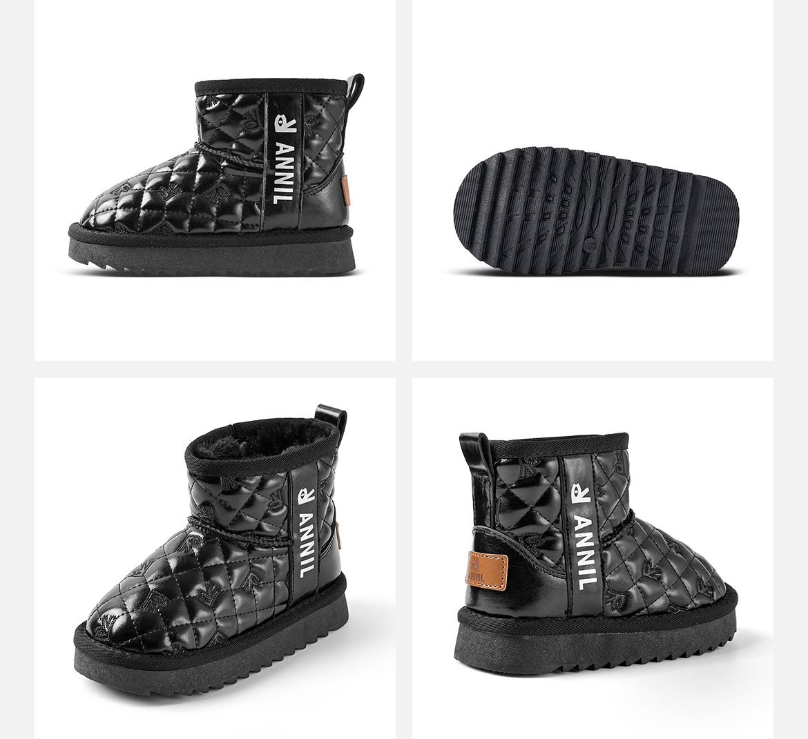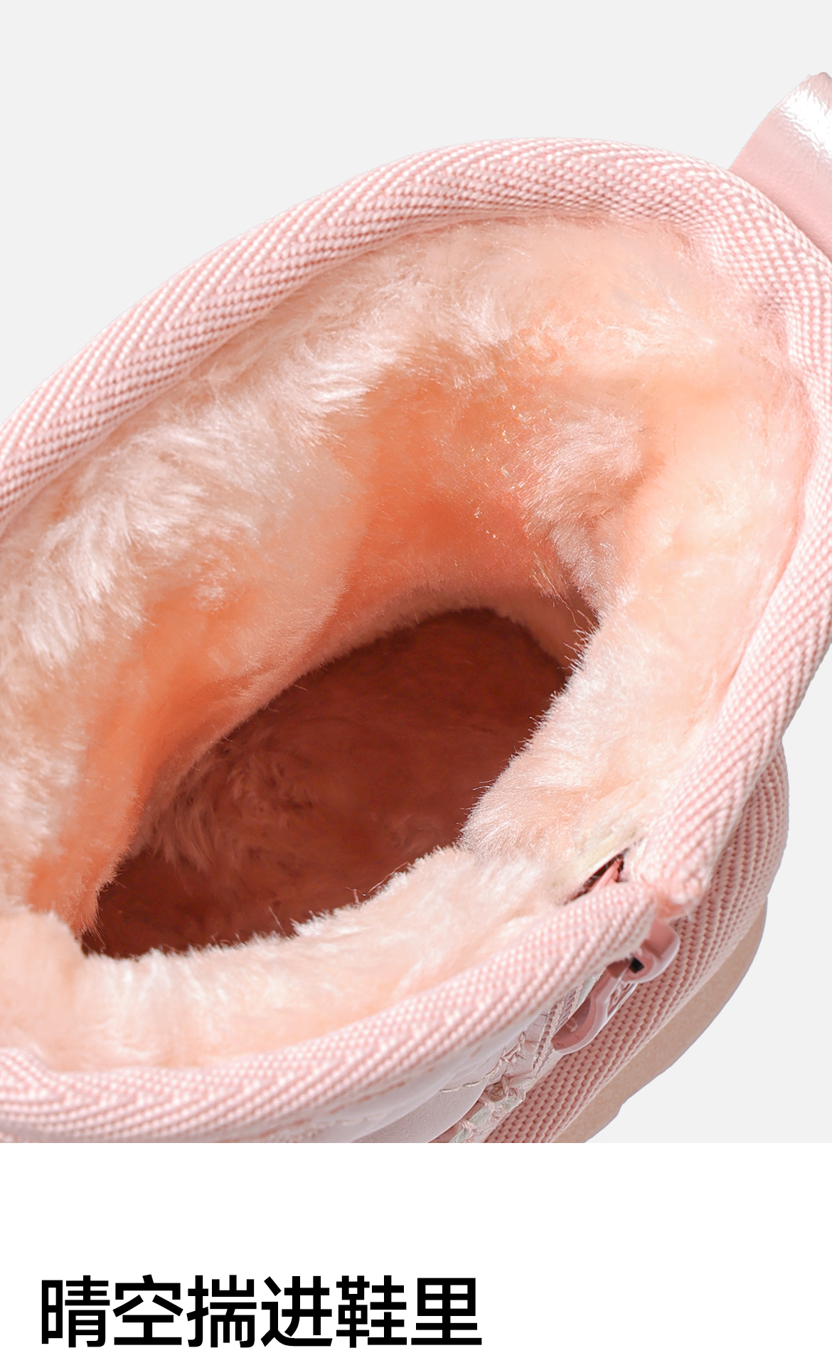 ANNIL/安奈儿童鞋女童冬季套筒休闲厚底雪地靴拉链加绒加厚防水棉鞋HG5411693