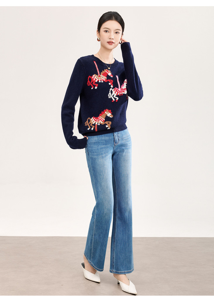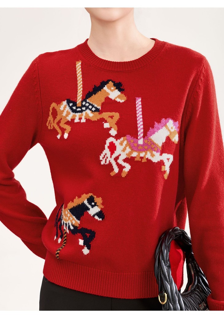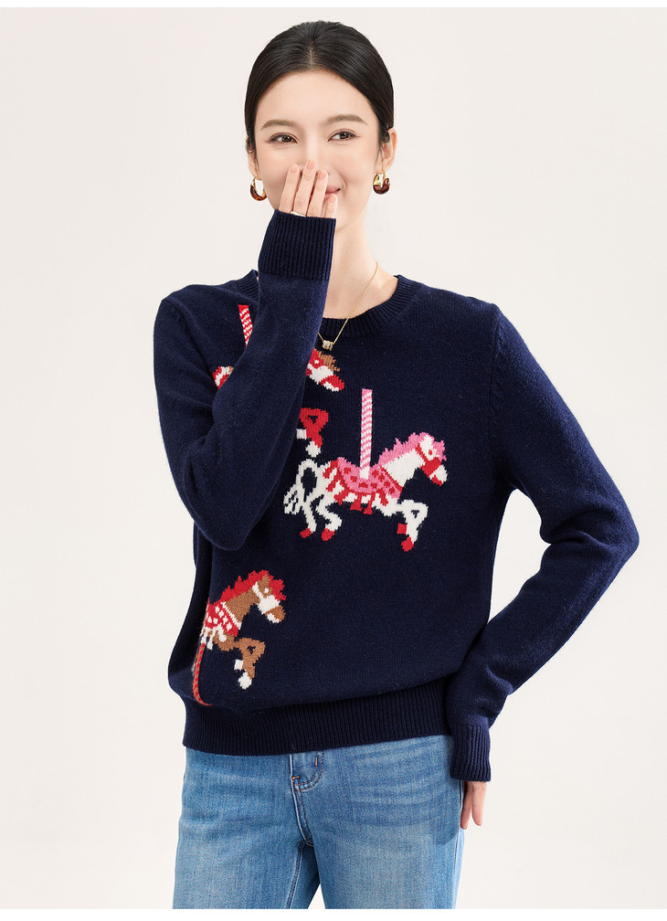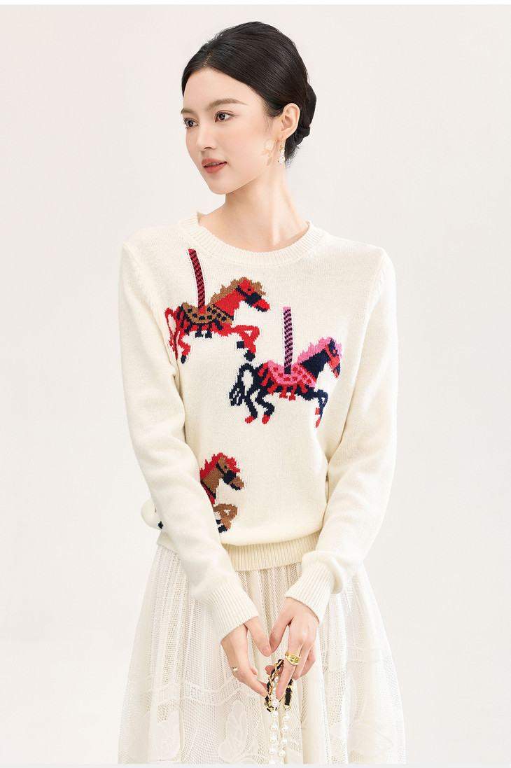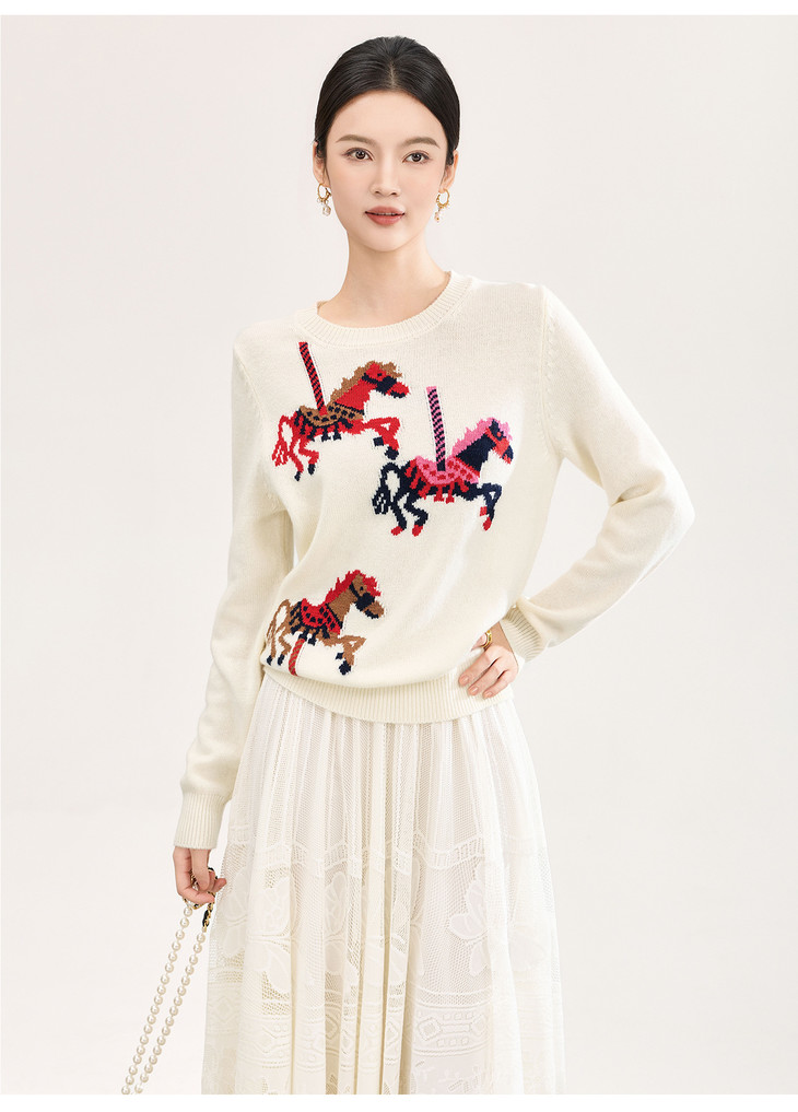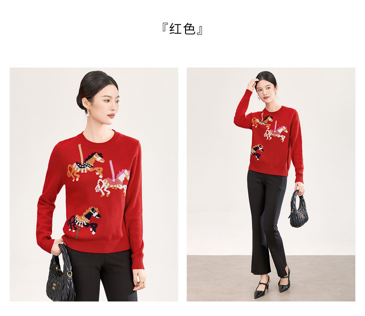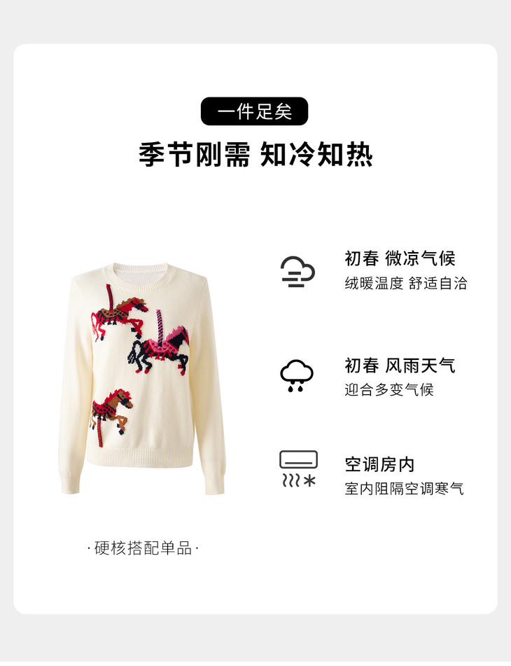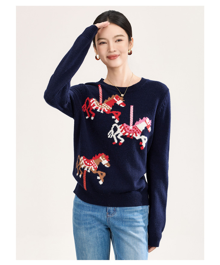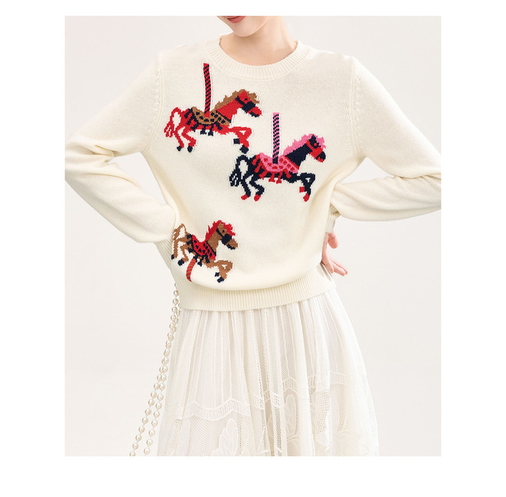 12针密织旋转小马钩花纯羊毛针织毛衣WLZD2601108 商品图0