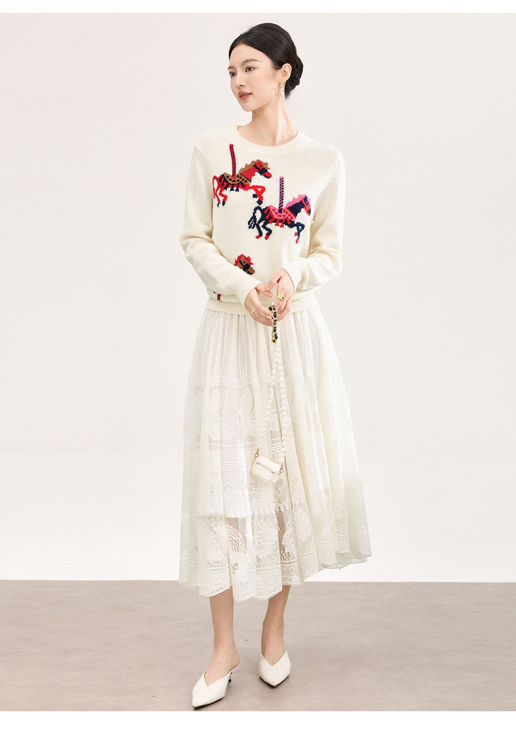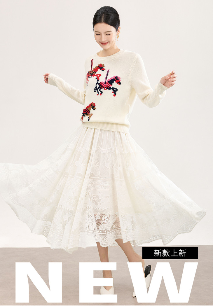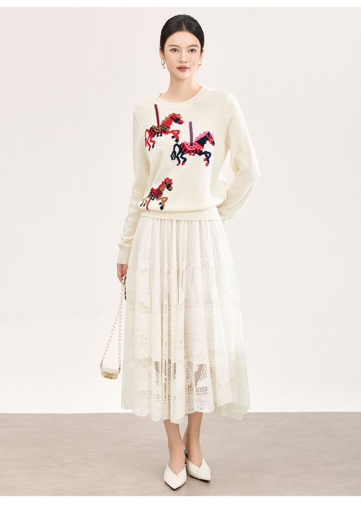 12针密织旋转小马钩花纯羊毛针织毛衣WLZD2601108 商品图1