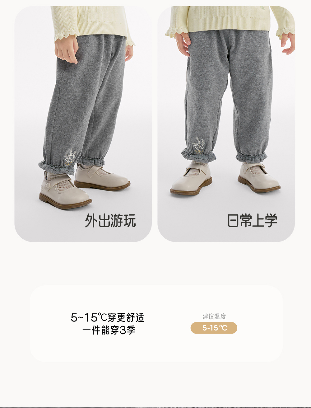 【商场同款】英氏女童宝宝休闲运动裤春秋装新款小童束脚刺绣长裤