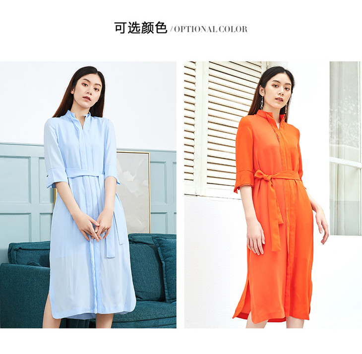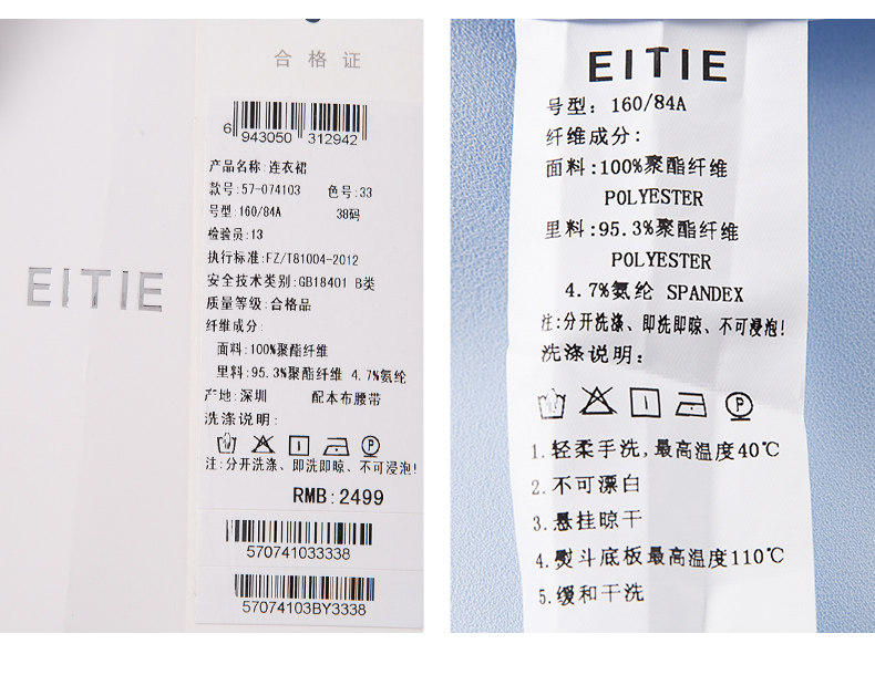 EITIE爱特爱女装夏季新款蝴蝶结系带开衩时尚轻盈连衣裙57074103