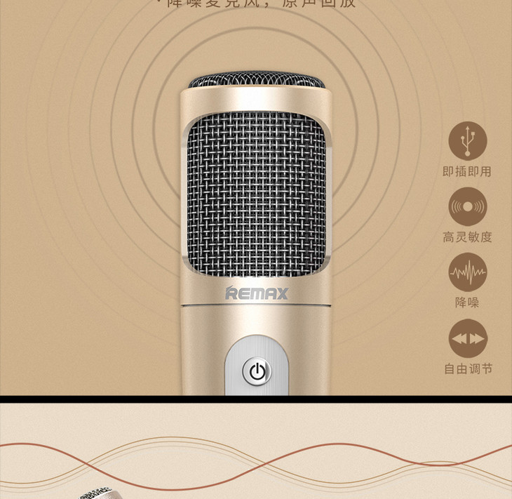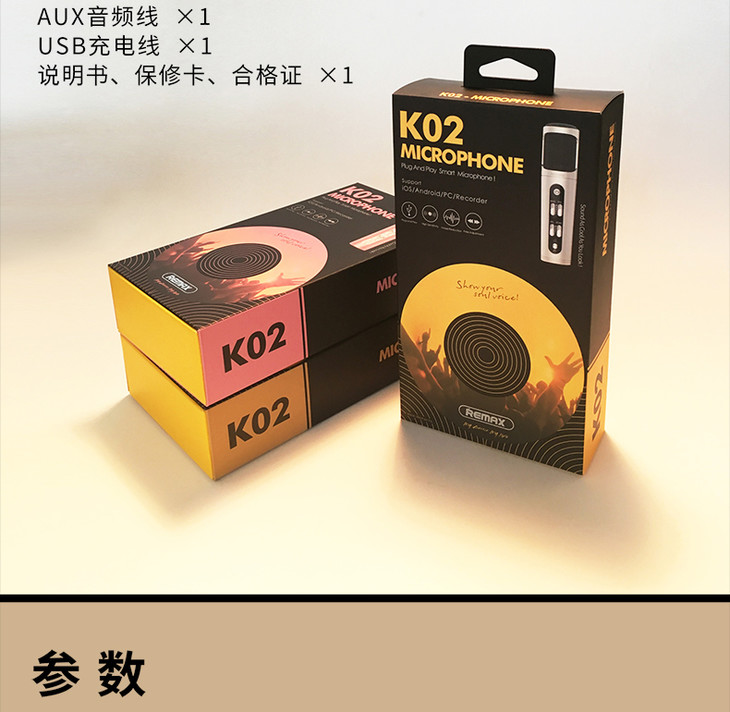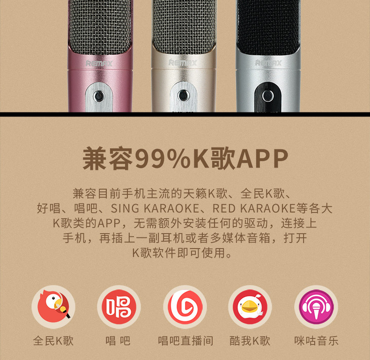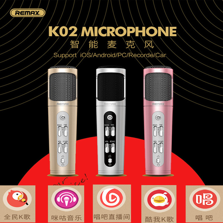 Remax/睿量 K02唱吧麦克风 全民k歌苹果安卓手机唱歌直播全名话筒