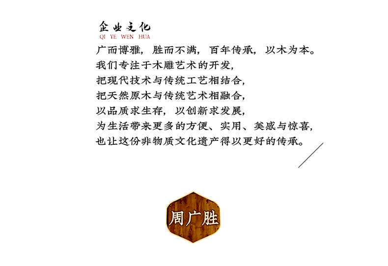 广胜木雕研究所,是周广胜品牌旗下子公司,落座于孔孟之乡山东济宁。该研究所传承于近百年历史的周氏木匠世家,由周广胜创立,专注于梳理用品及木雕工艺品的研究创作,是一家具有传统文化特色的小木制品生产研发企业
