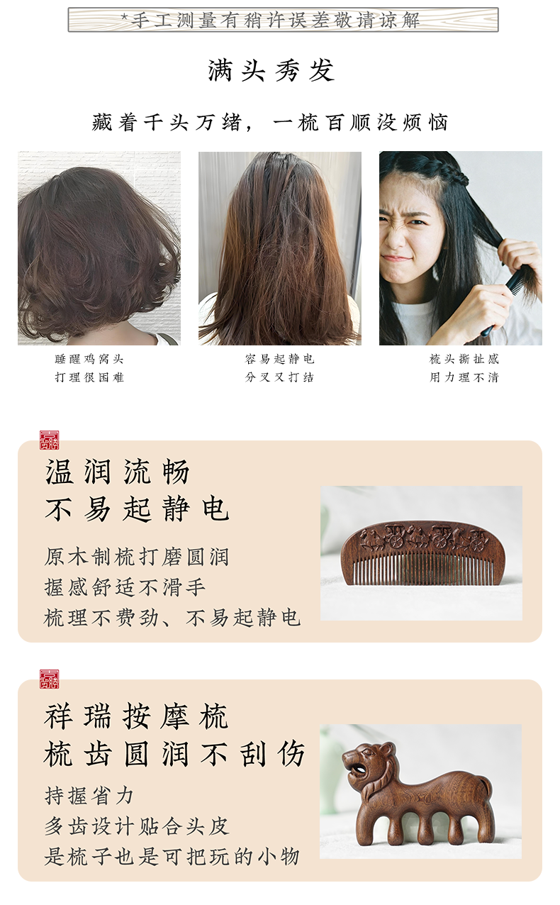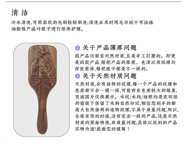 周广胜榫卯工艺合木梳个人清洁护理顺发护发女士专用头皮按摩梳