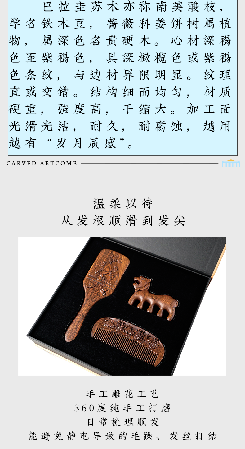 周广胜天然南美酸枝镶嵌彩绘气垫梳刮痧板发簪烟雨棠礼盒