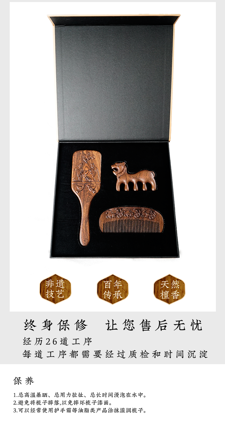 周广胜礼盒气垫护发梳淘淘天然绿檀气垫按摩梳头皮按摩礼品